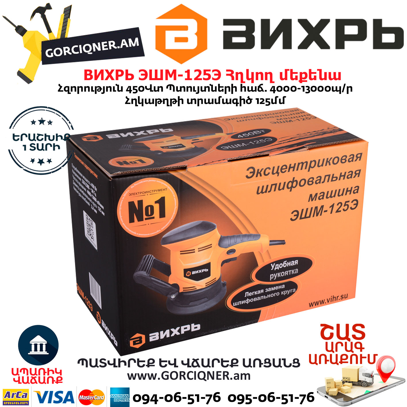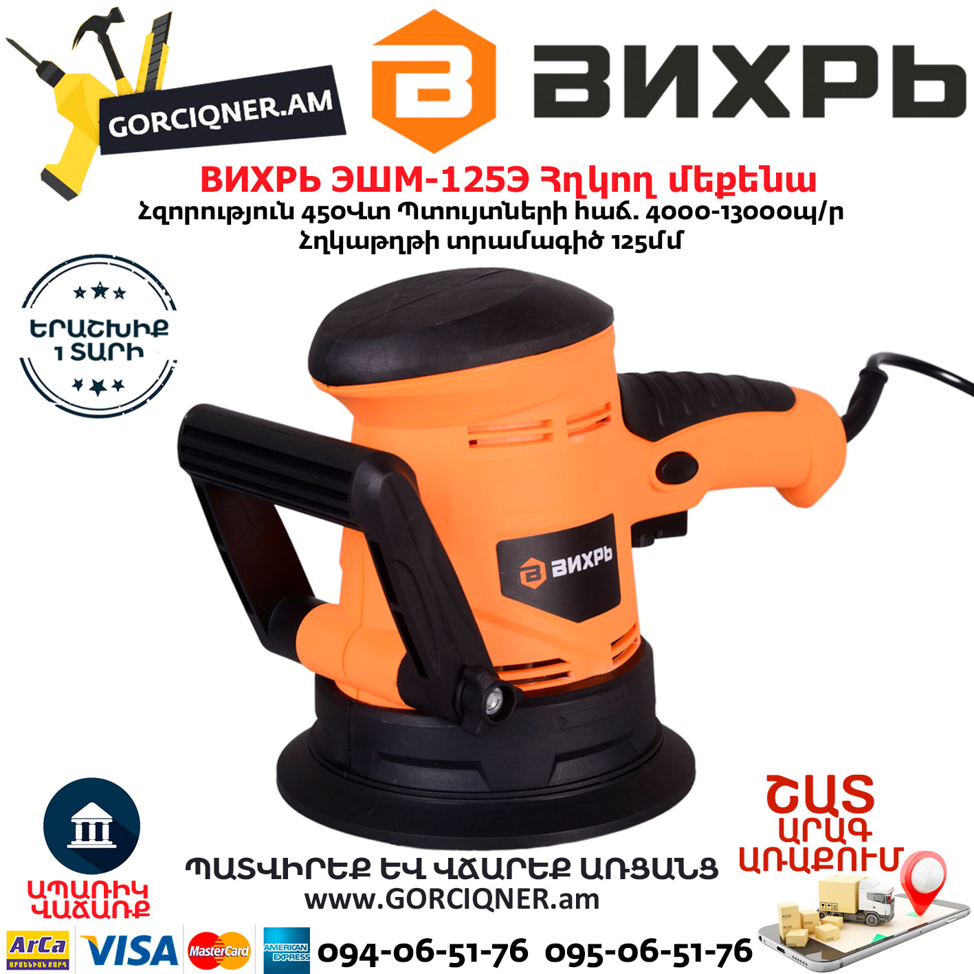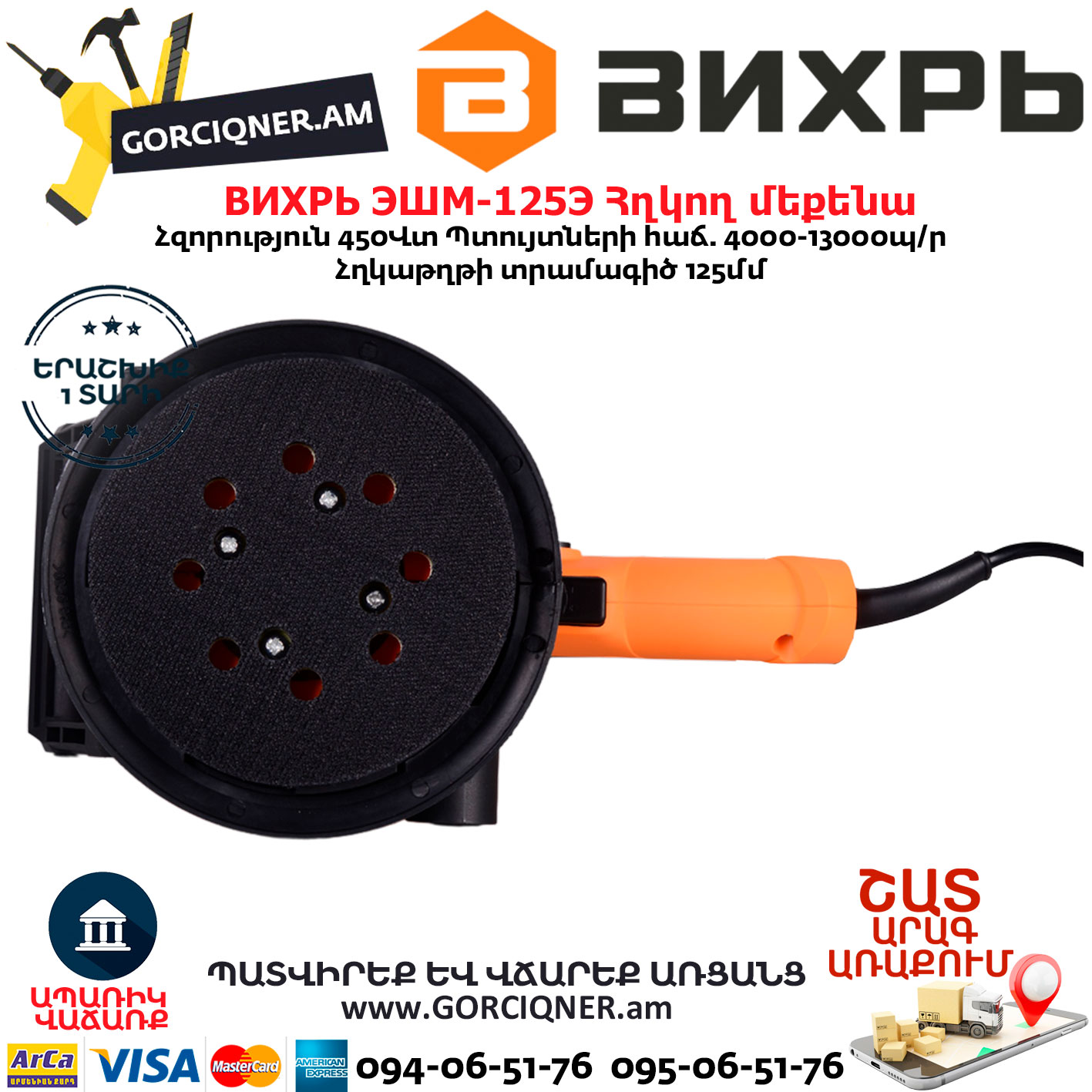 ВИХРЬ ЭШМ-125Э Эксцентриковая шлифовальная машина 125мм/450Вт