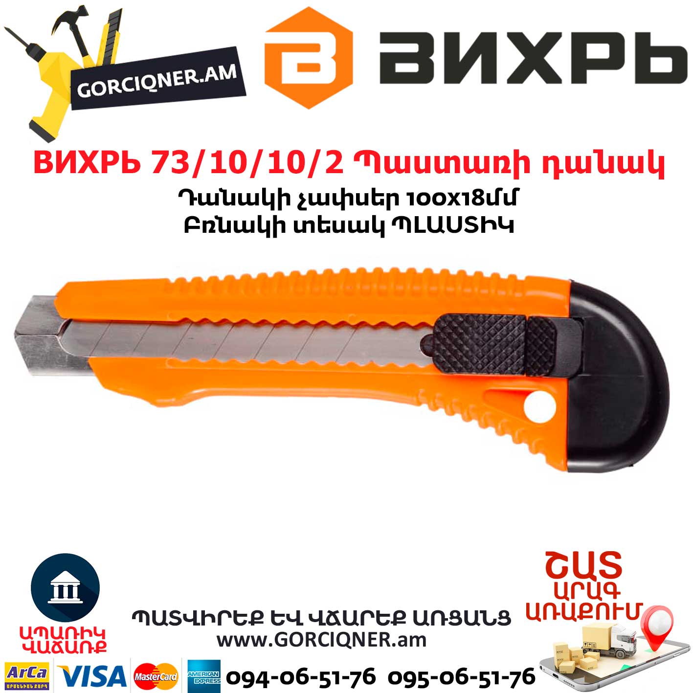 ВИХРЬ 73/10/10/2 Нож с выдвижным лезвием 100×18мм