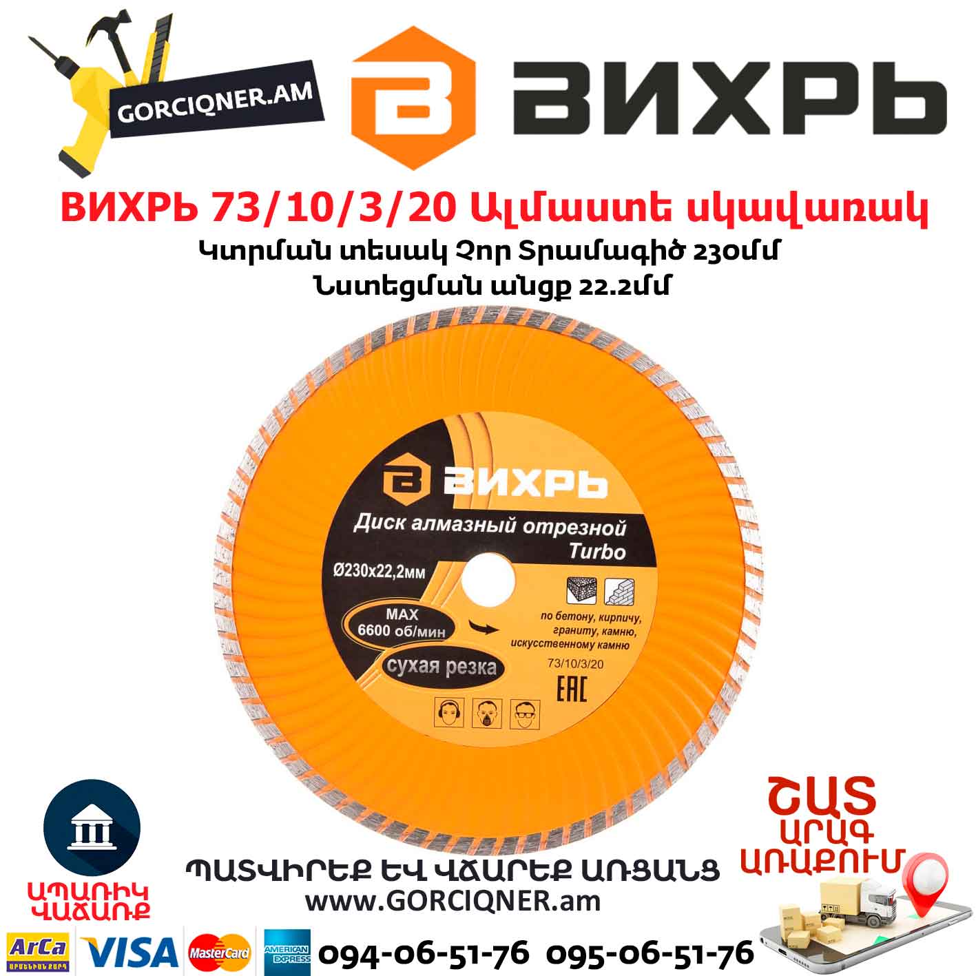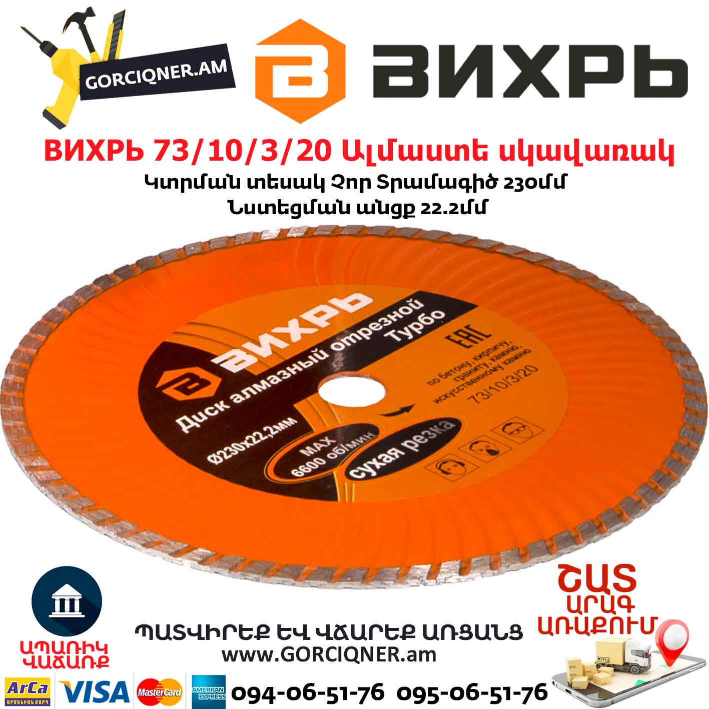 ВИХРЬ 73/10/3/20 Диск алмазный отрезной Турбо (230х22.2 мм; сухая резка)