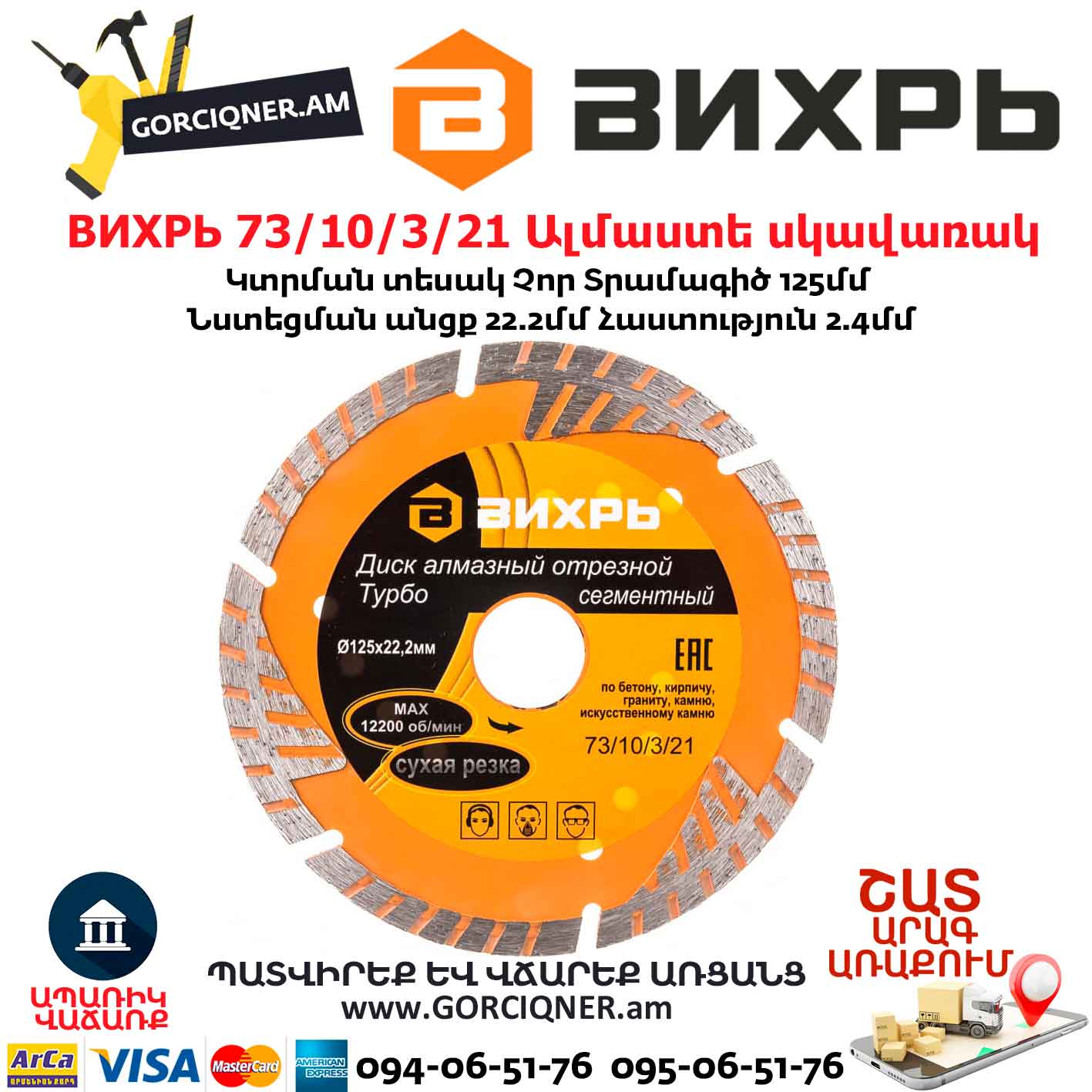 ВИХРЬ 73/10/3/21 Диск алмазный отрезной турбо-сегментный (125х22.2 мм; сухая резка)