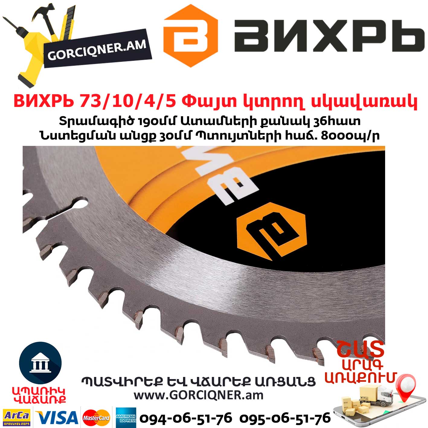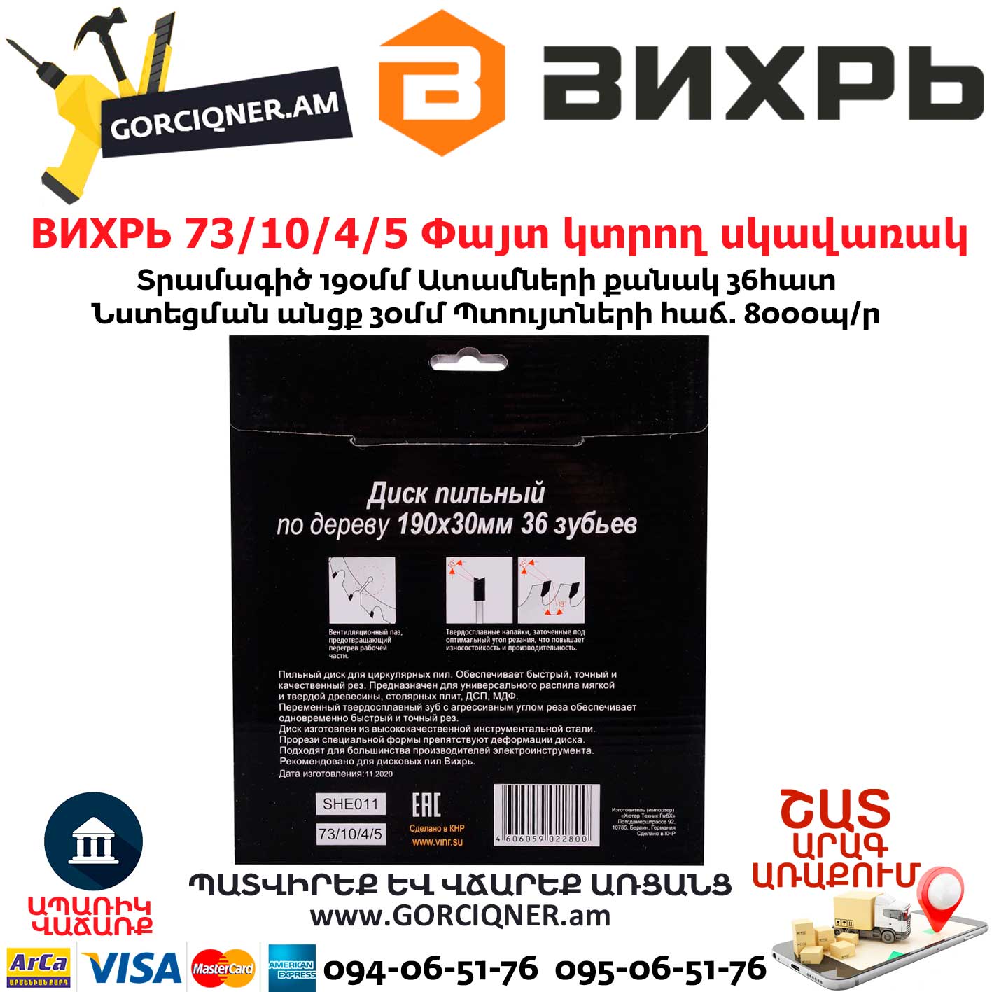 Технические характеристики пильного диска по дереву Вихрь 73/10/4/5