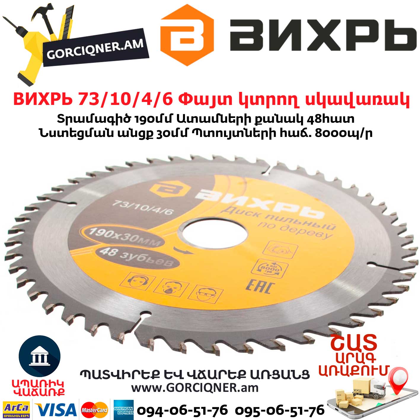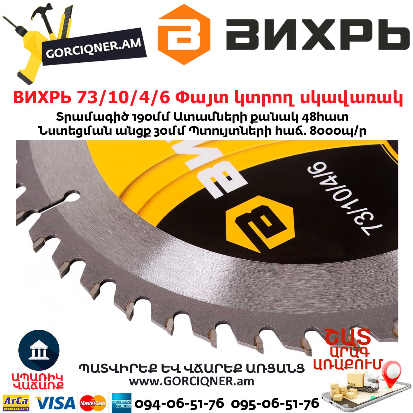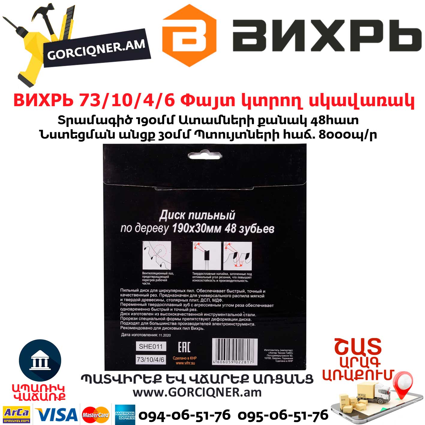 Технические характеристики пильного диска по дереву Вихрь 73/10/4/6