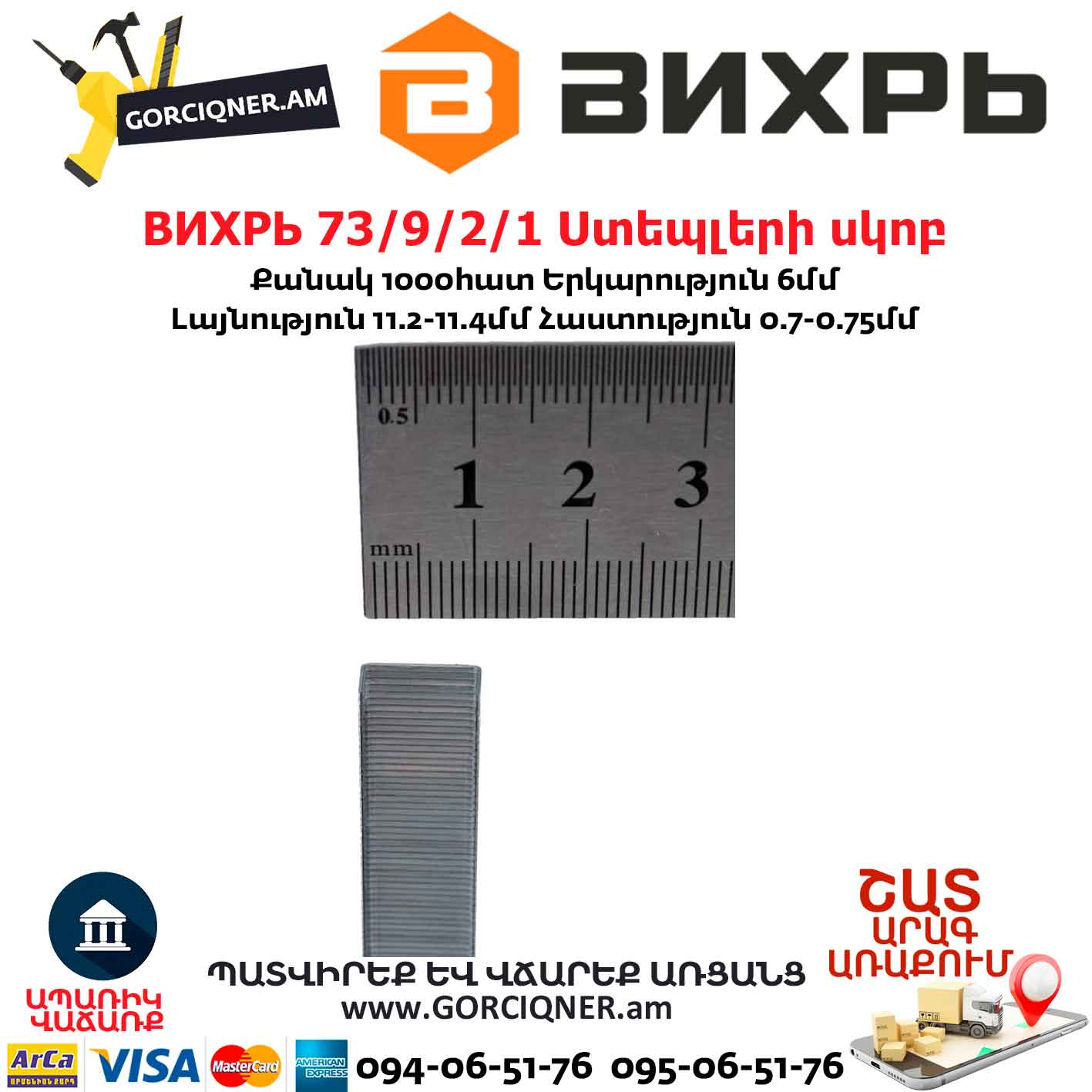 ВИХРЬ 73/9/2/1 Скобы тип 53 (1000 шт; 6 мм) для мебельного степлера