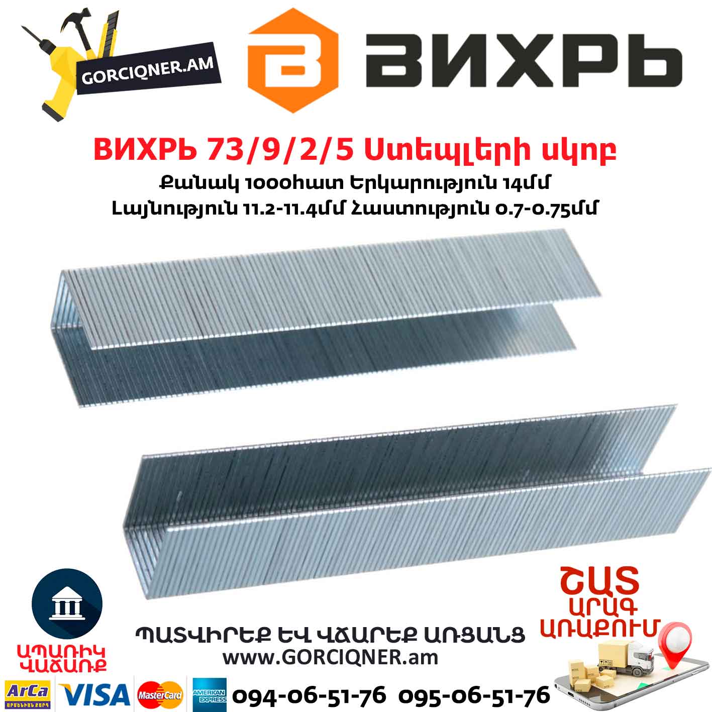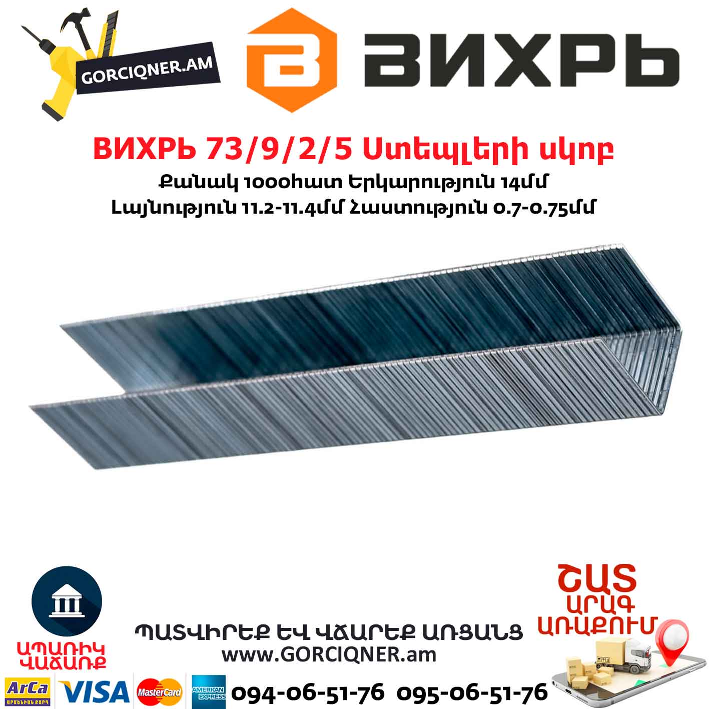 Технические характеристики скоб Вихрь 14мм, тип скобы 53, 1000шт.
