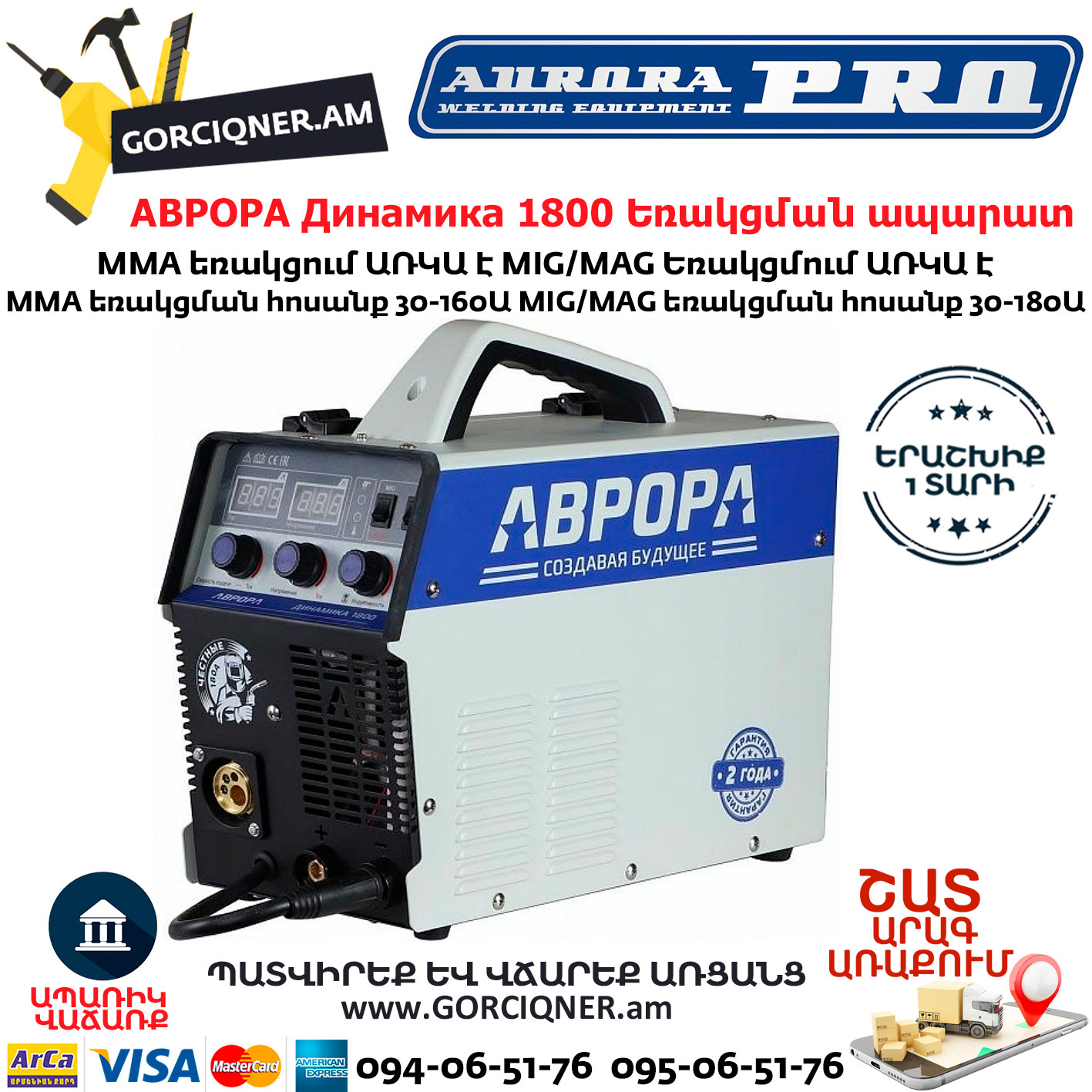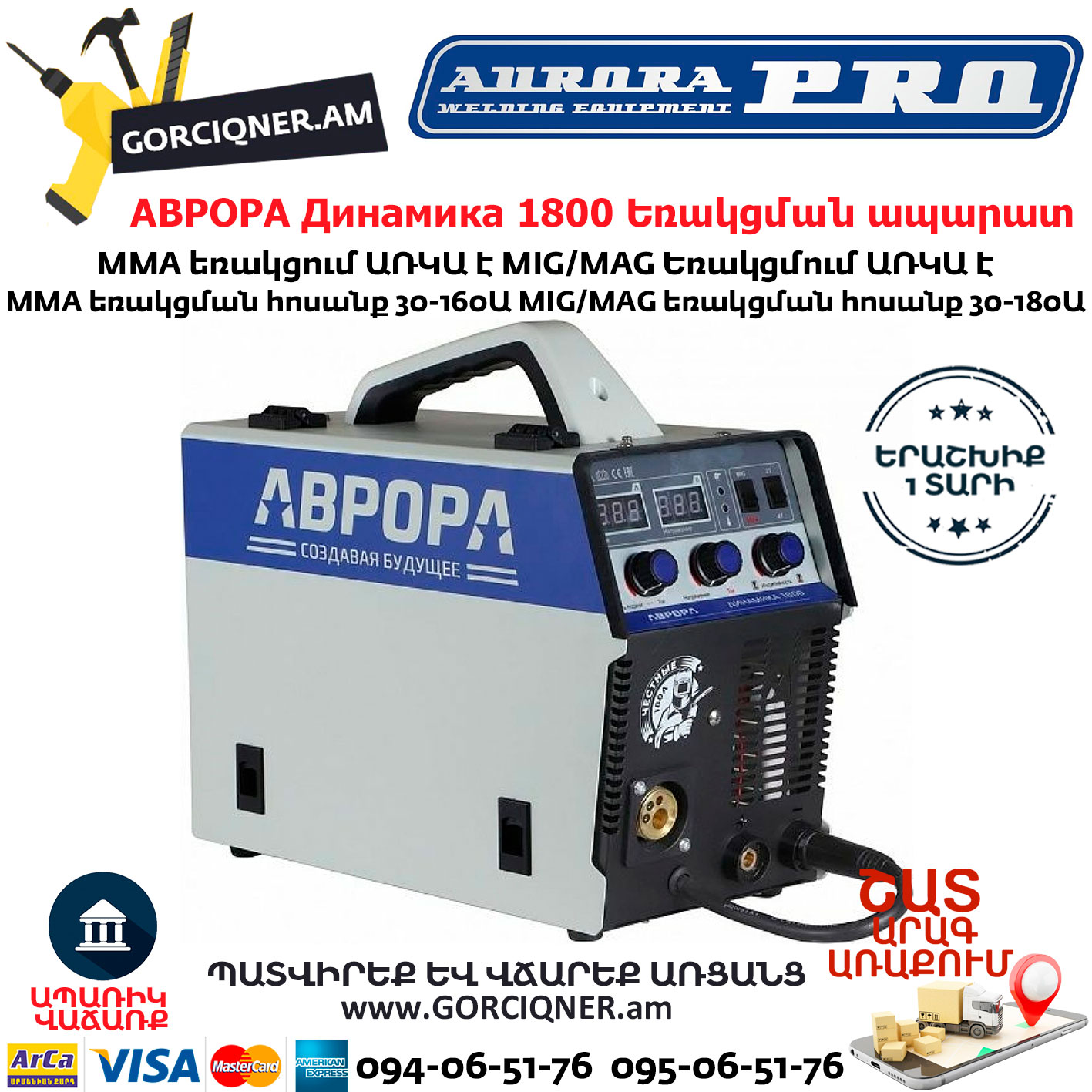 АВРОРА Динамика 1800 Сварочный полуавтомат MIG/MAG-MMA 180А
