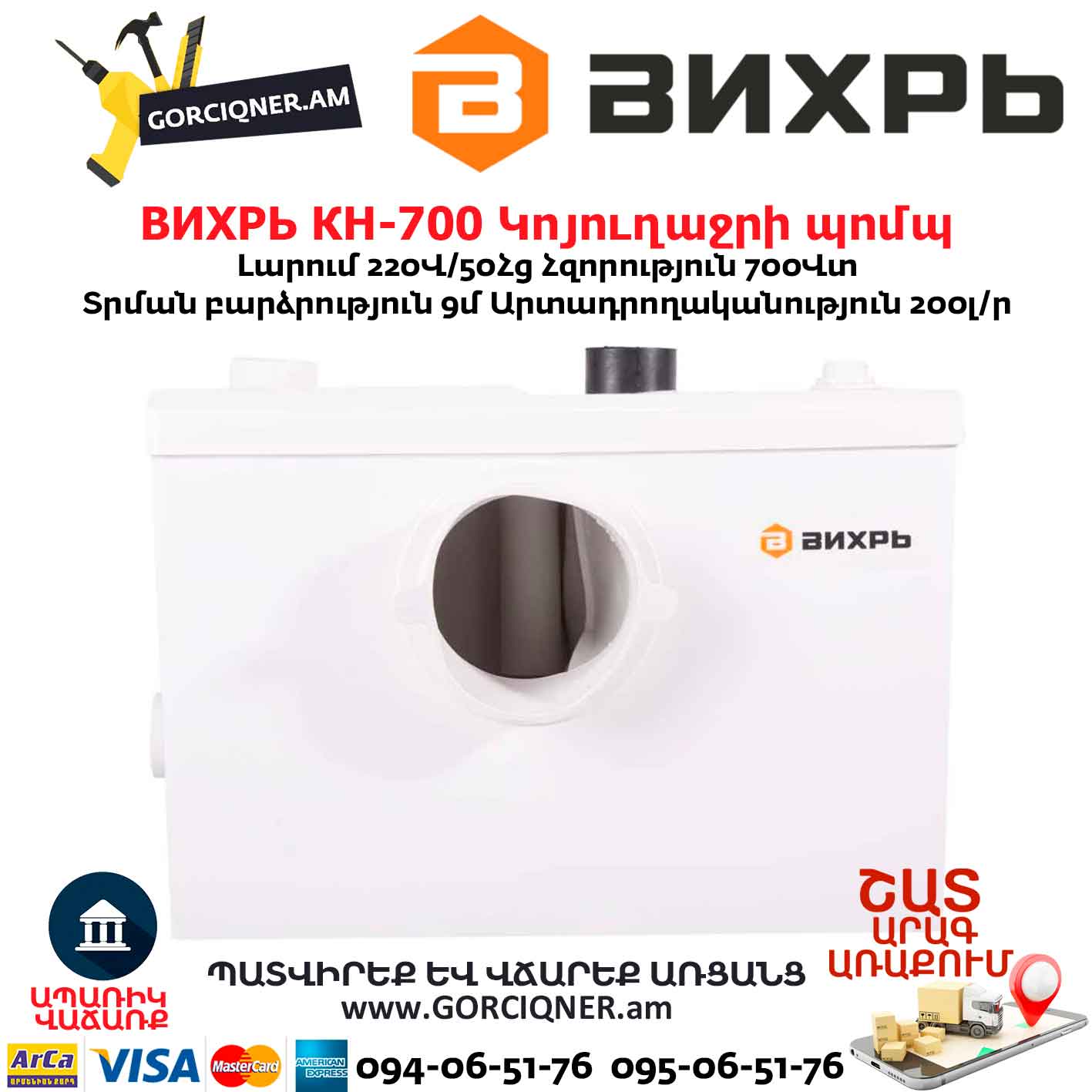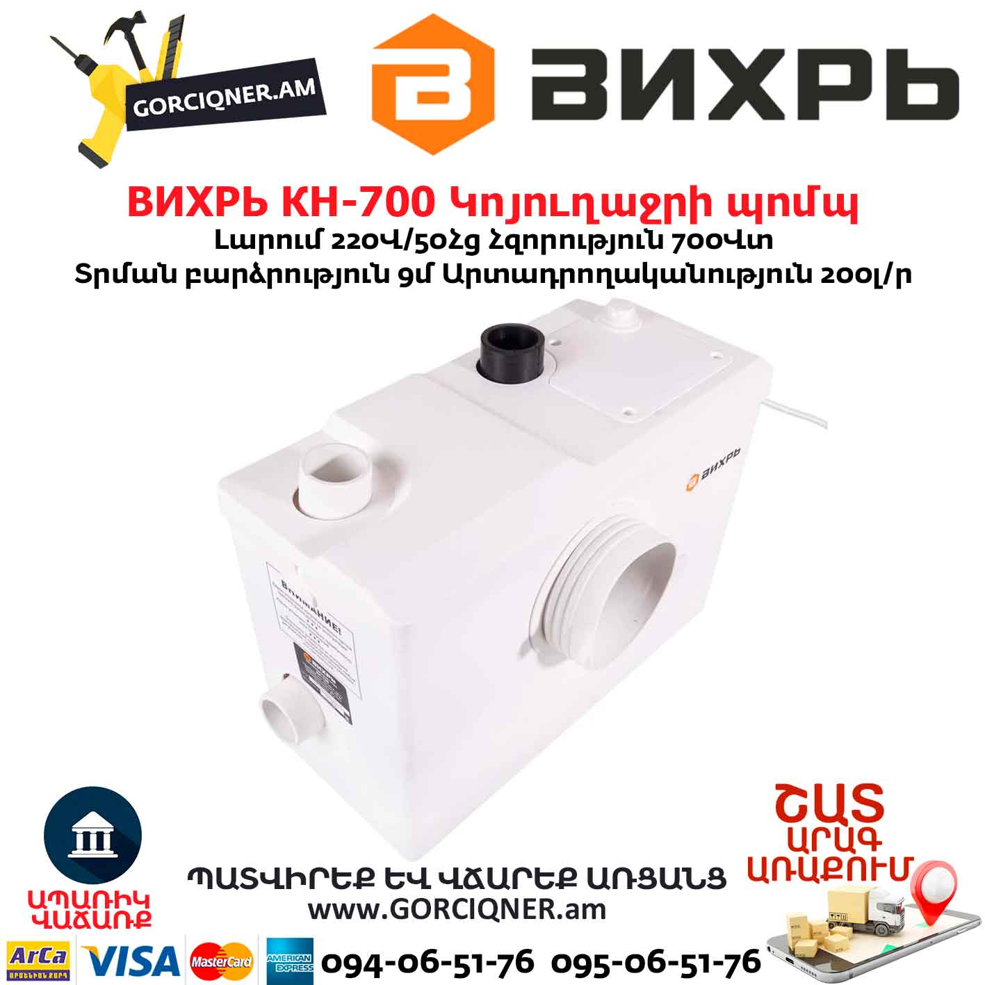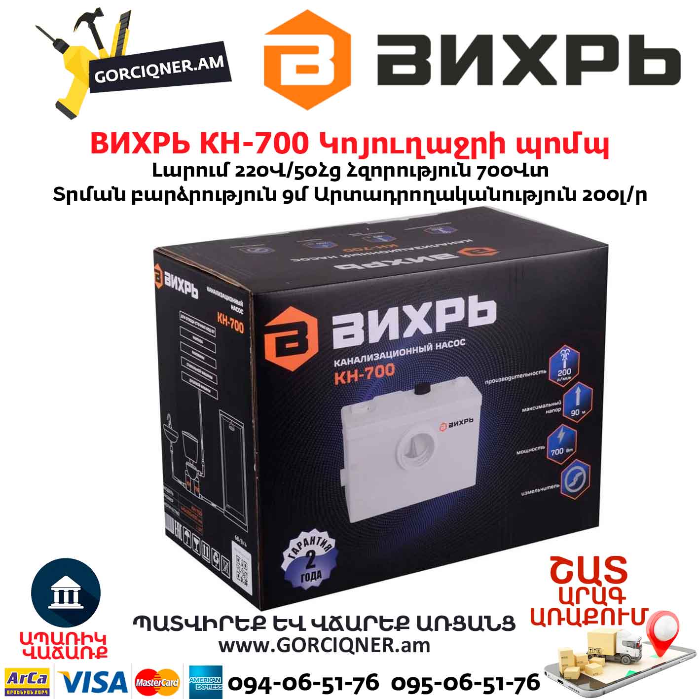 Удобная, производительная модель Вихрь КН-700 поможет создать автономную канализацию, обеспечит эффективное отведение сточных вод в выгребную яму, резервуар.