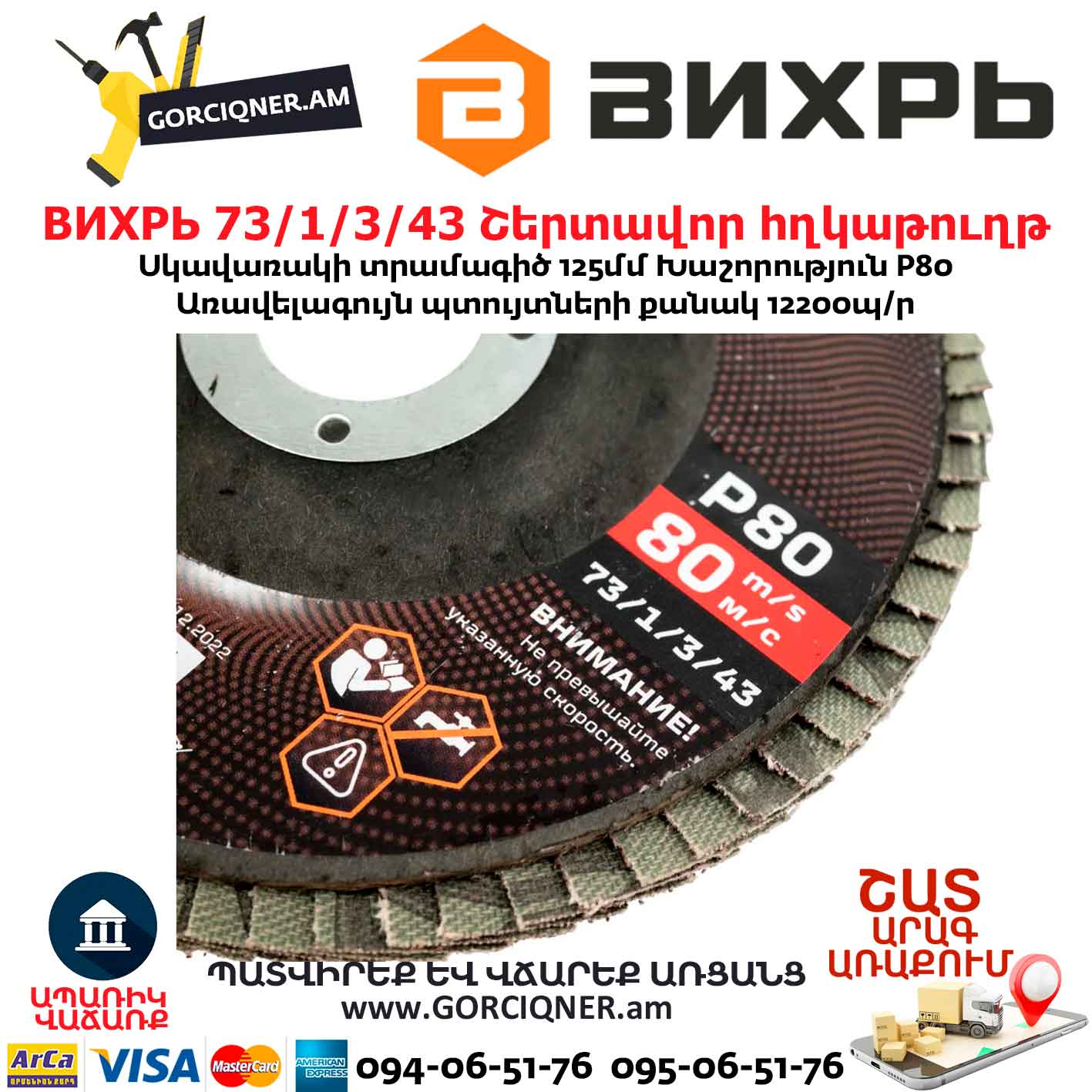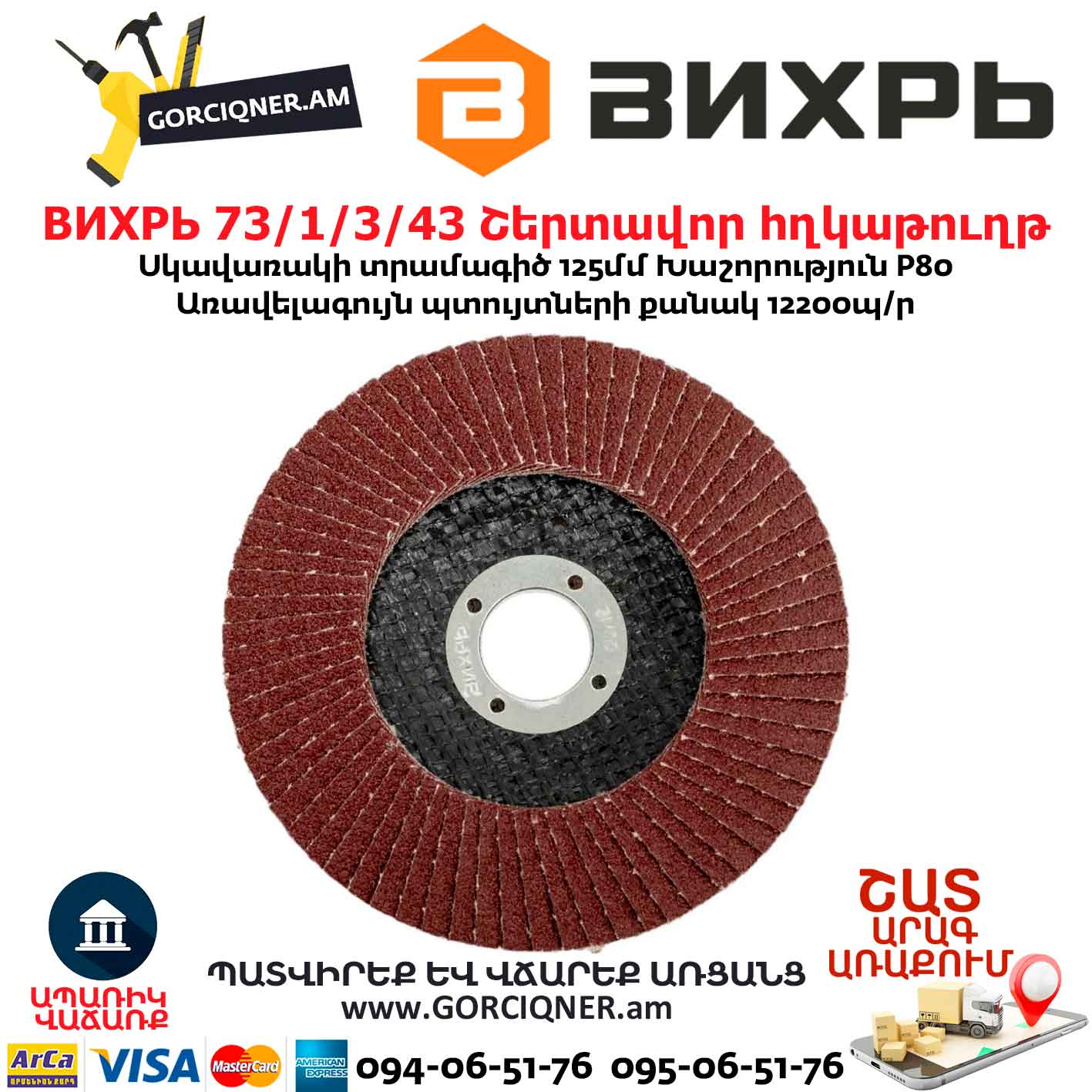 Круг лепестковый торцевой Вихрь 125х22,2 мм, Р80 изготовлен из прямоугольных элементов шлифовальной шкурки на тканевой основе, которые расположены в виде веера на подложке из стекловолокна, что даёт ряд преимуществ: