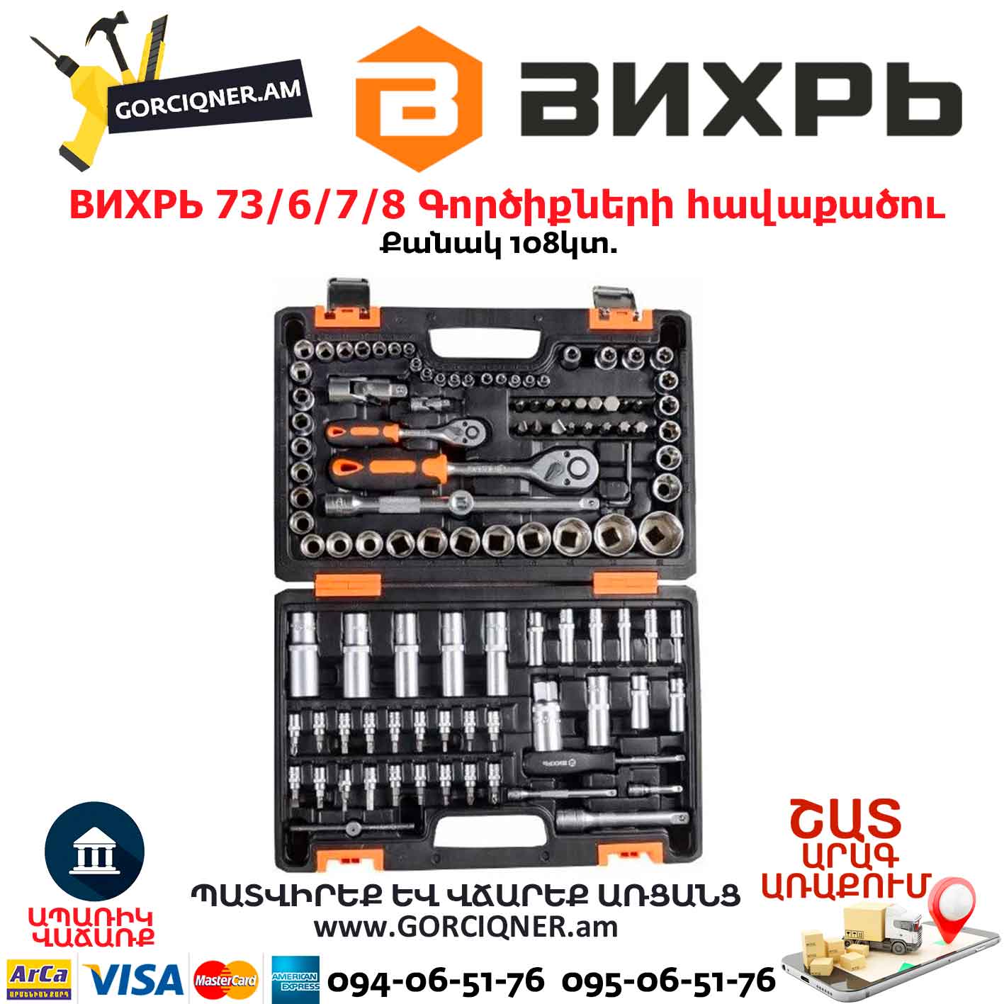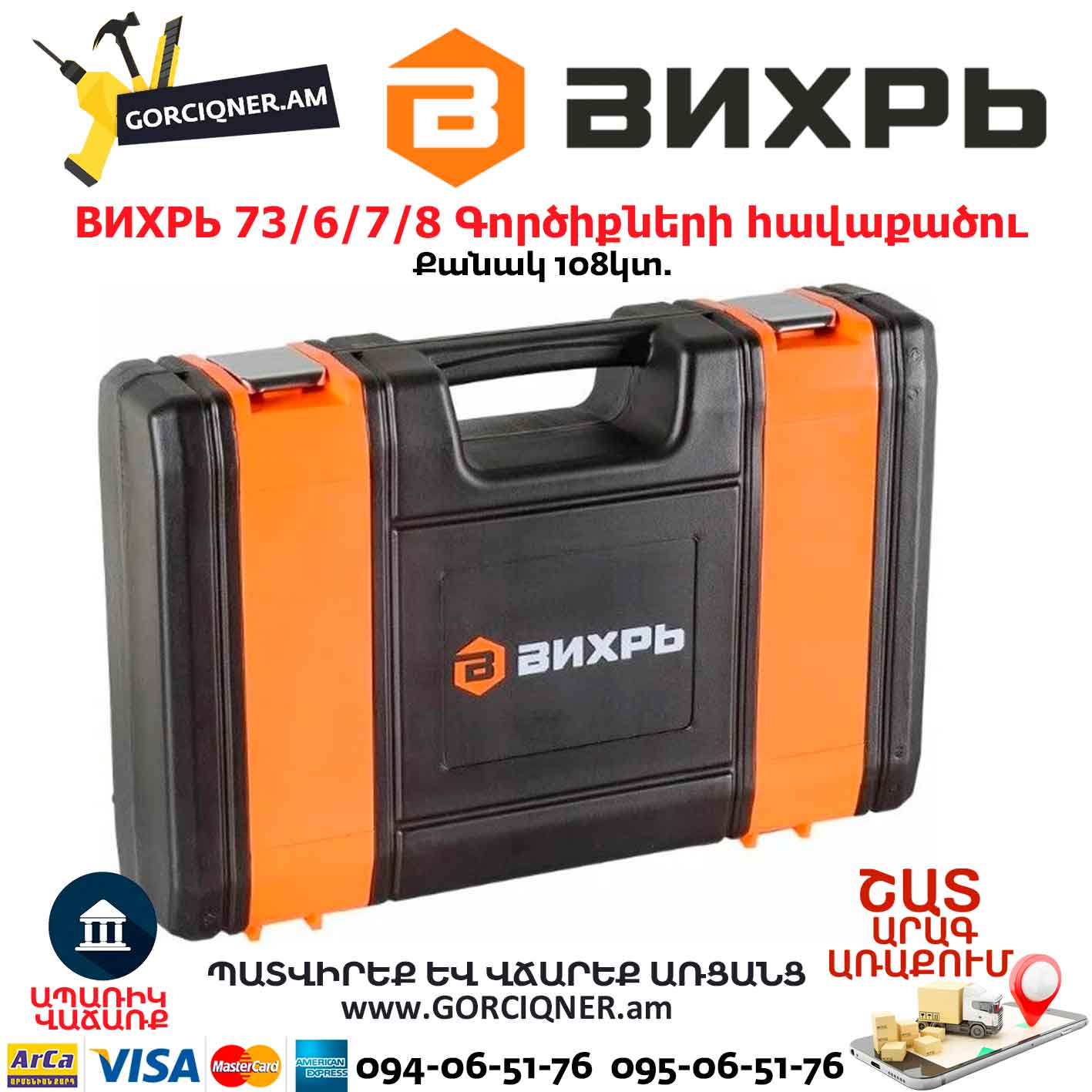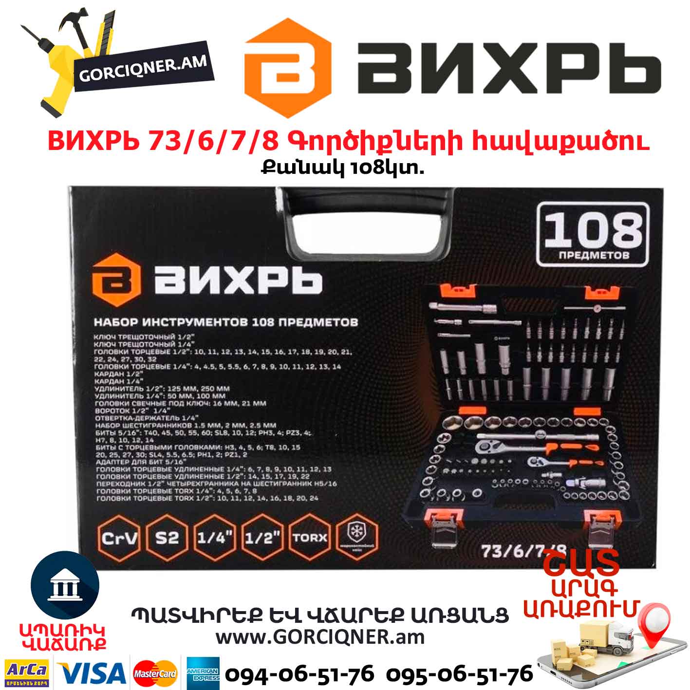 Набор инструментов ВИХРЬ 73/6/7/8 1/2″, 1/4″, CrV, в кейсе, 108 предметов