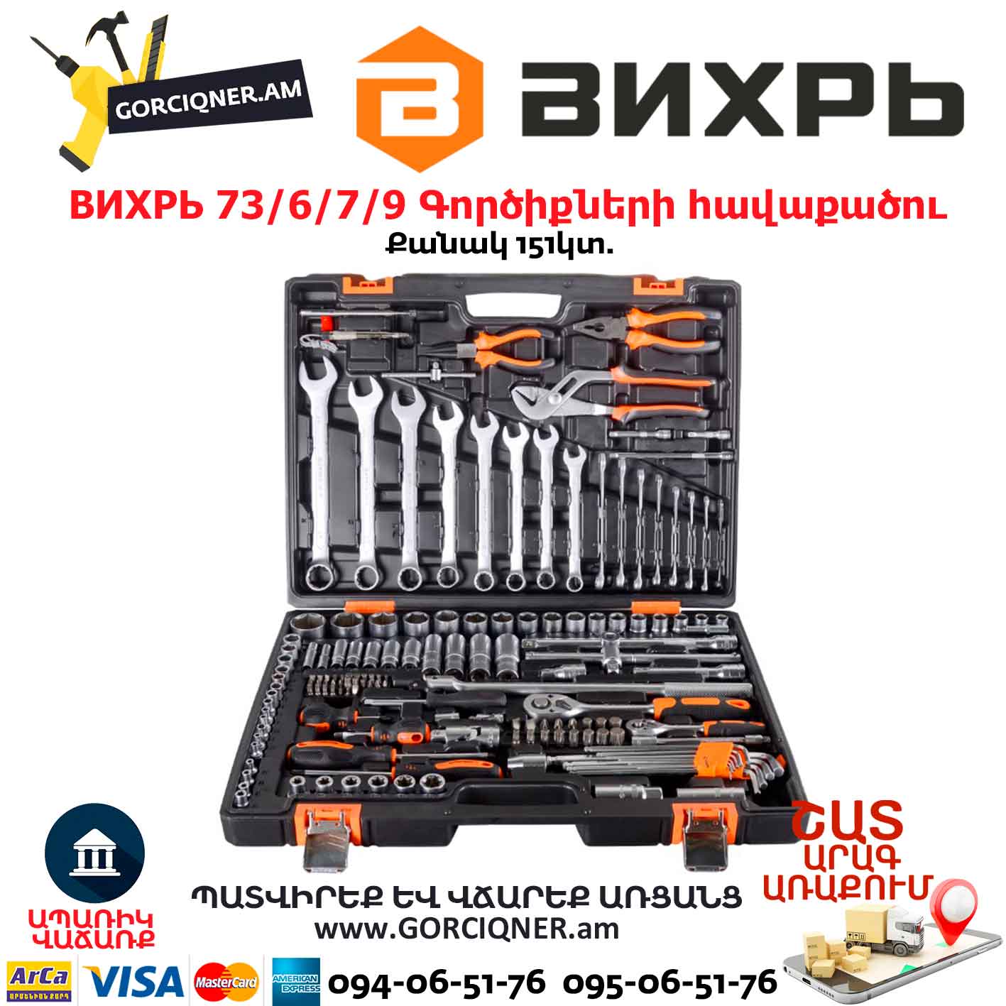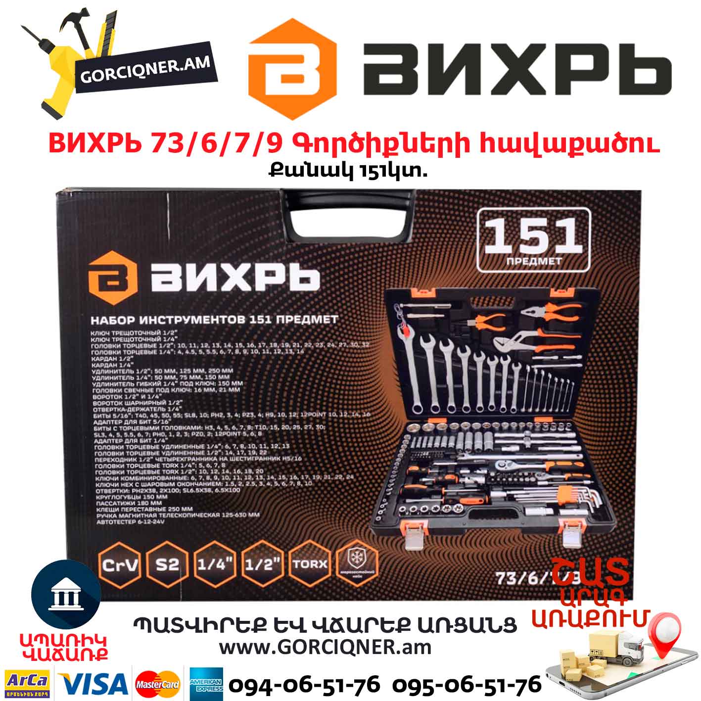 Набор инструментов Вихрь 1/2″, 1/4″, CrV, в кейсе, 151 предмет 73/6/7/9 предназначен для ремонта автомобилей, мотоциклов, садовой и другой техники. Подходит как для использования на станциях технического обслуживания, так и в бытовом применении дома или на даче. Инструмент изготовлен в соответствии с международными стандартами. Головки и комбинированные ключи изготовлены из хромованадиевой стали, придающей инструменту высокую твердость и легкость. Биты, биты-вставки и отвёртки производятся из стали S2, улучшающей характеристики крутящего момента и твёрдости. Все наборы упакованы в ударопрочный кейс, изготовленный из жесткого противоударного пластика, с металлическими застёжками. Повышенные показатели прочности, крутящего момента и износостойкости.