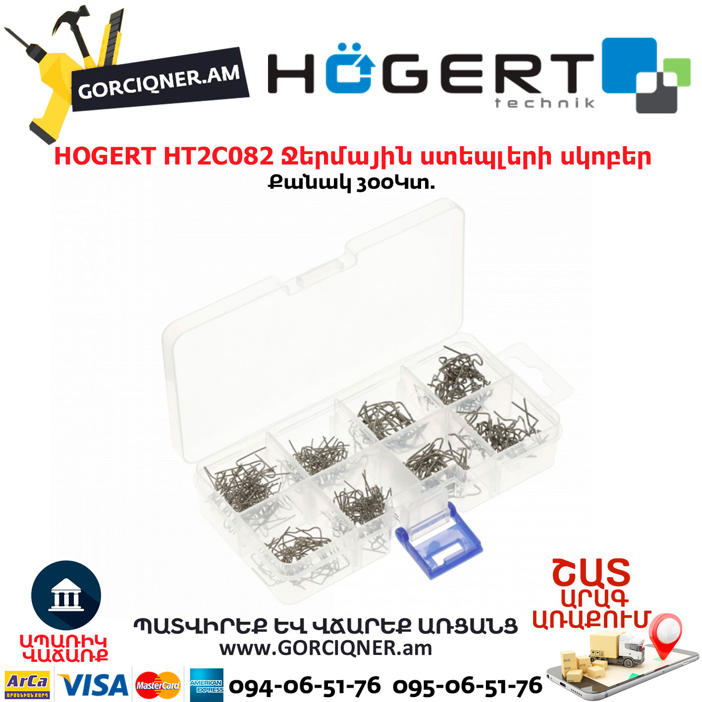 Набор скоб для термостеплера HOGERT HT2C082 300скоб