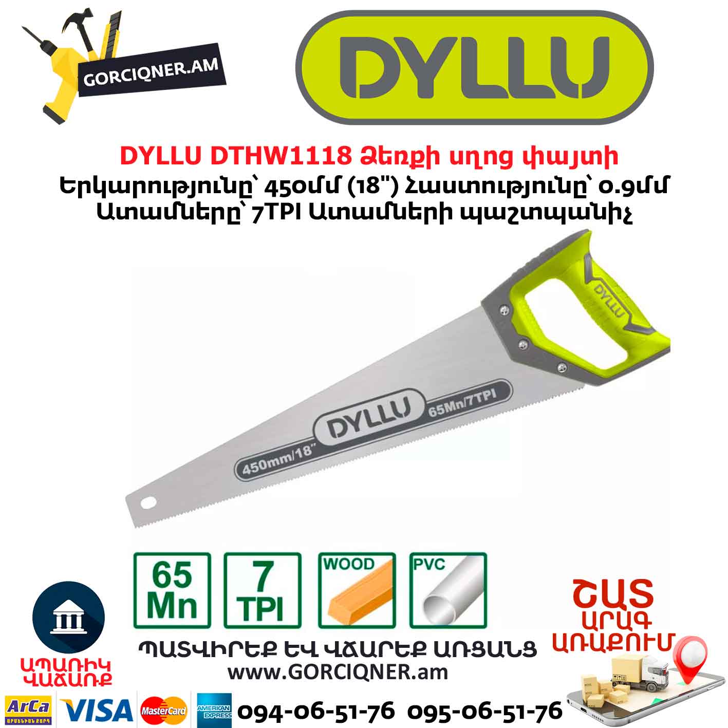 Ножовка по дереву DYLLU DTHW1118 450мм