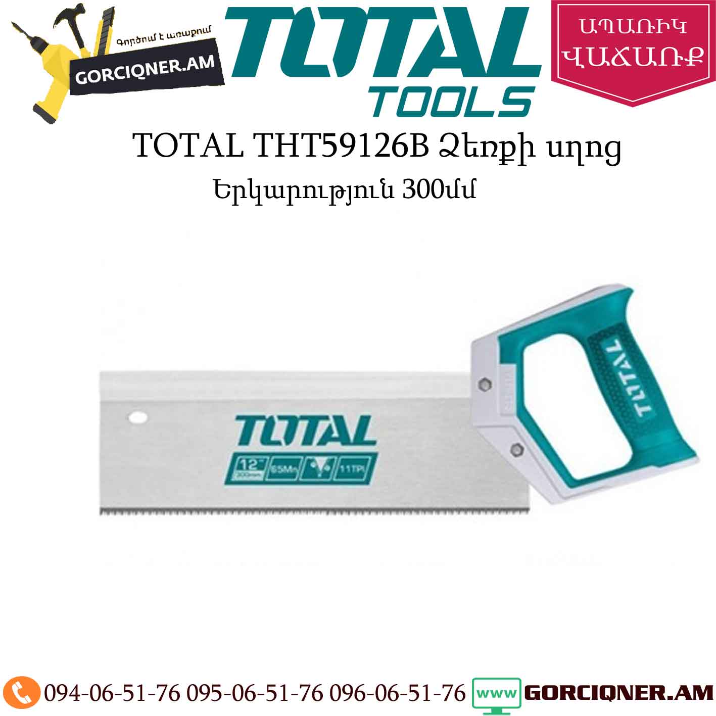 Ножовка по дереву TOTAL THT59126B 300мм