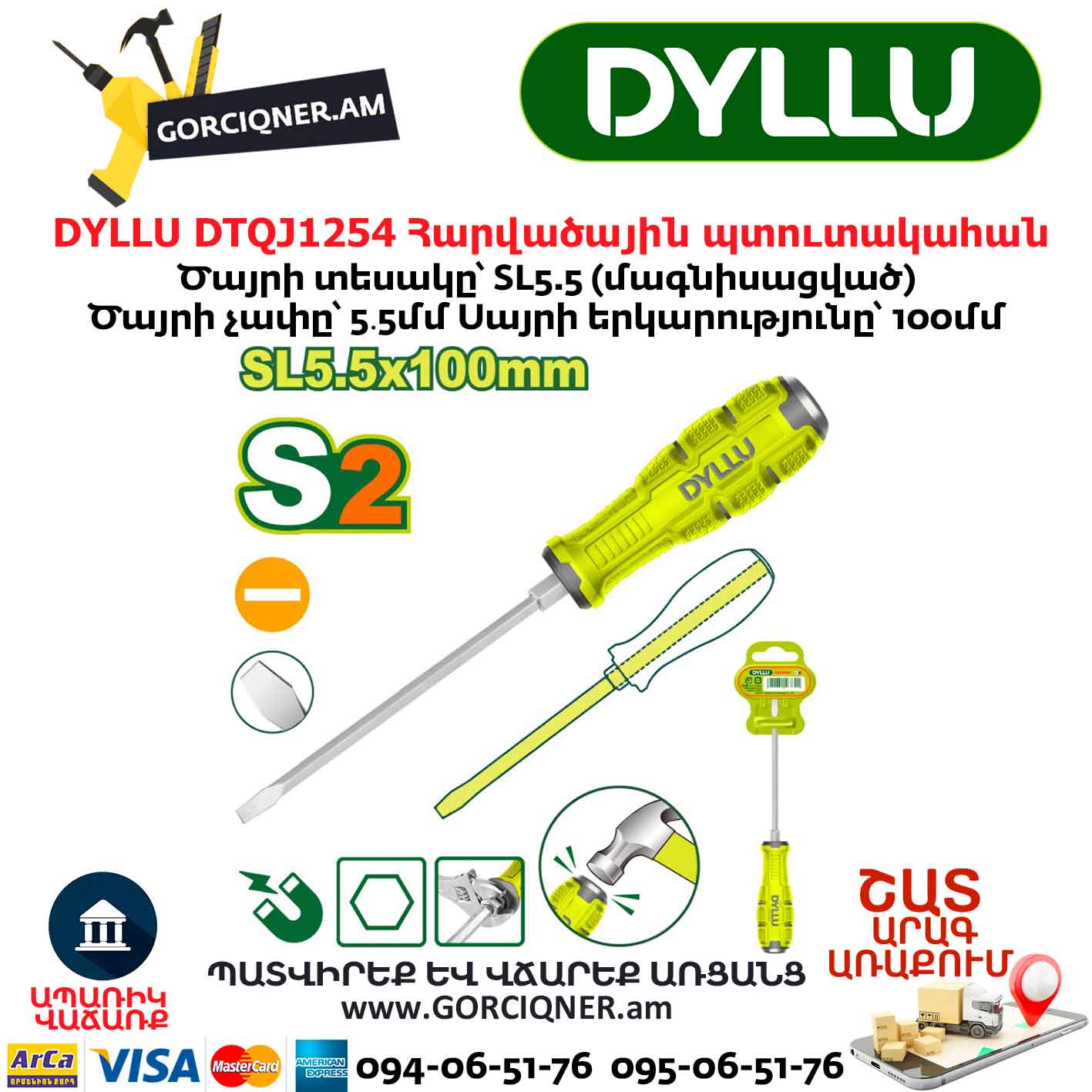 Плоская отвертка DYLLU DTQJ1254 SL5․5×100мм