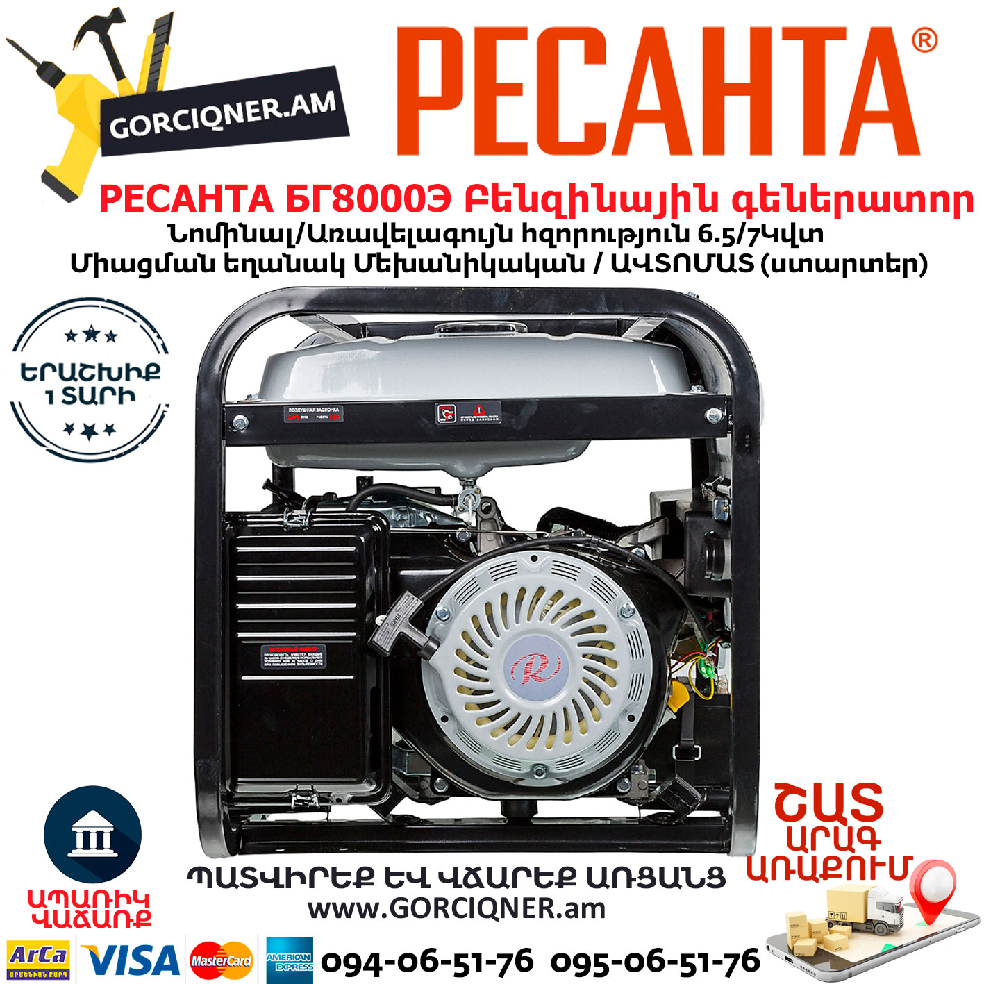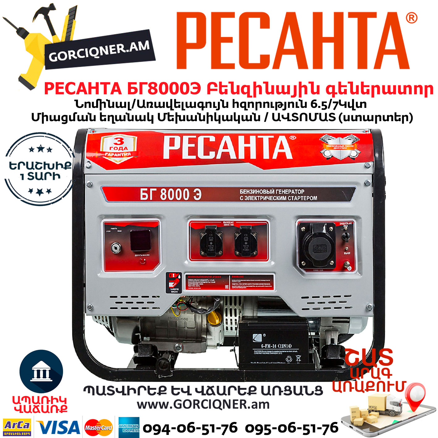 РЕСАНТА БГ8000Э Электрогенератор 7000Вт
