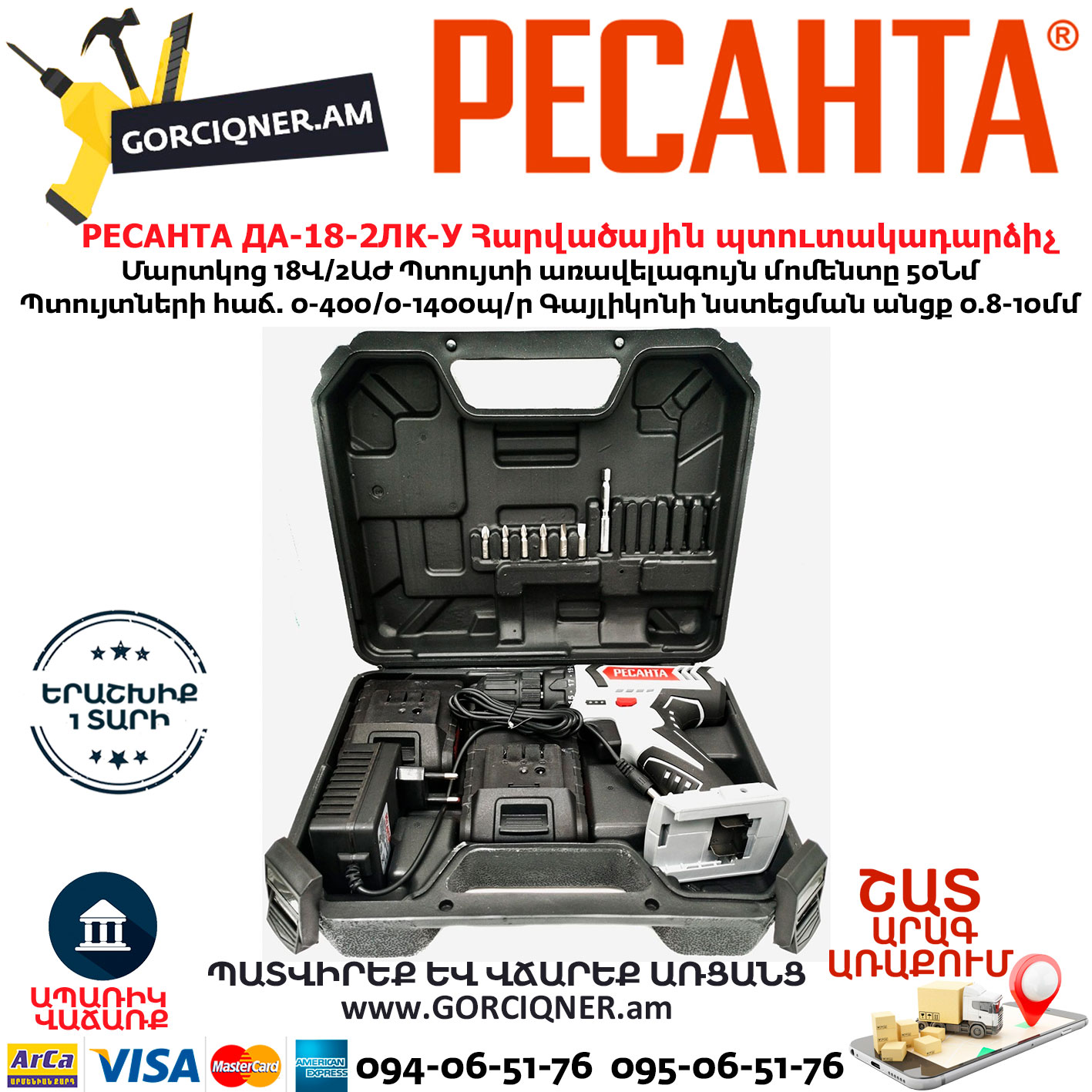РЕСАНТА ДА-18-2ЛК-У Дрель-шуруповерт аккумуляторная 18В