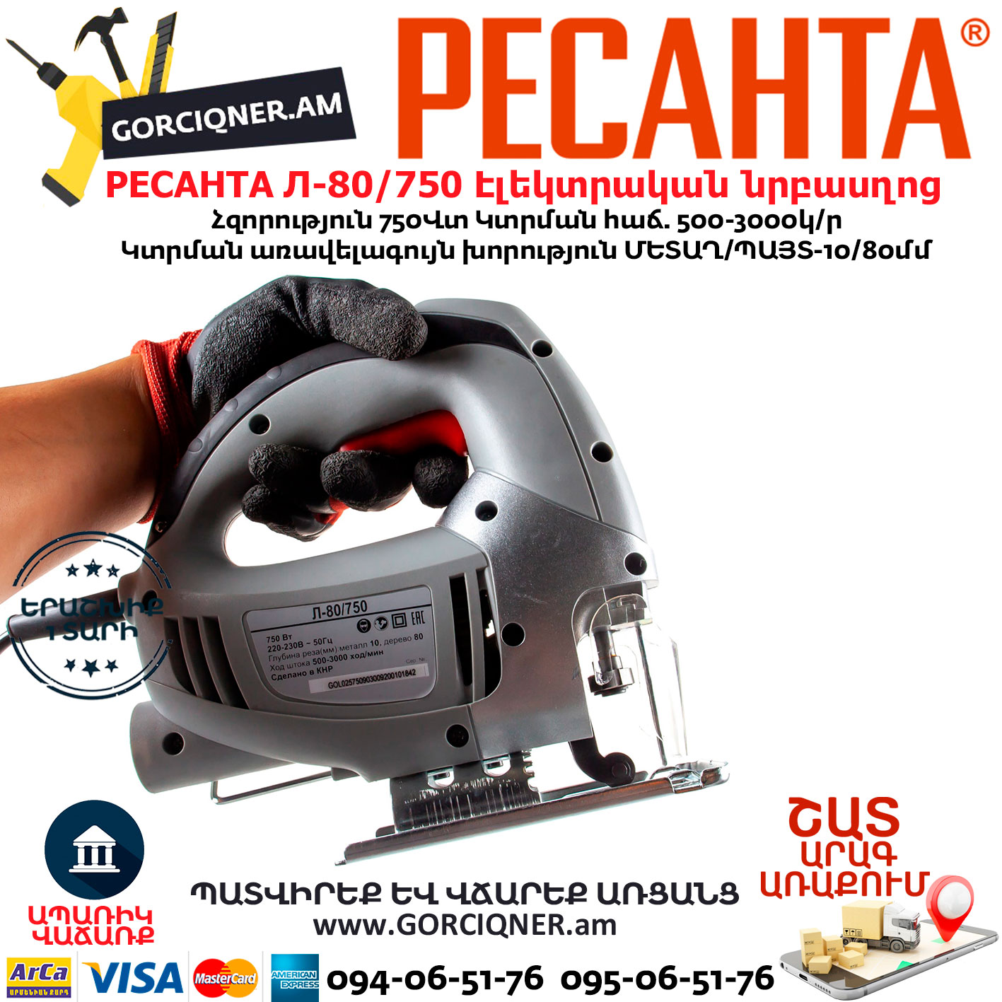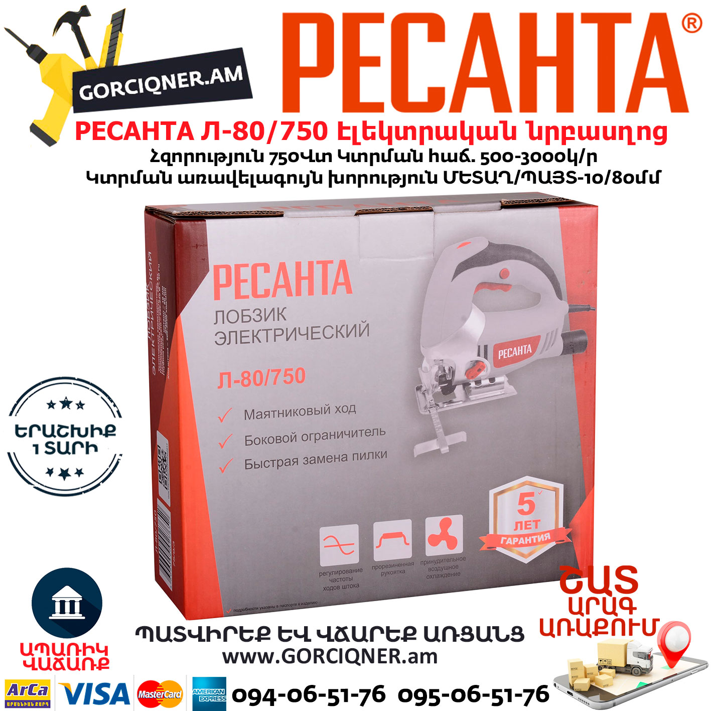 РЕСАНТА Л-80/750 Лобзик электрический 750Вт