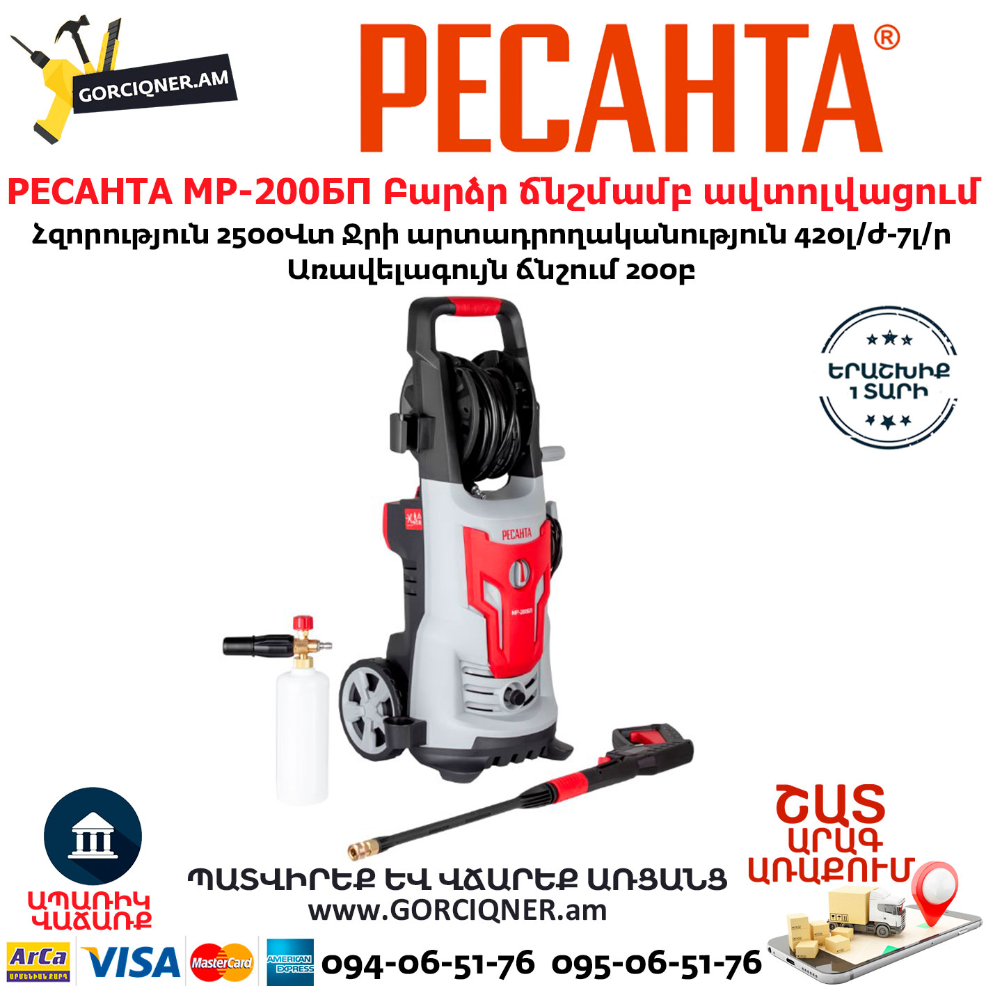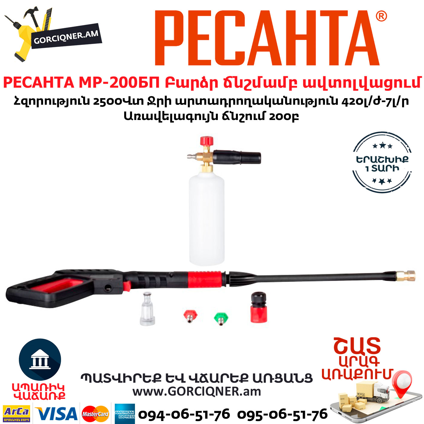 Высокая прочность и износостойкость мойки высокого давления обусловлена применением качественных, долговечных материалов.