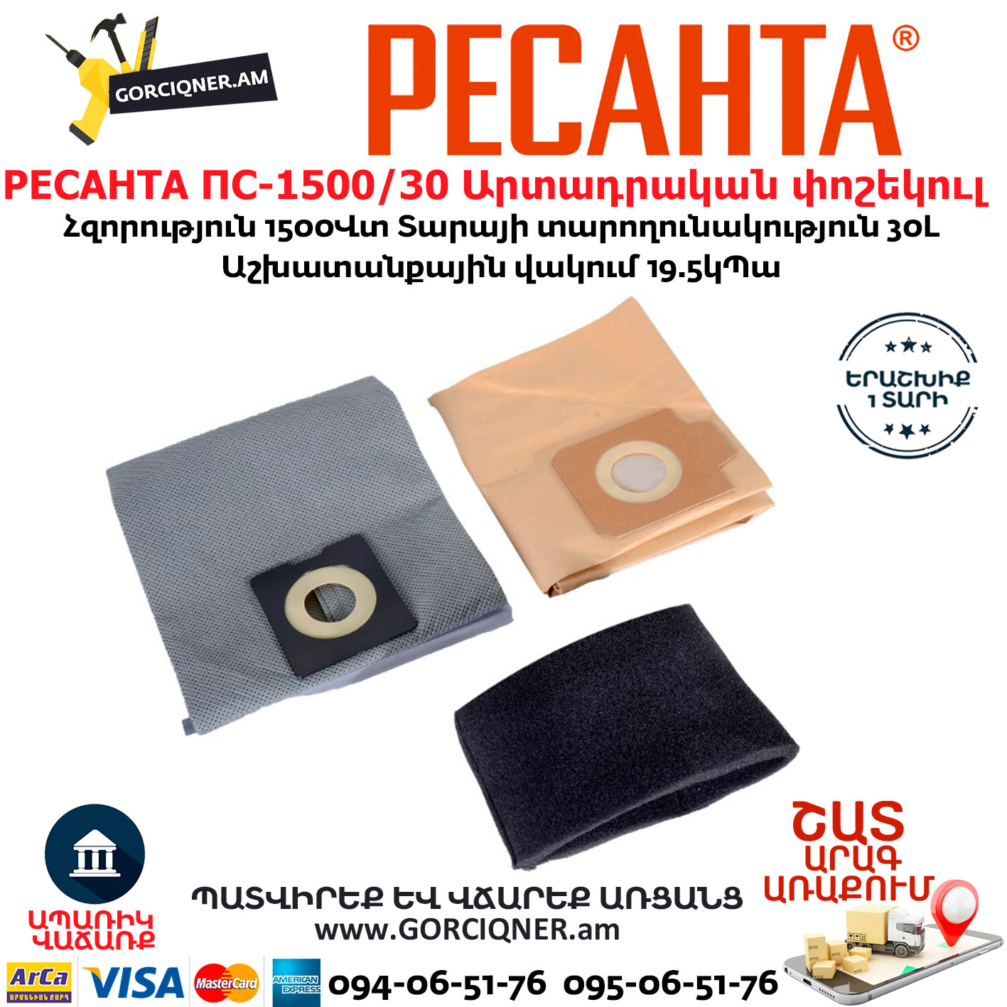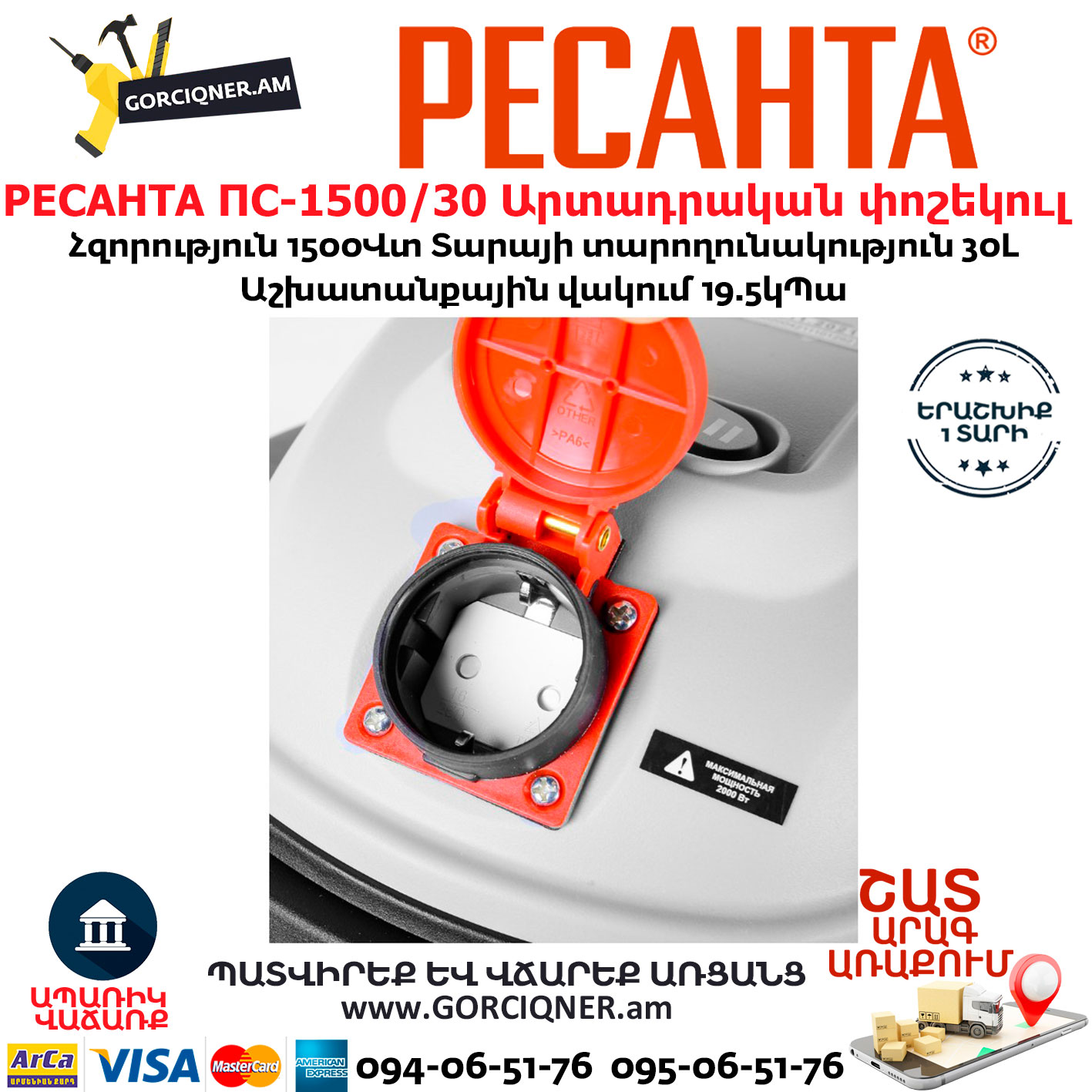 РЕСАНТА ПС-1500/30 Пылесос строительный 1500Вт/30л
