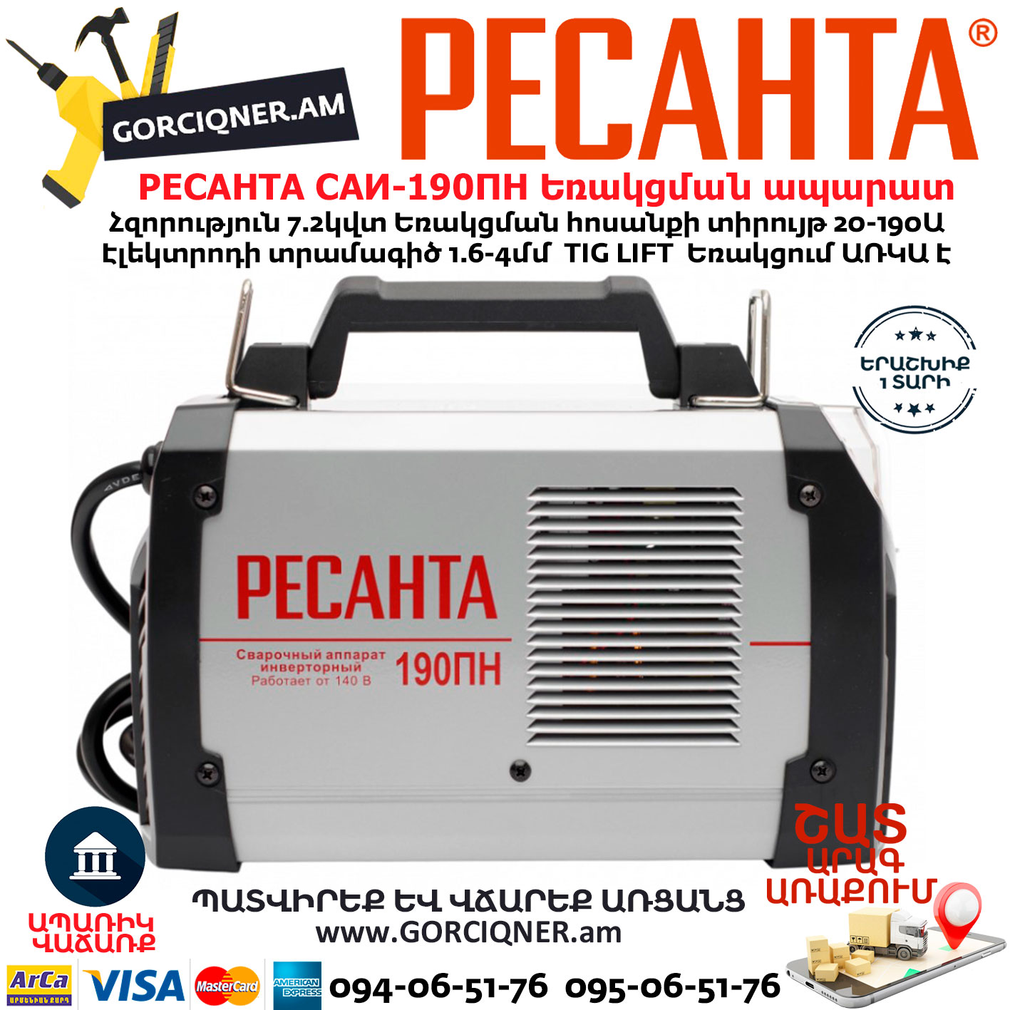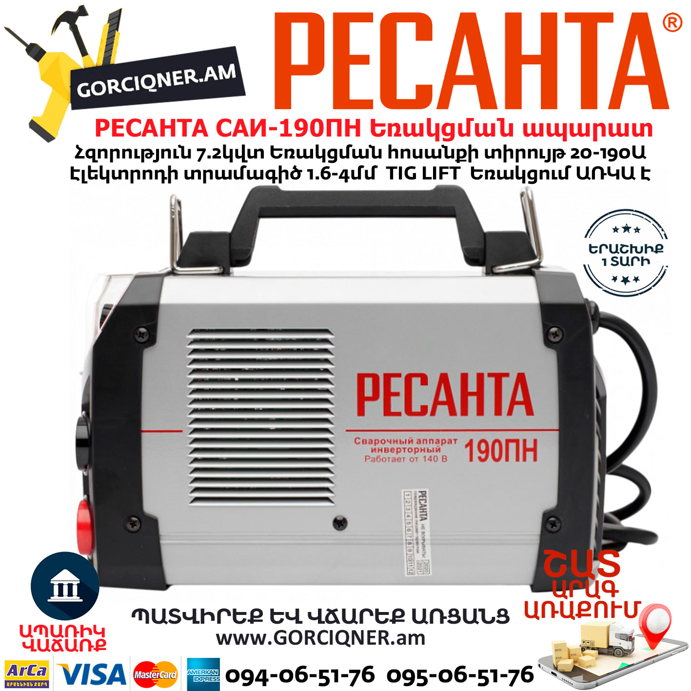 Сварочный аппарат серии САИ-190 ПН «Ресанта» предназначен для ручной дуговой сварки штучным покрытым электродом на постоянном токе и электродом с рутиловым и основным покрытием (режим ММА) и сварки постоянным током неплавящимся электродом в среде защитного газа углеродистых и нержавеющих сталей (режим TIG LIFT). Сварка осуществляется постоянным током в среде аргона. Отличительной особенностью рассматриваемого вида сварки являются два главных компонента: неплавящийся электрод и защитный газ (аргон). Аппарат оснащен LCD дисплеем нового поколения. Аппарат работает от однофазной сети в диапазоне 140-260В с частотой 50Гц. Аппарат портативен и универсален в применении. Небольшие габариты и малый вес позволяют использовать аппарат для любых ремонтных работ, где требуется мобильность, небольшая мощность, хорошее качество и высокая производительность. Сварочные аппараты модели ПН предназначен для работы при пониженном напряжении.
