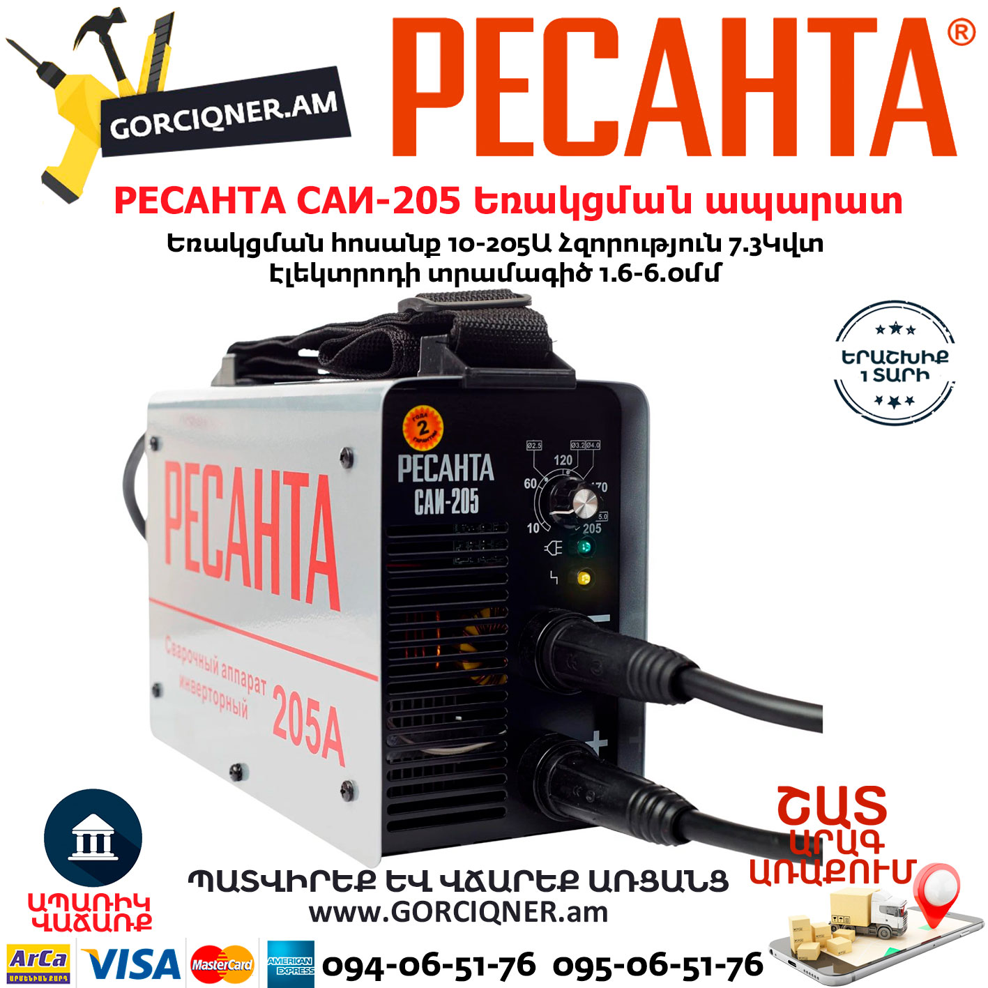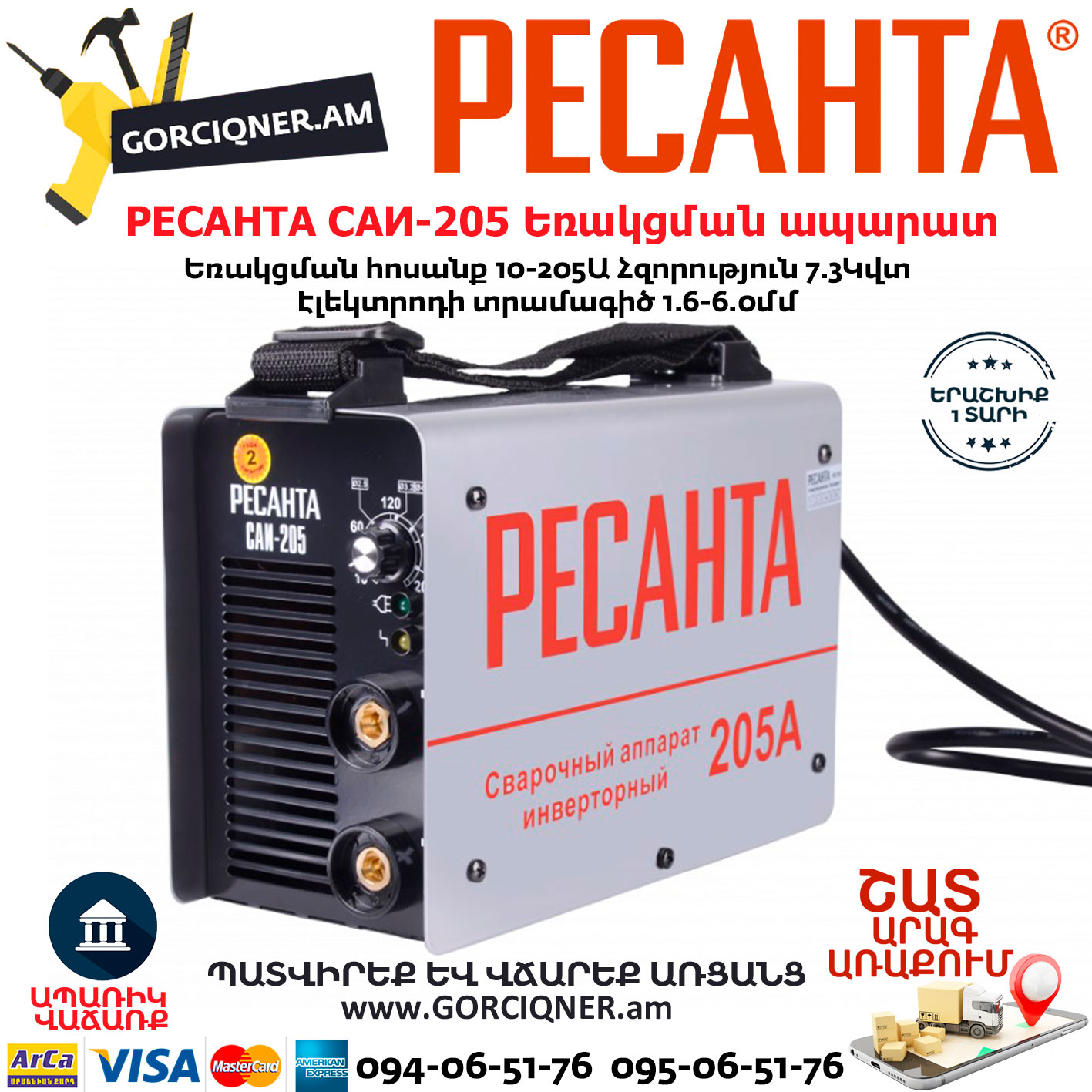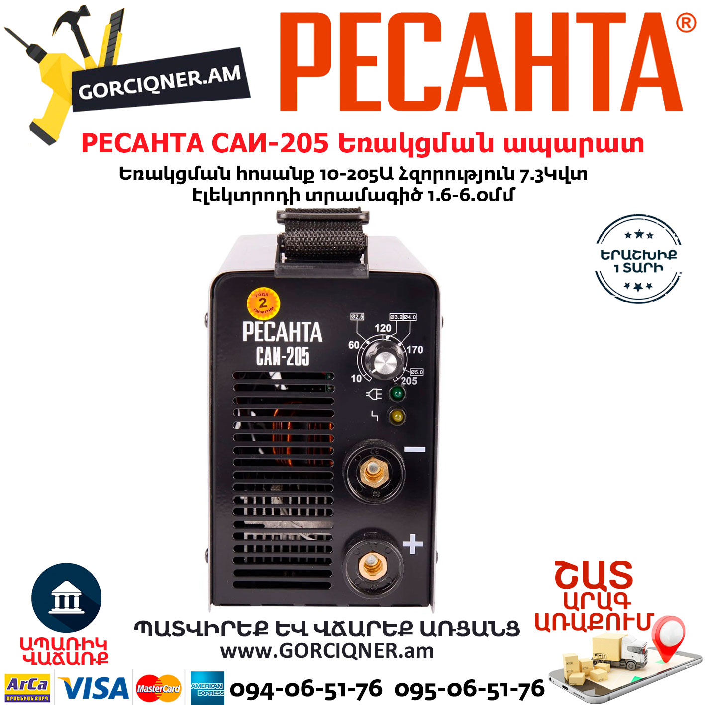САИ-205 Ресанта – предназначен для ручной дуговой сварки штучным покрытым электродом на постоянном токе и электродом с рутиловым и основным покрытием (режим ММА).Данная серия сварочных аппаратов разработана на базе IGBT транзисторов.Аппарат работает от однофазной сети 220-230В. Аппарат портативен и универсален в применении. Небольшие габариты и малый вес позволяют использовать аппарат для любых ремонтных работ, где требуется мобильность, небольшая мощность, хорошее качество и высокая производительность.