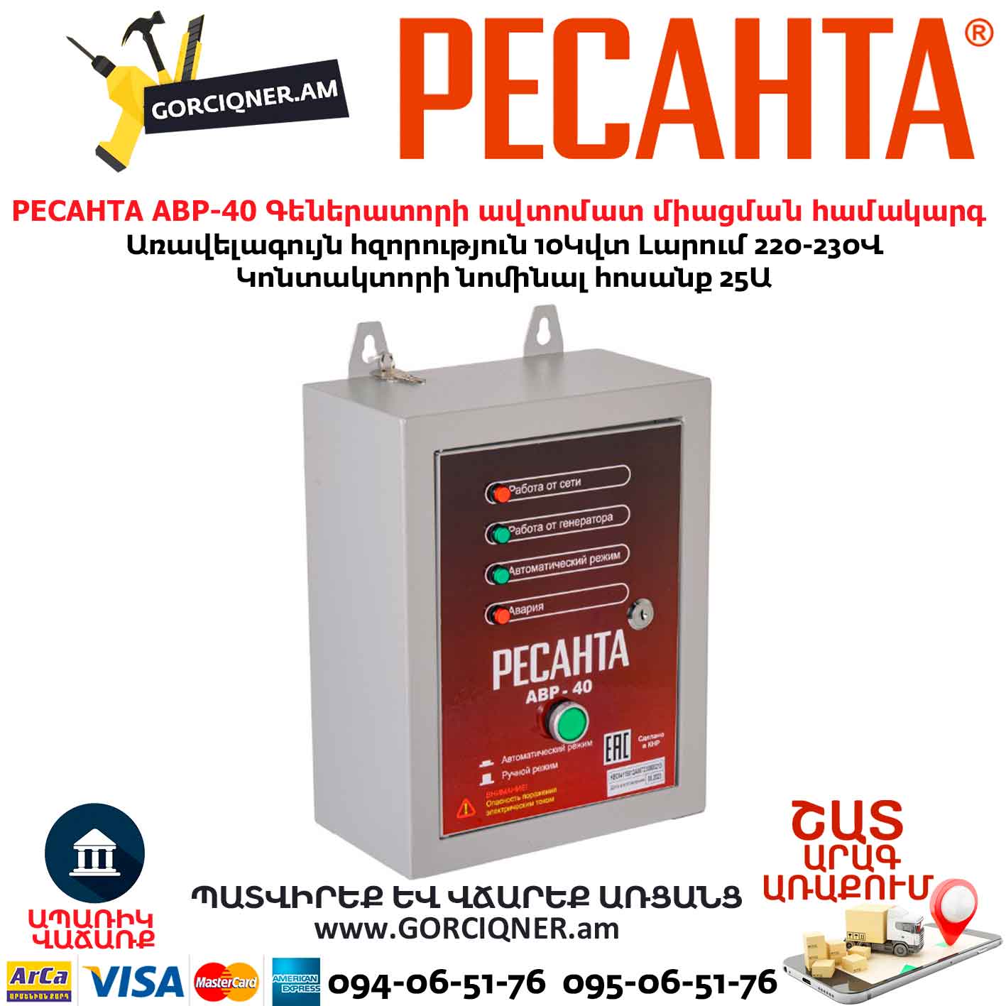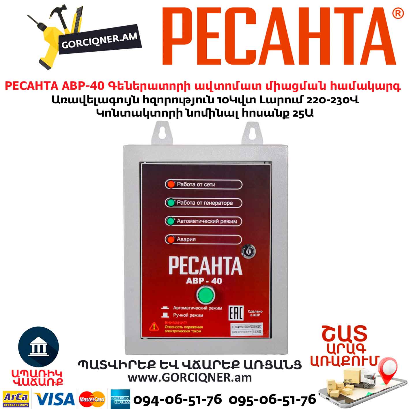 Система автозапуска для генератора РЕСАНТА АВР-40 220В/10КВТ 64/1/82