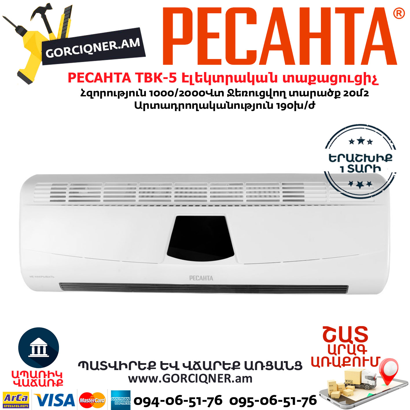 РЕСАНТА ТВК-5 Электрический тепловентилятор настенный / Обогреватель
