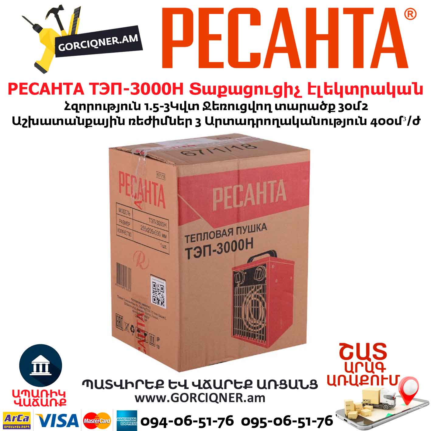 Электрическая теплопушка Ресанта ТЭП-3000Н – компактное устройство, позволяющее быстро и эффективно обогреть нежилое помещение, имея в распоряжении только розетку в 220 В.