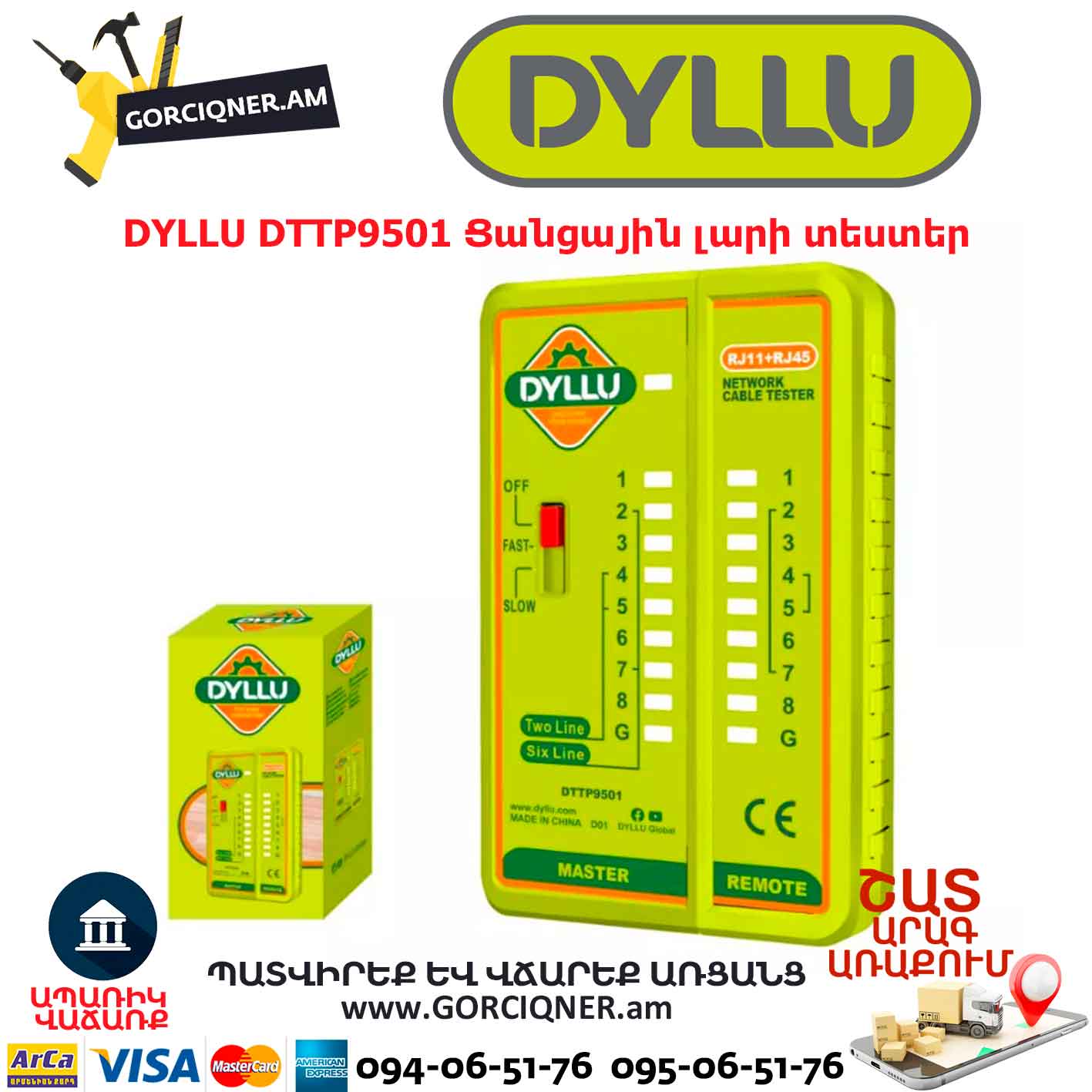 Тестер для витой пары DYLLU DTTP9501 2P-8P