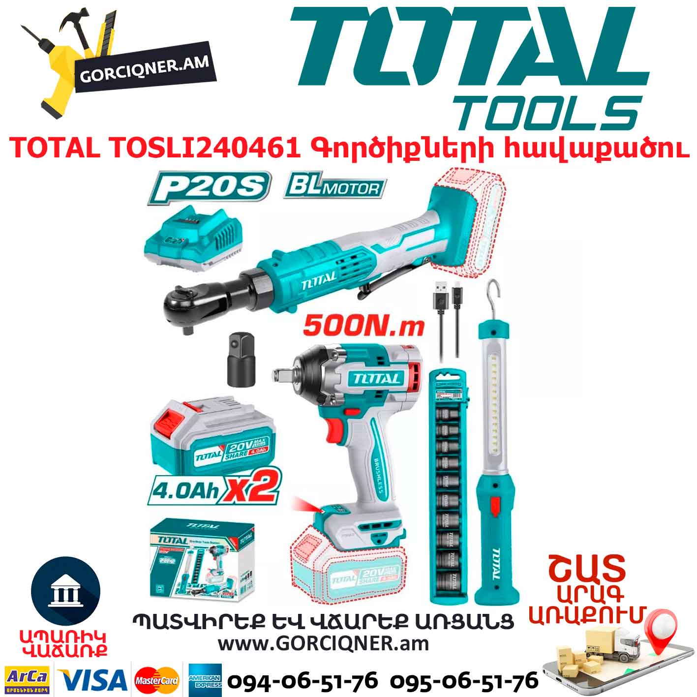 Ударный Гайковерт аккумуляторный TOTAL TOSLI240461 20В/4Ач