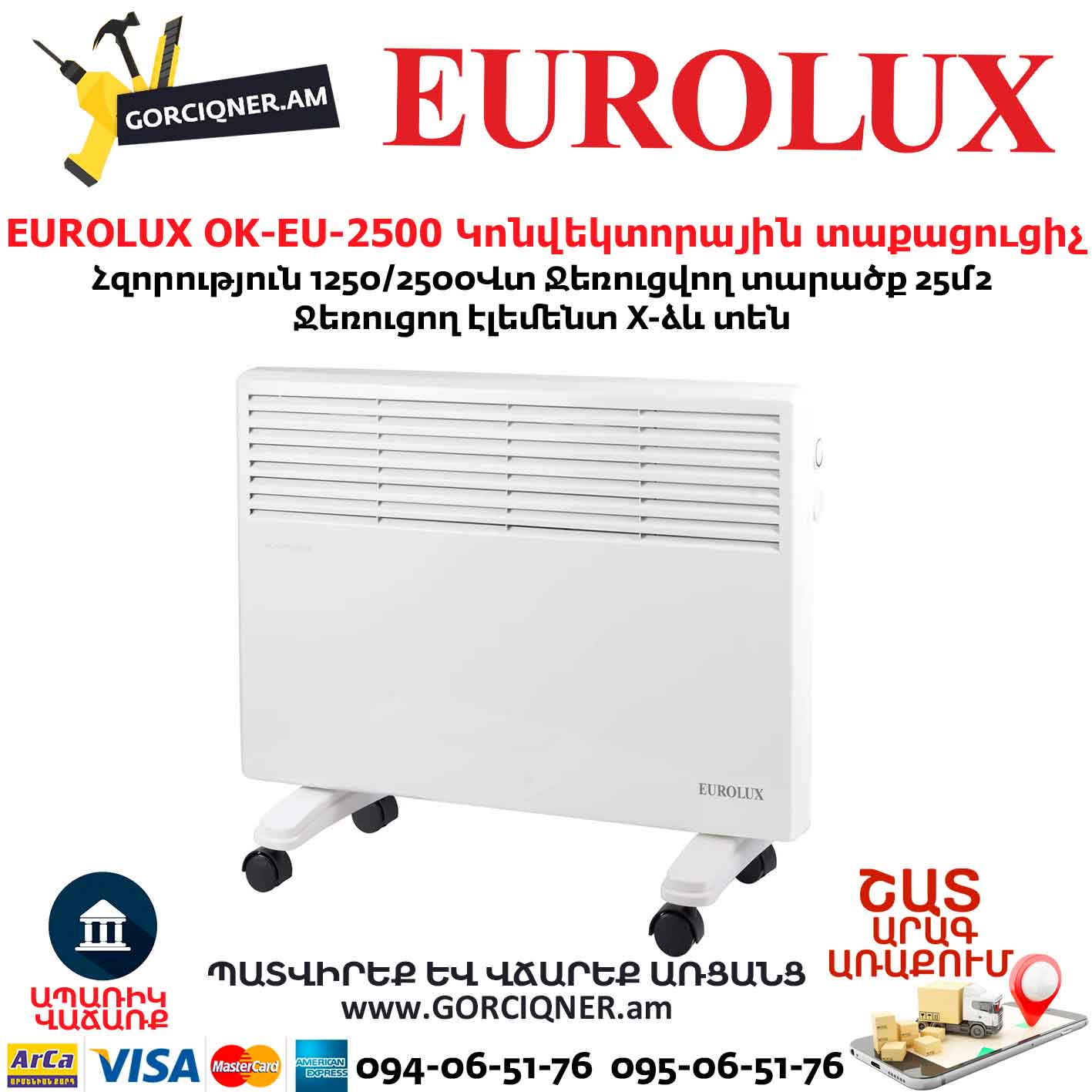 Отличительные особенности конвектора Eurolux OK-EU-2500: