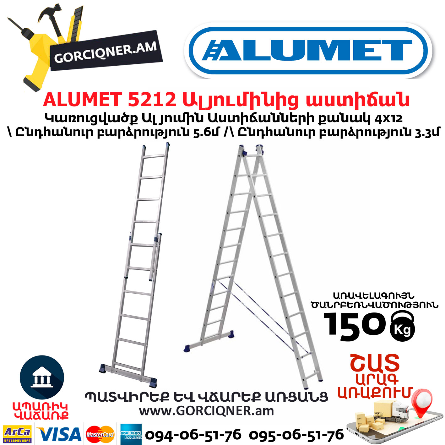 Алюминиевая двухсекционная лестница 5212 серии H2 представляет собой универсальную стремянку, состоящую из двух секций. Это – одна из самых востребованных на рынке моделей, которая сочетает в себе особенности и свойства приставной и раскладывающейся лестниц. Изделие хорошо подходит для выполнения самых разных работ – от ремонта и строительства до сбора урожая в саду или на даче. Широкий стабилизатор у основания и противоскользящие наконечники обеспечивают высокую устойчивость лестницы, модель в сложенном виде имеет длину 3.38 м и может раздвигаться до 5.62 метров, весит 11.8 кг, производитель дает гарантию на 12 месяцев. Каждая секция состоит из двух алюминиевых направляющих, соединенных между собой ступенями-перекладинами с рифленой поверхностью. В сложенном положении лестница удобна для перевозки любым транспортом и хранения в подсобном помещении. Основные характеристики изделия: