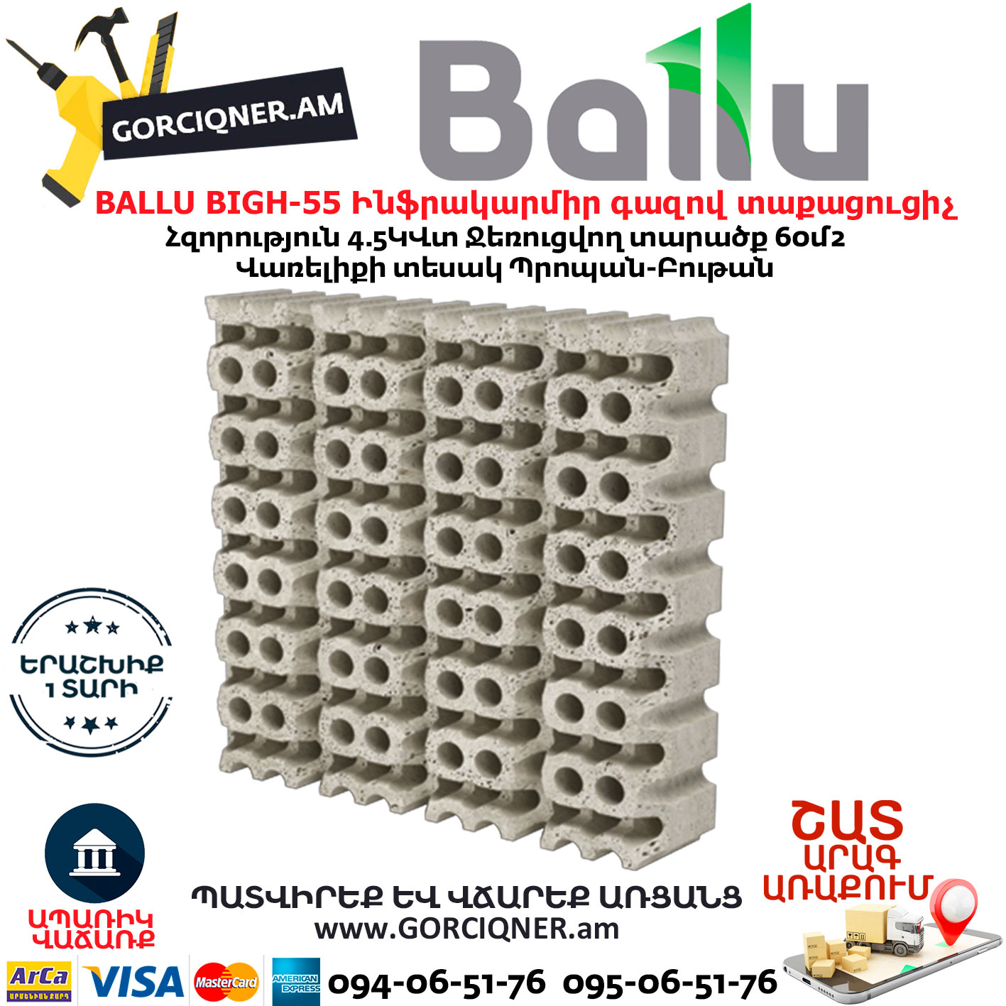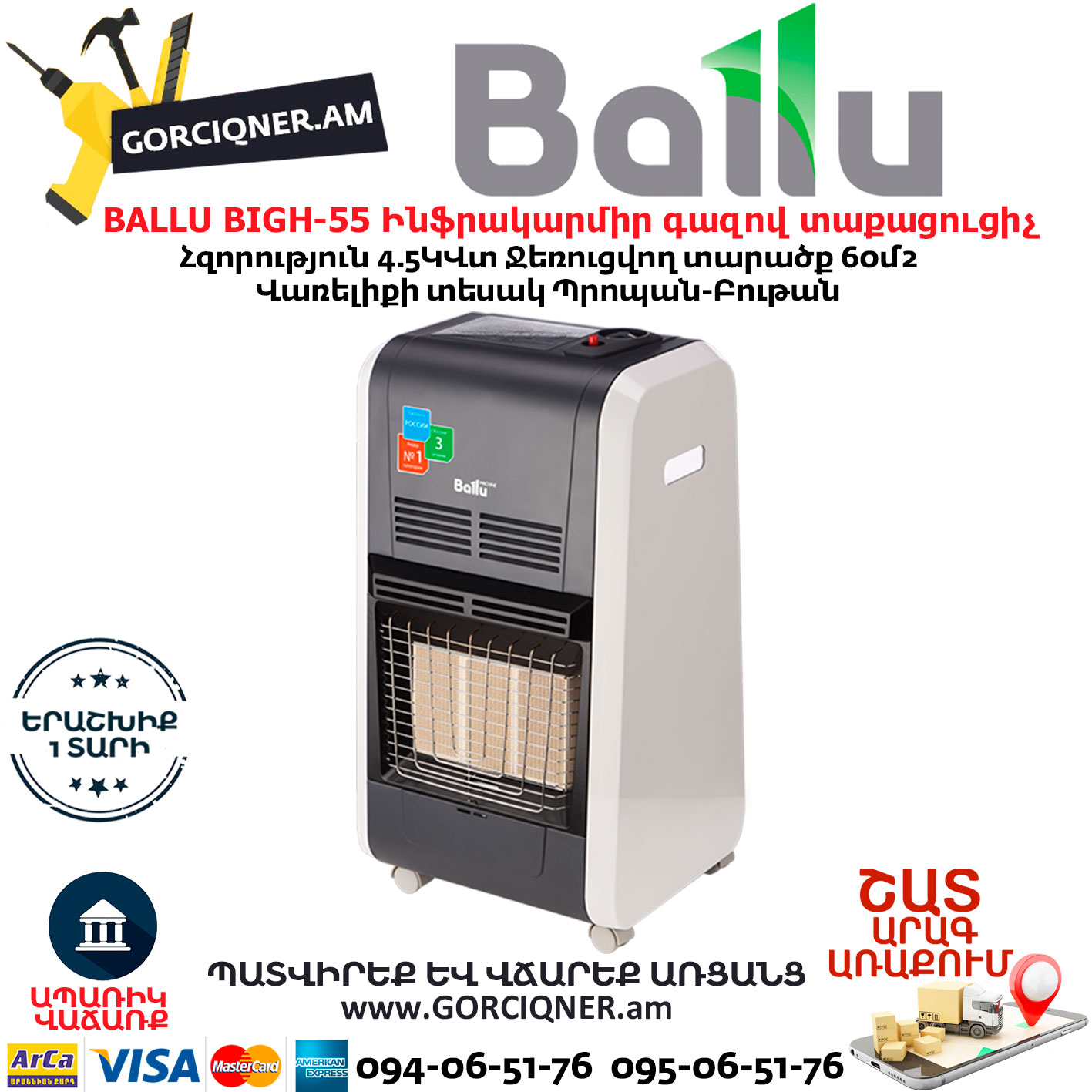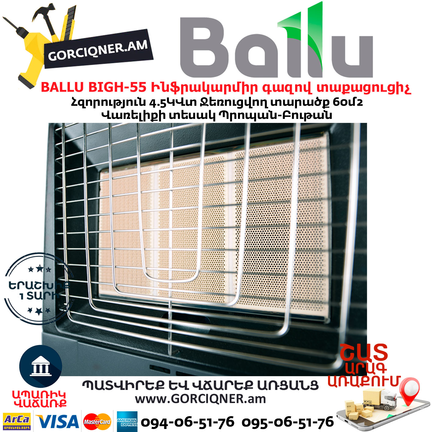 Газовый инфракрасный обогреватель Ballu BIGH-55 выпускается в России, не имеет аналогов на рынке по цене и качеству, а каждый прибор проходит 100% тестирование и проверку на утечки газа в лабораторных условиях.