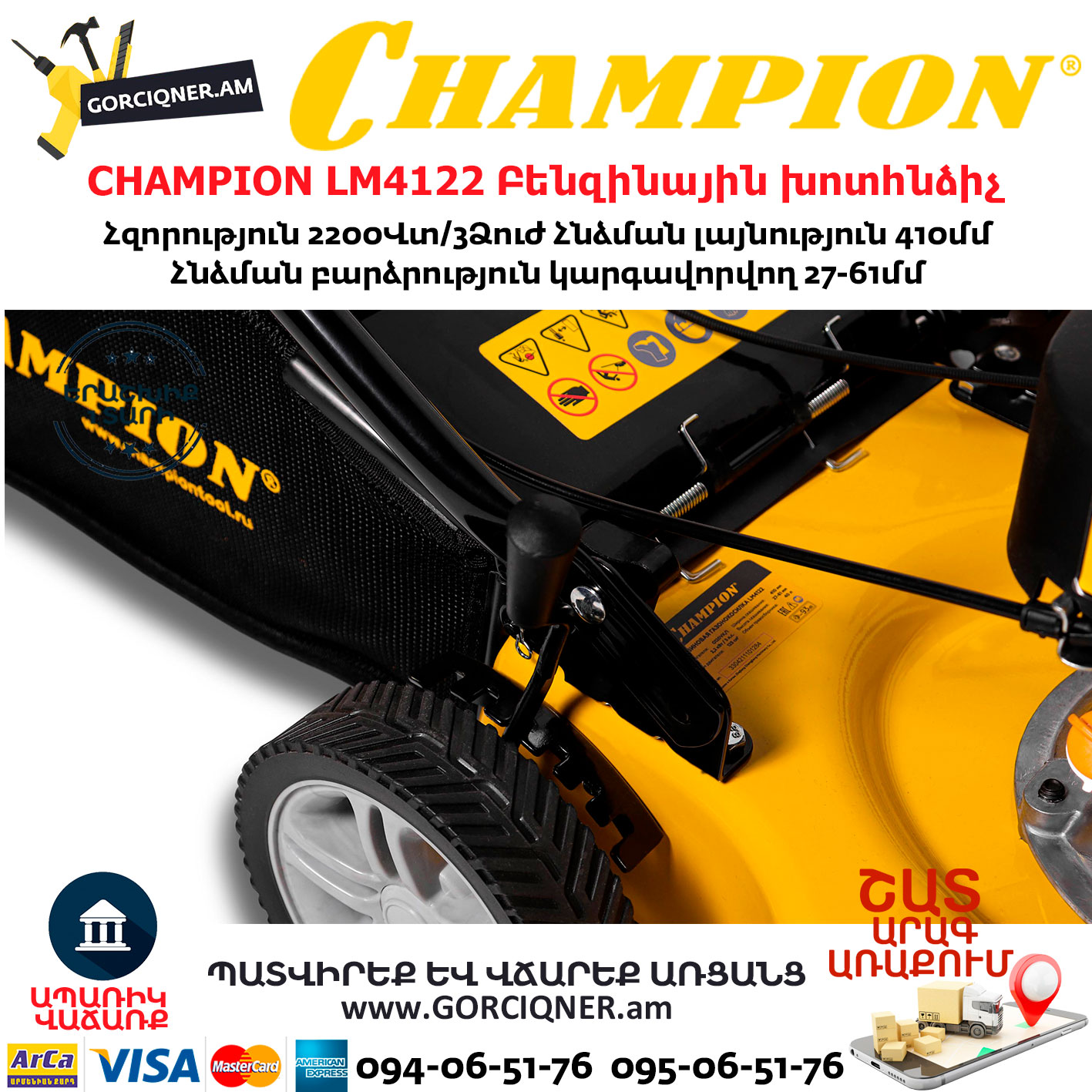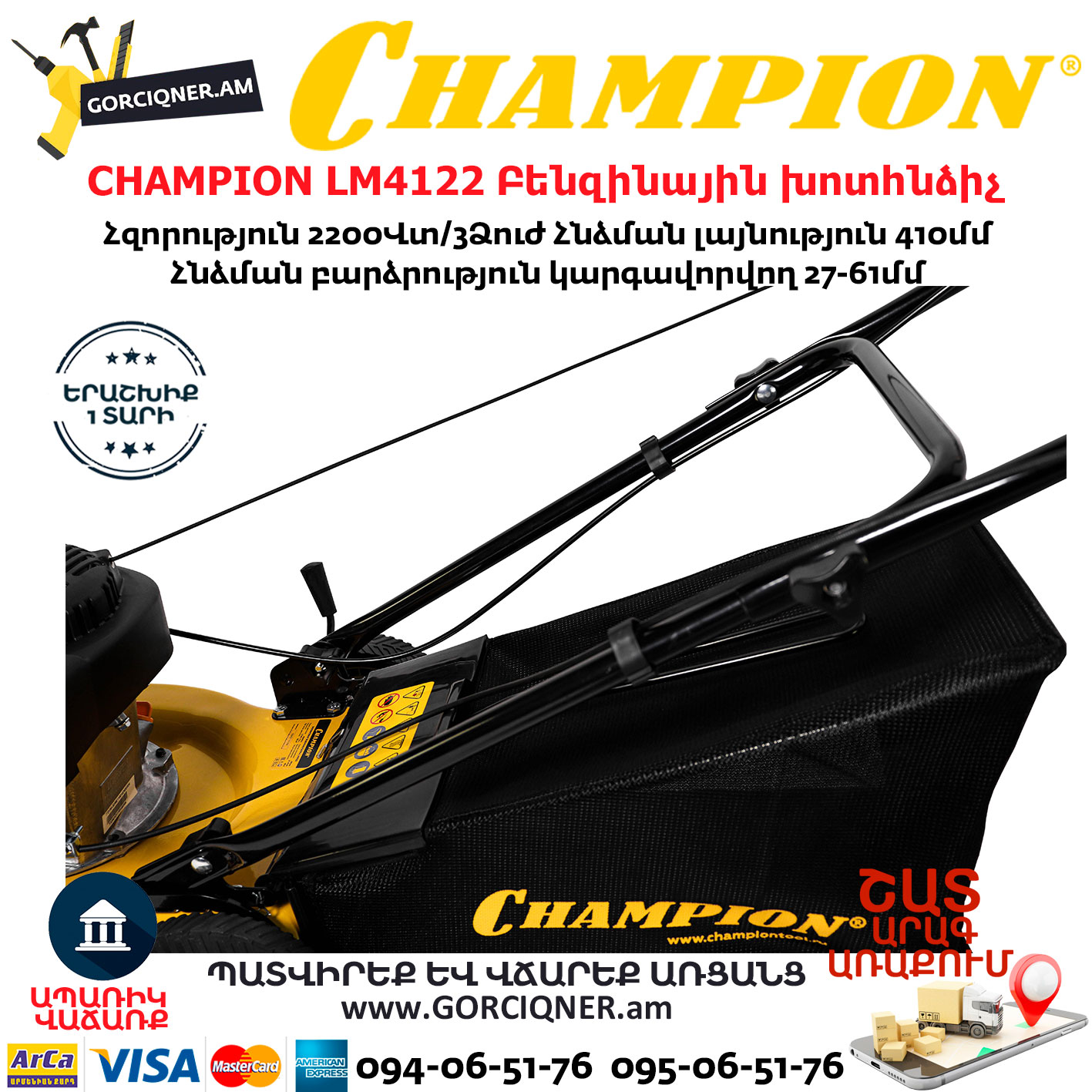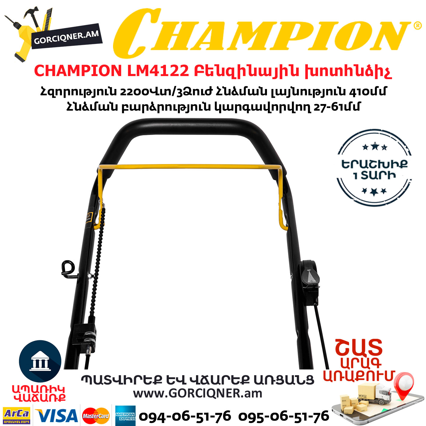 CHAMPION LM4122 Бензиновая газонокосилка 410мм/3л.с