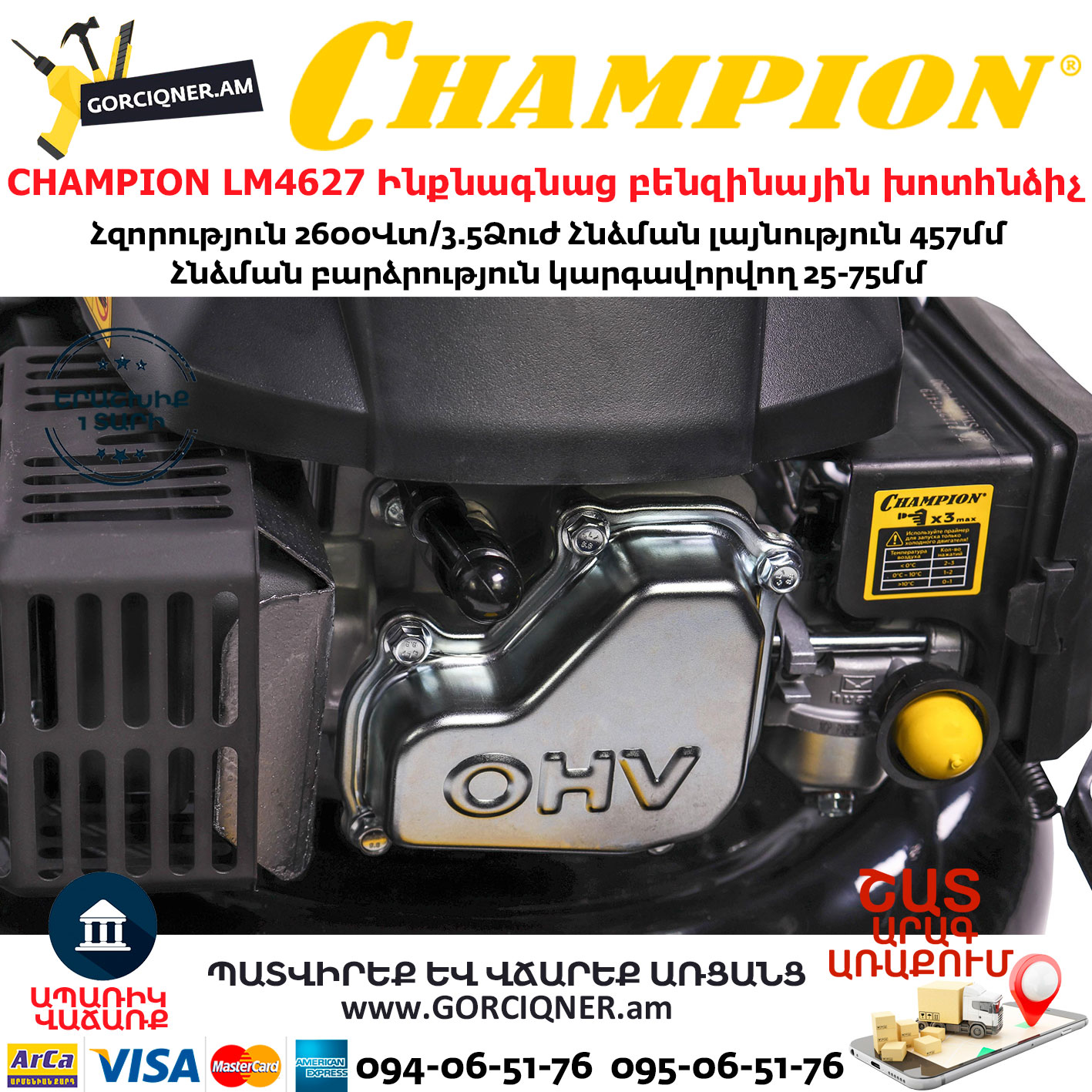 CHAMPION LM4627 Самоходная бензиновая газонокосилка 457мм/3,5л.с