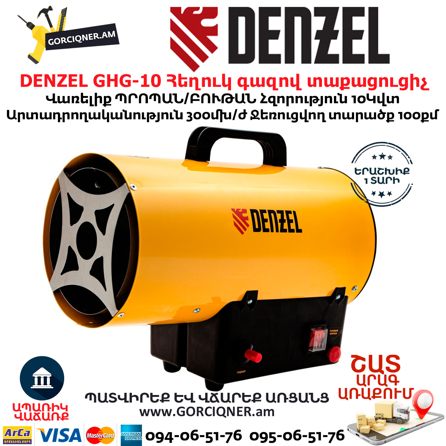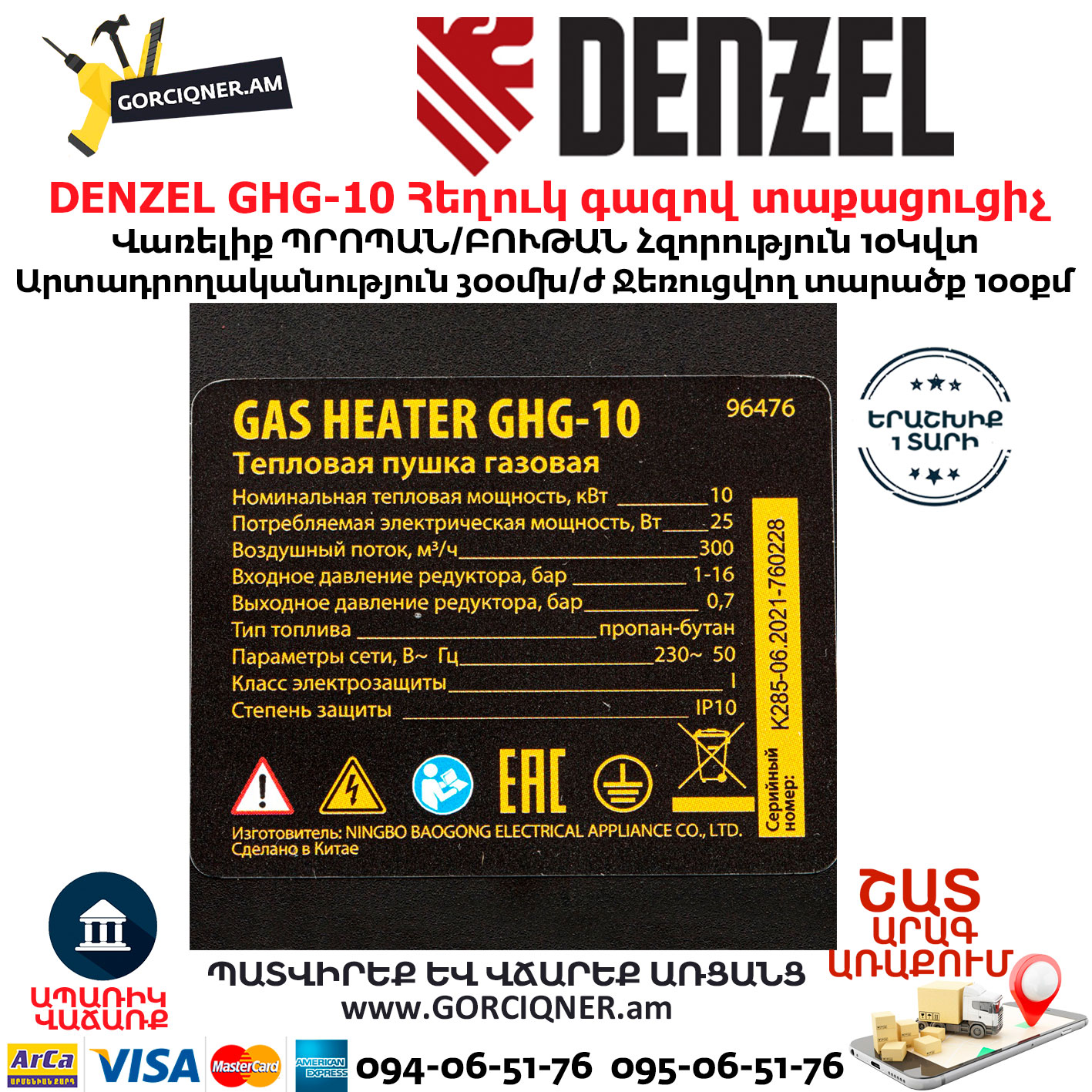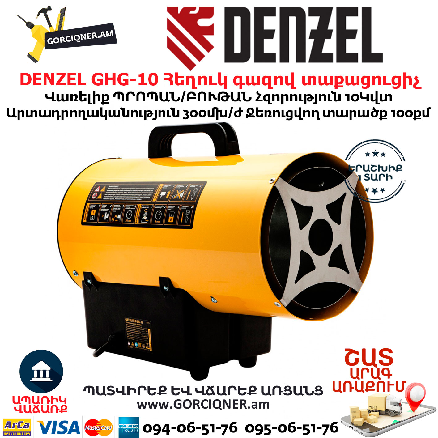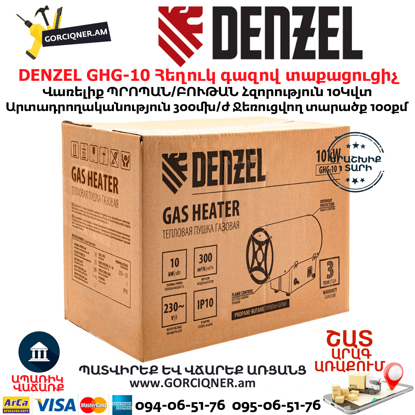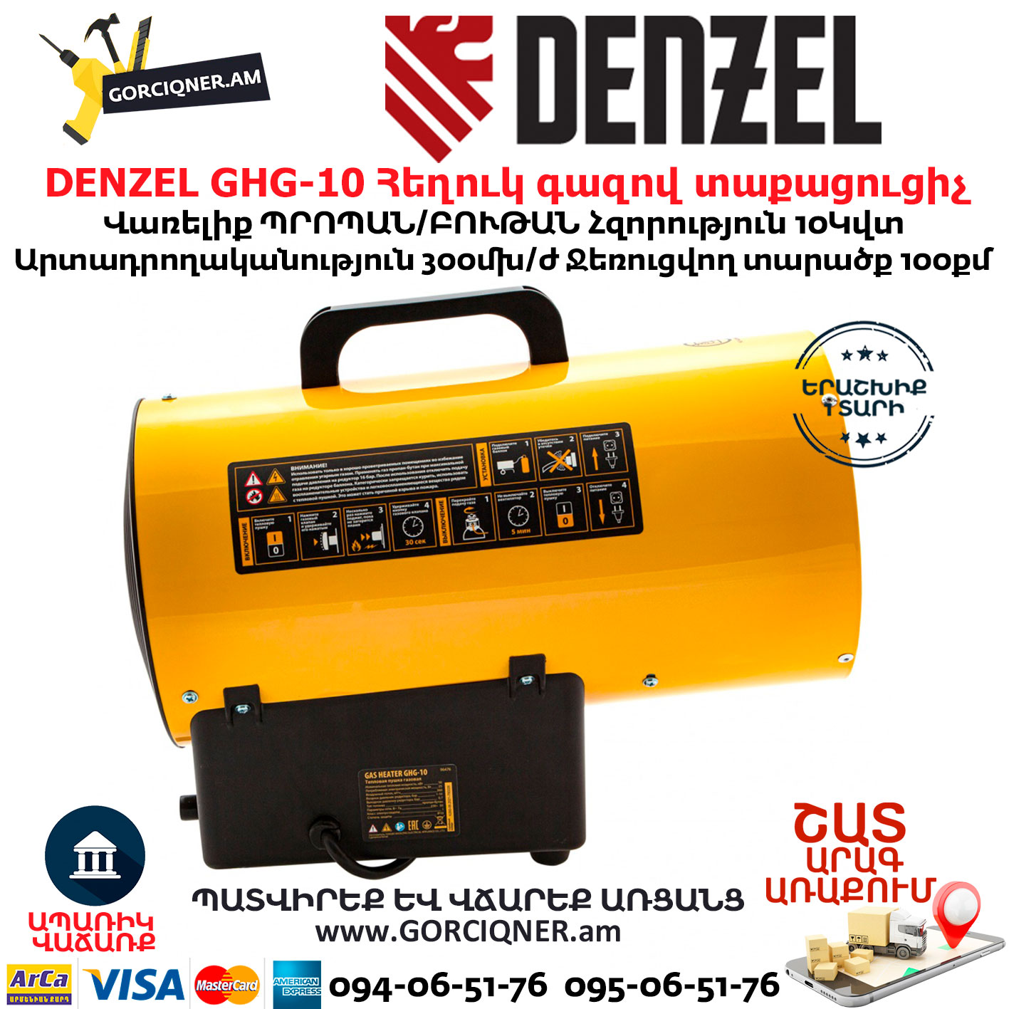 - Гарантия 3 года — качество газовой тепловой пушки подтверждено производителем.