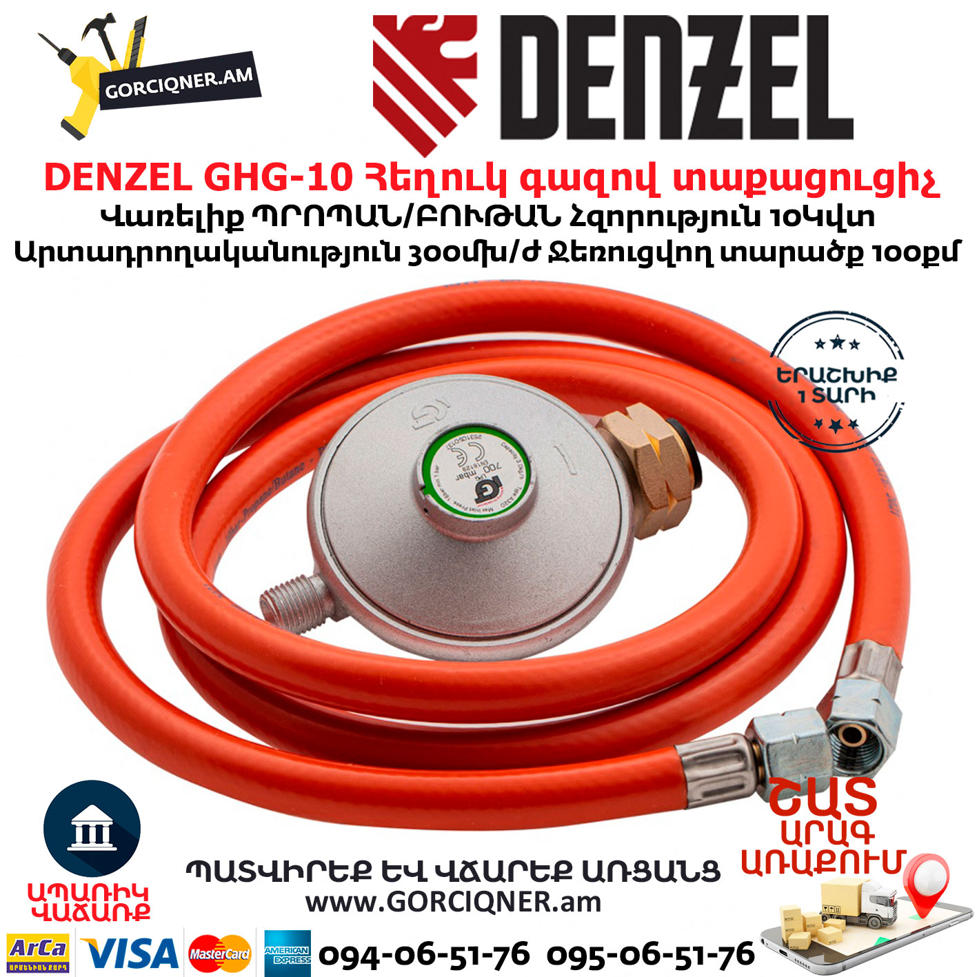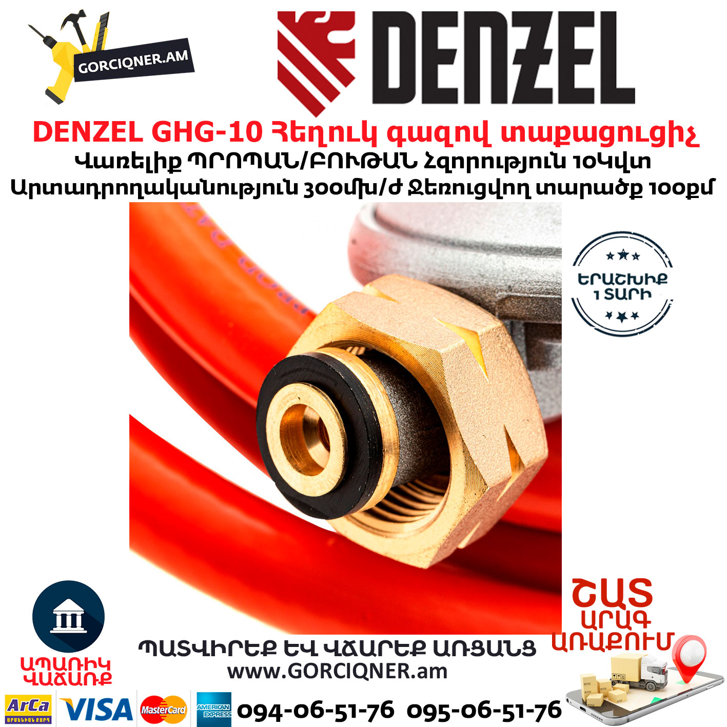 - Готовность к работе — сетевая вилка, газовый шланг и редуктор входят в комплект поставки.