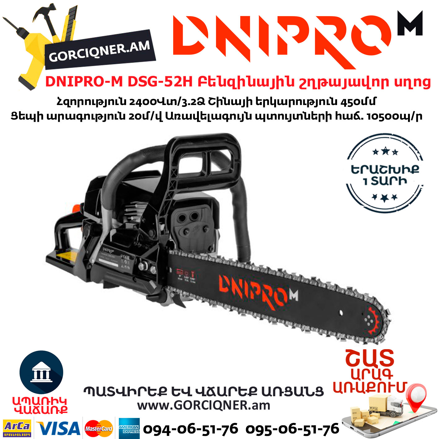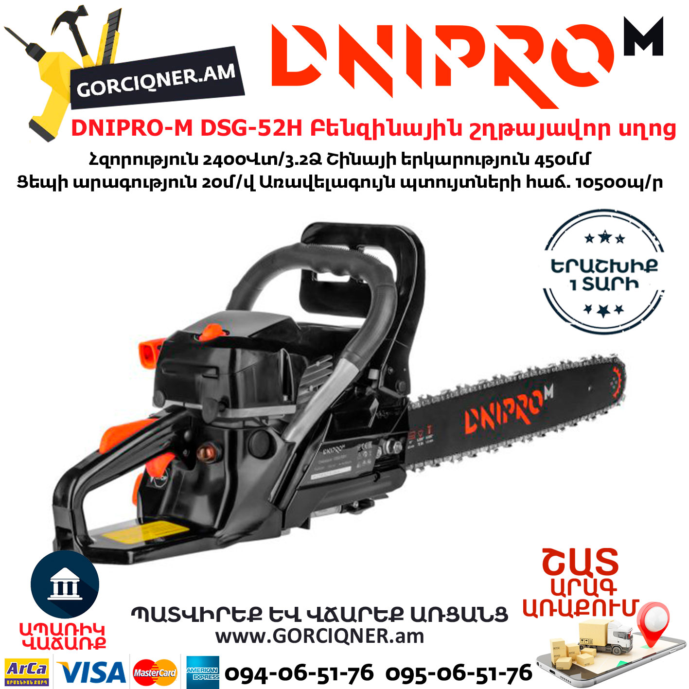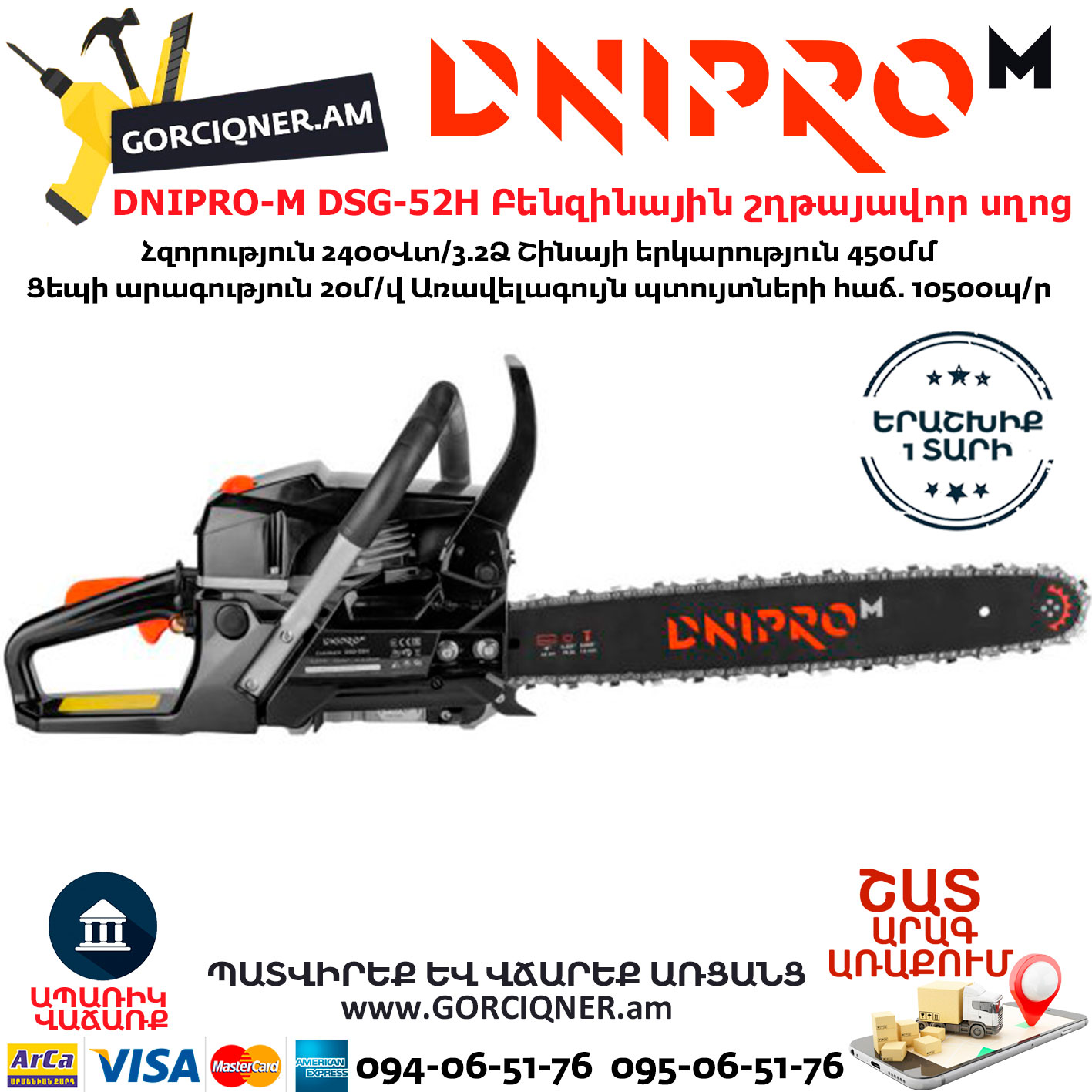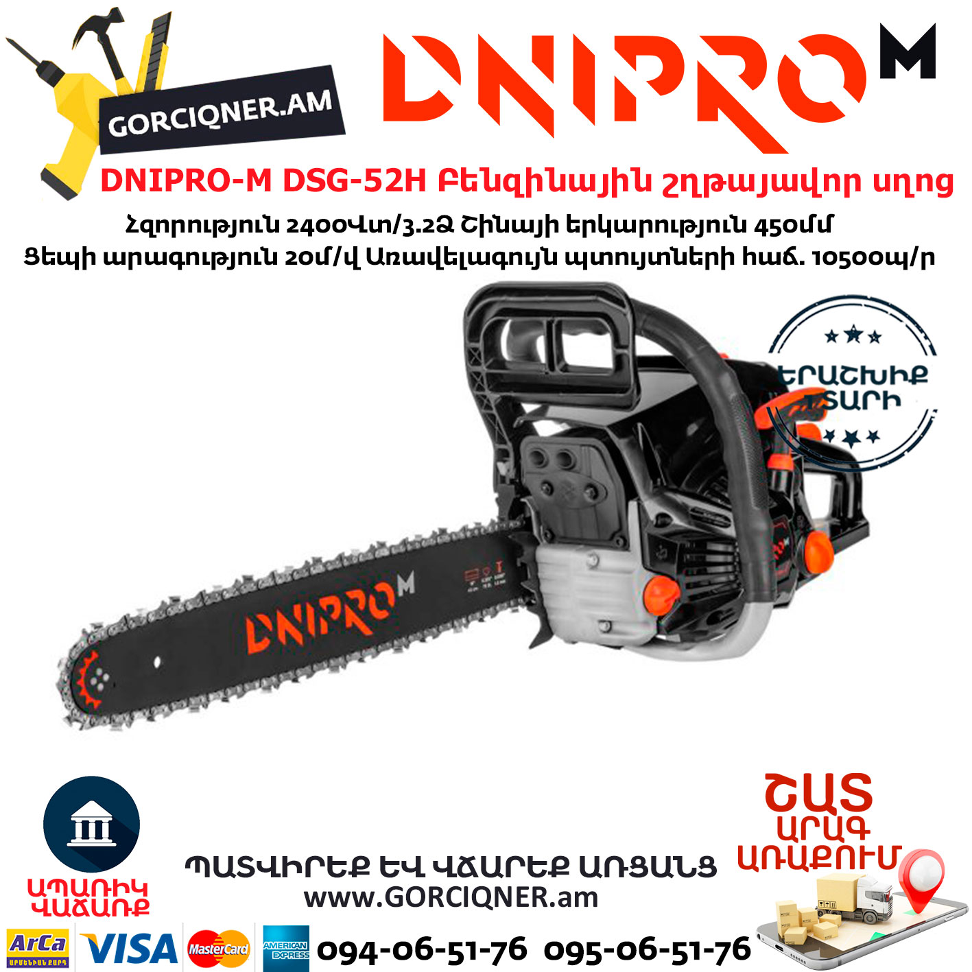 DNIPRO-M DSG-52H Бензопила цепная 45см/2400Вт