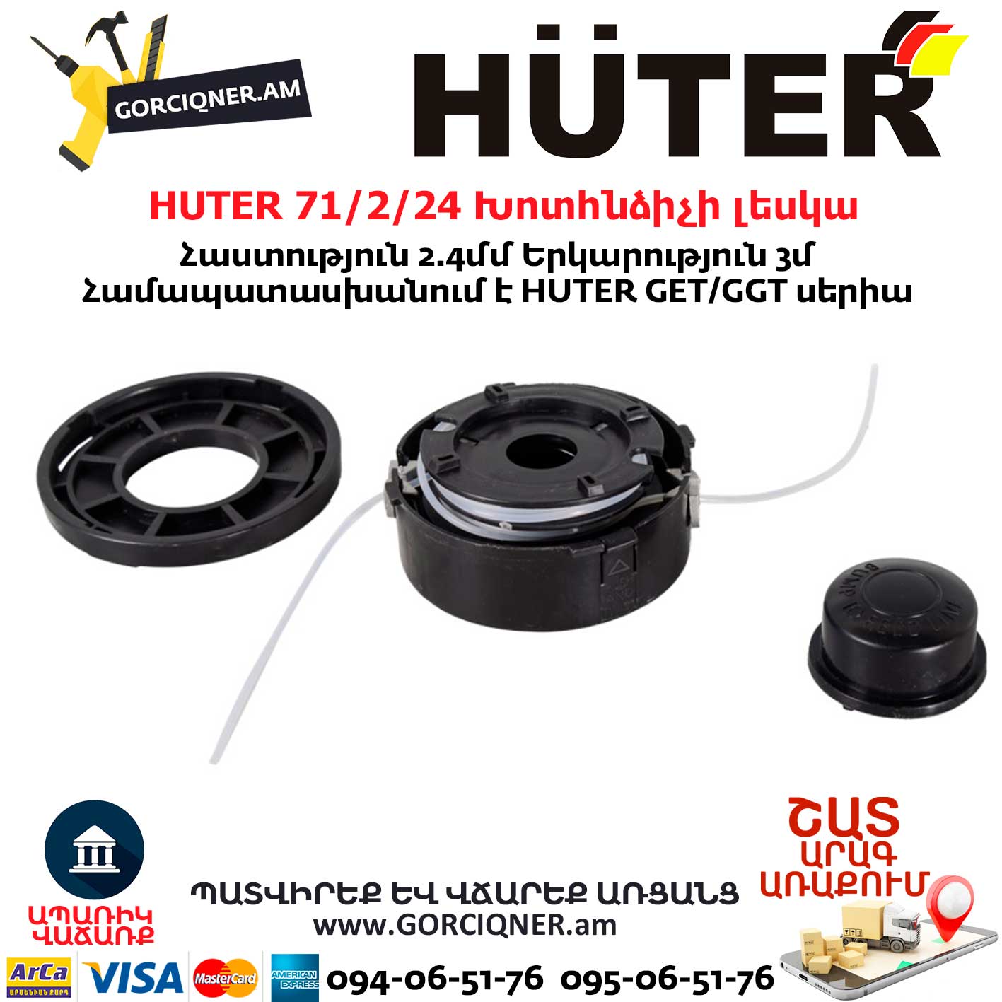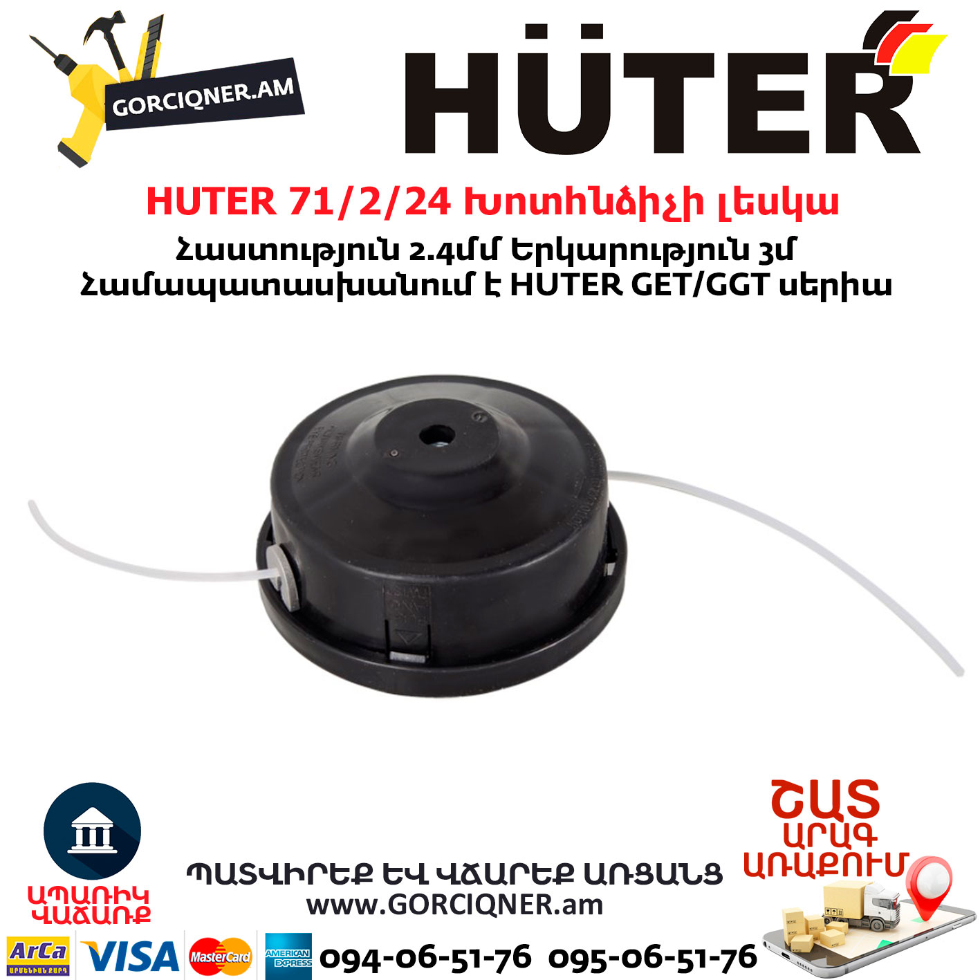 HUTER 71/2/24 Головка с леской 2.4мм