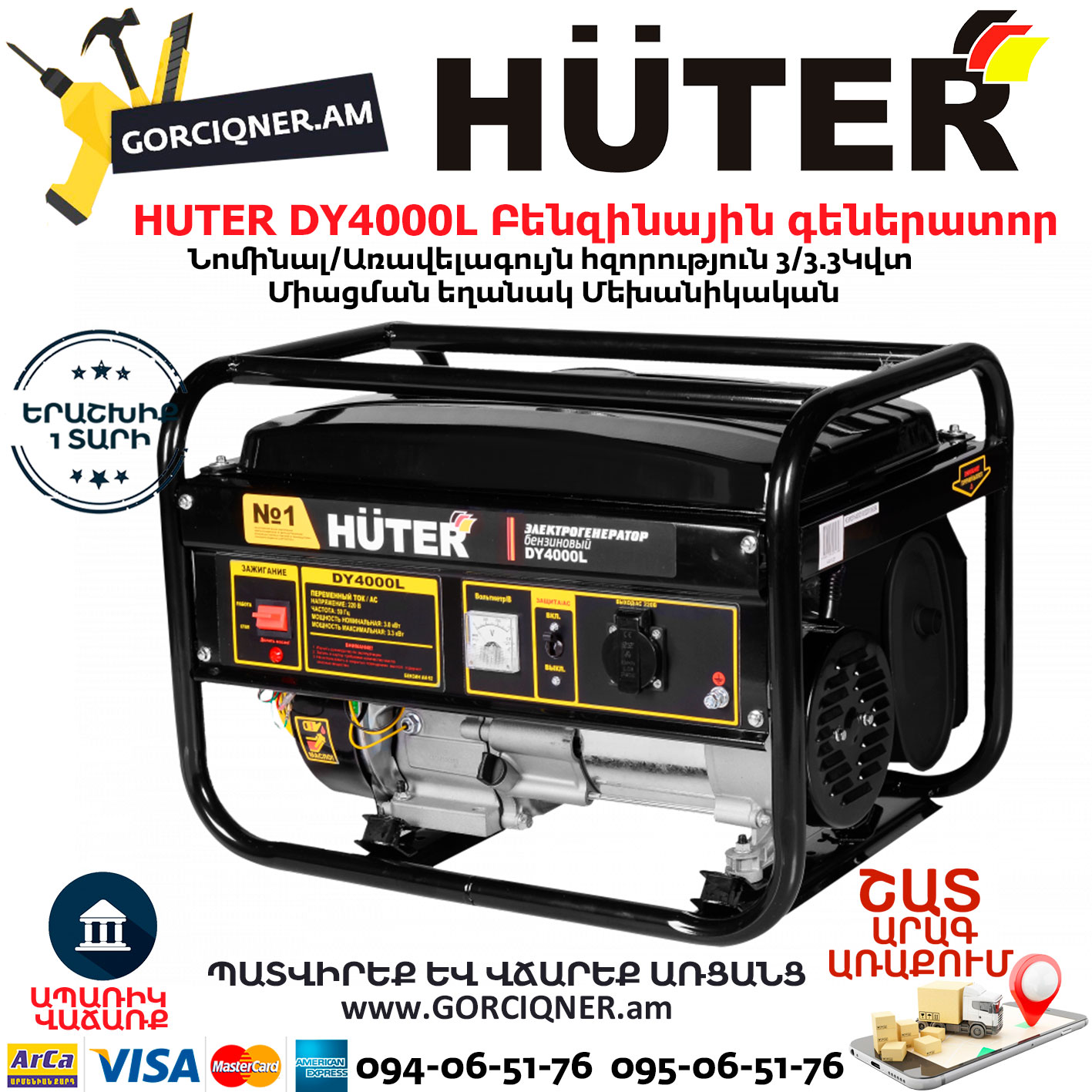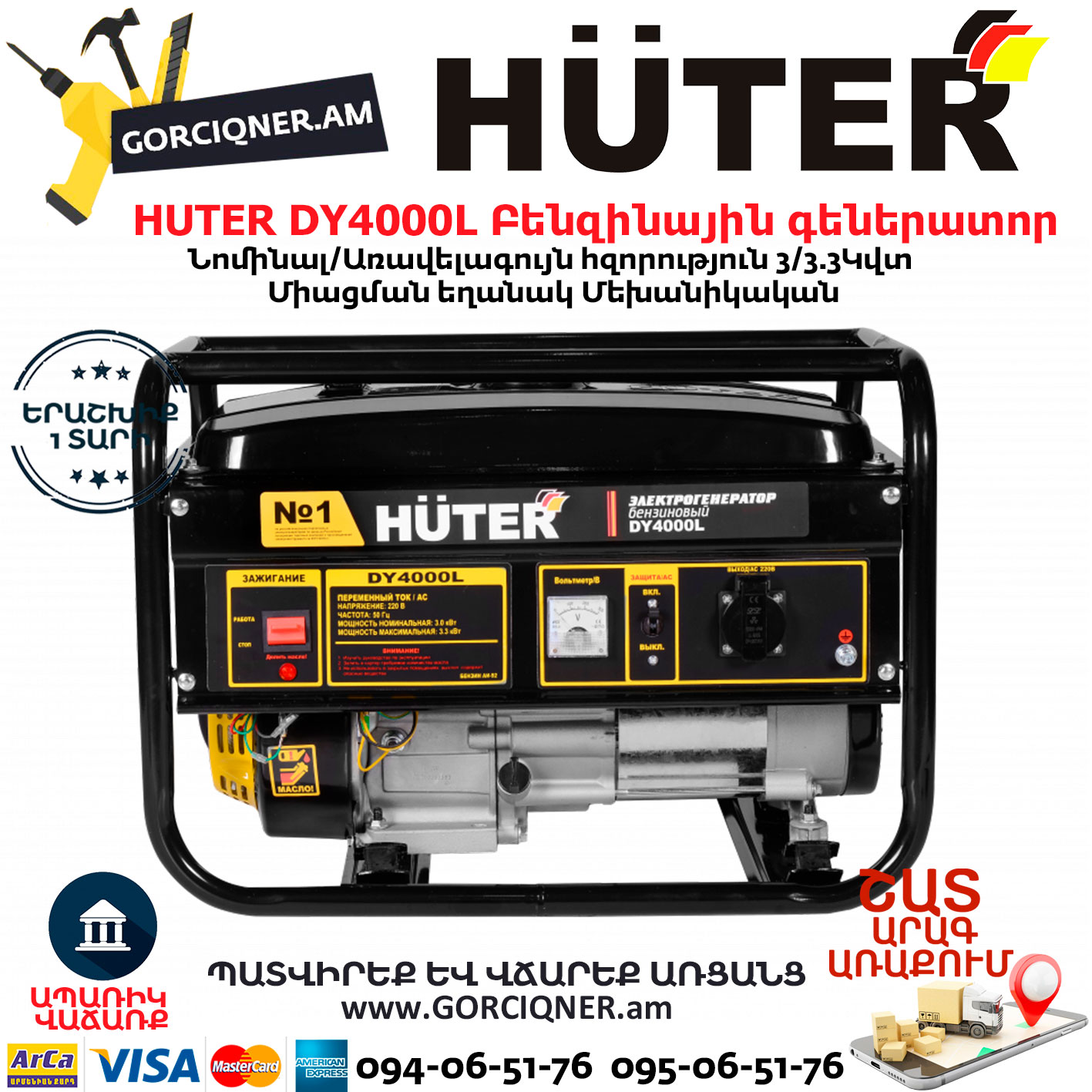 Электрогенератор (бензогенератор) – электрическая машина, предназначенная для автономного электроснабжения. В качестве первичного двигателя используется четырёхтактный карбюраторный двигатель, топливом для которого является неэтилированный бензин. Электрогенератор предназначен для получения электроэнергии в тех местах, где отсутствует магистральное электроснабжение. Это касается, как частных домов, где генераторы могут использоваться в качестве резервного источника питания, так и различных участков работ, где нужно электропитание для оборудования и проведения работ. Электрогенераторы HUTER много лет являются лидерами на российском рынке. Генераторы отличаются высоким качеством и надёжностью.