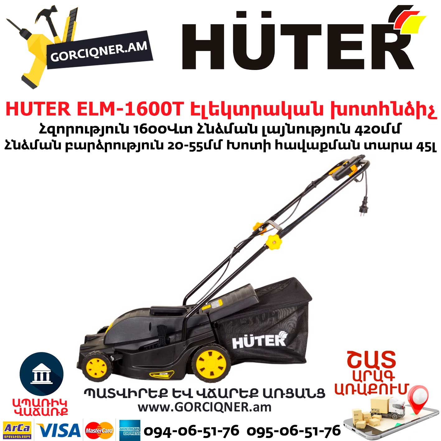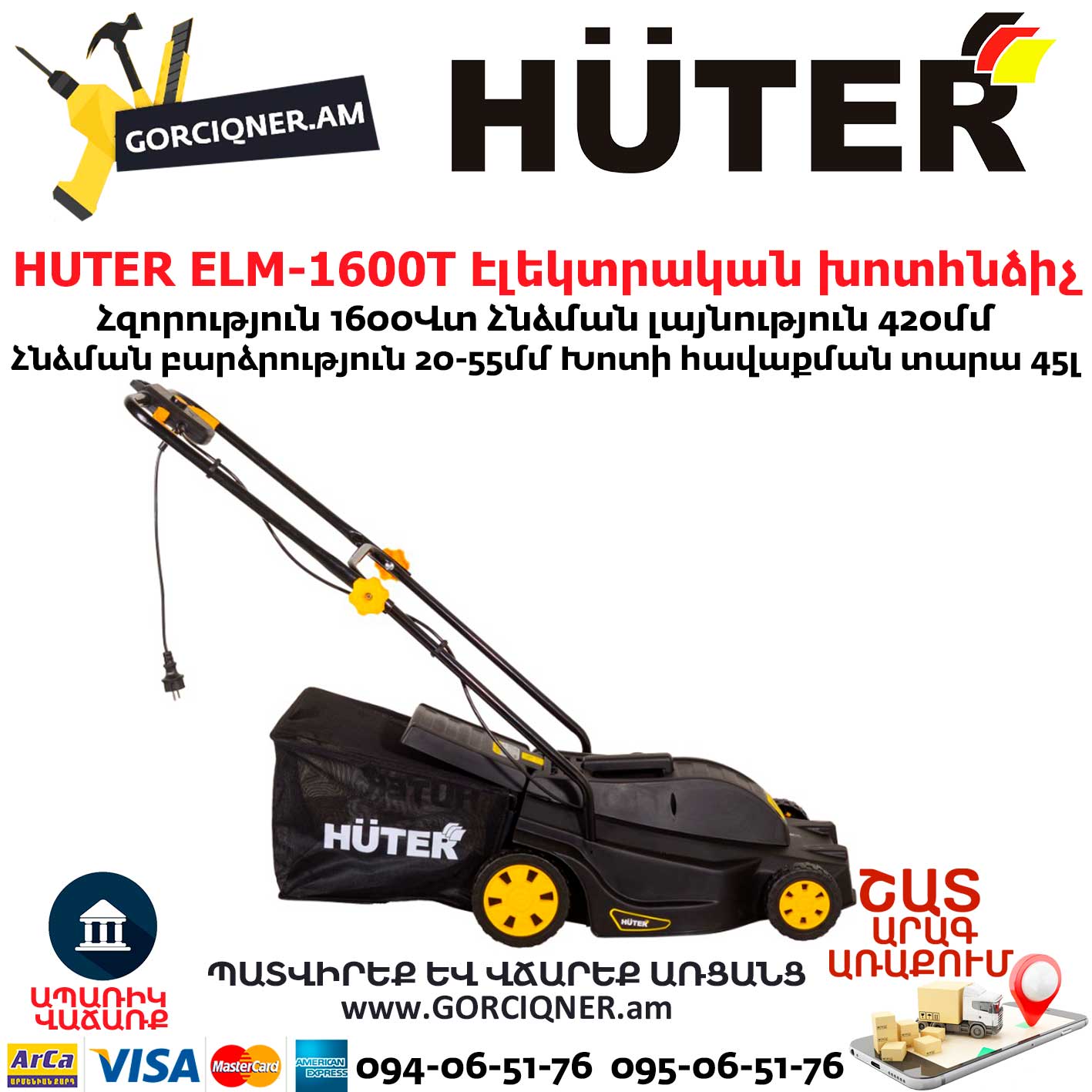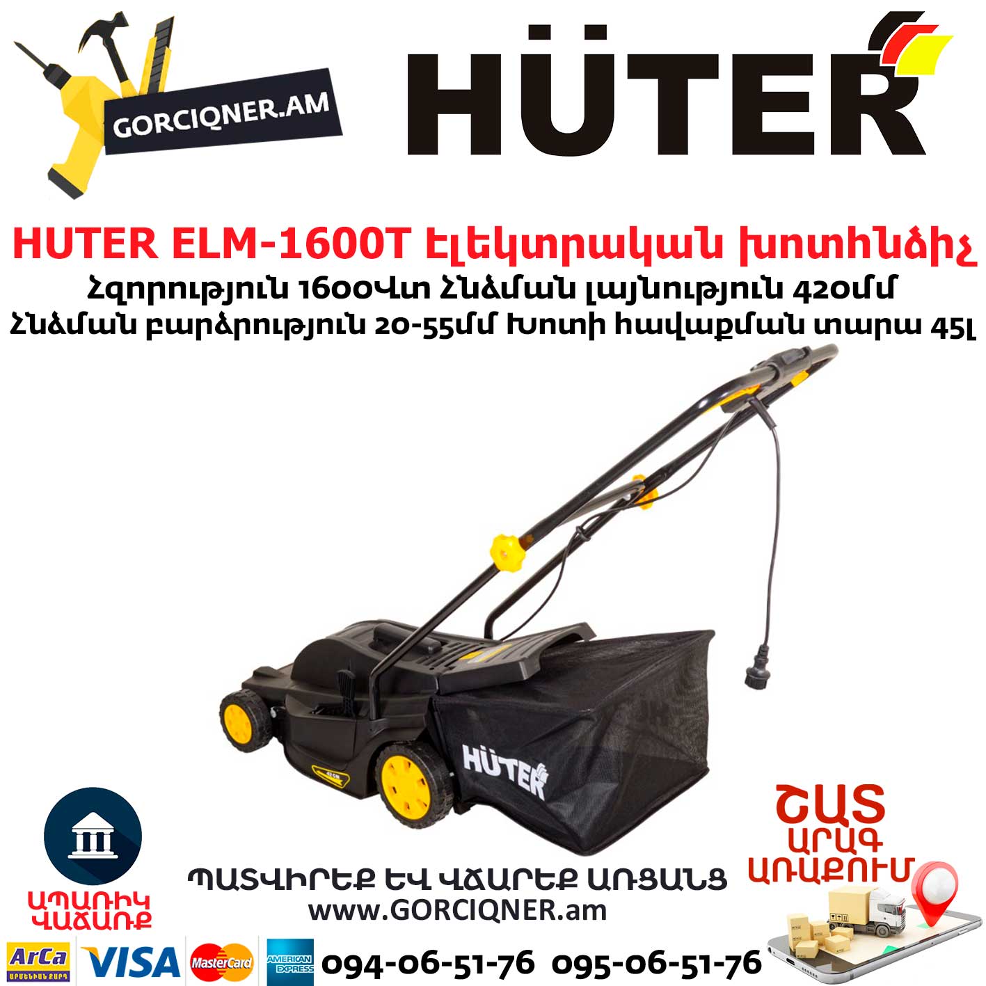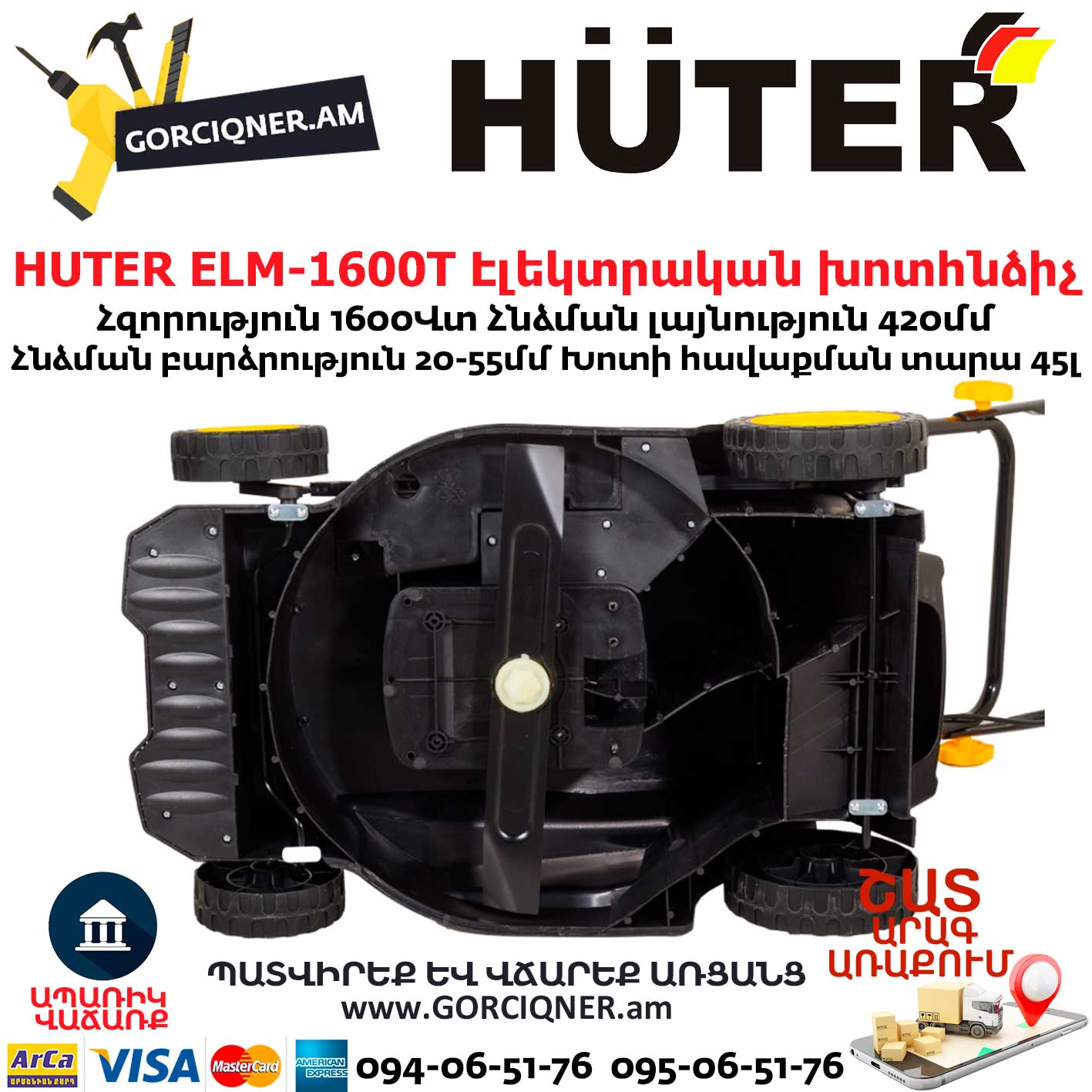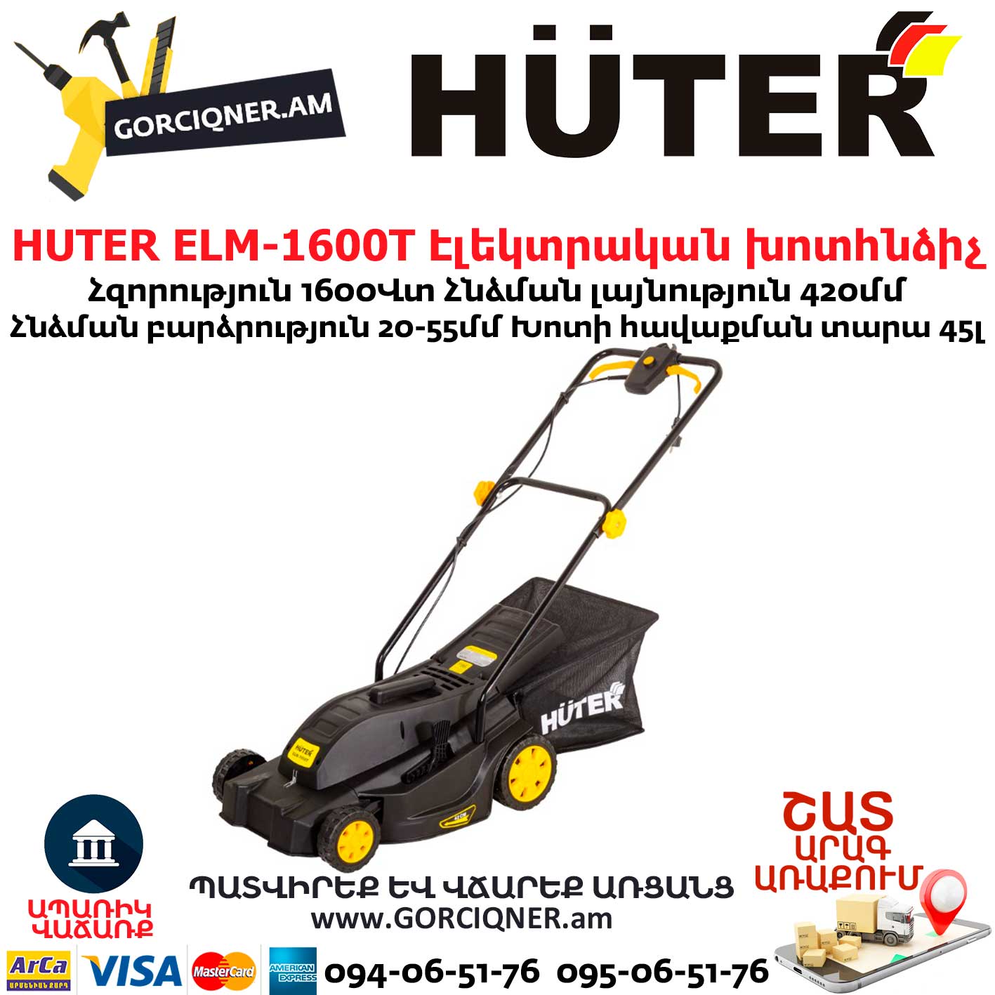 Газонокосилка электрическая Huter ELM-1600T предназначена для кошения газонов на небольших участках земли.