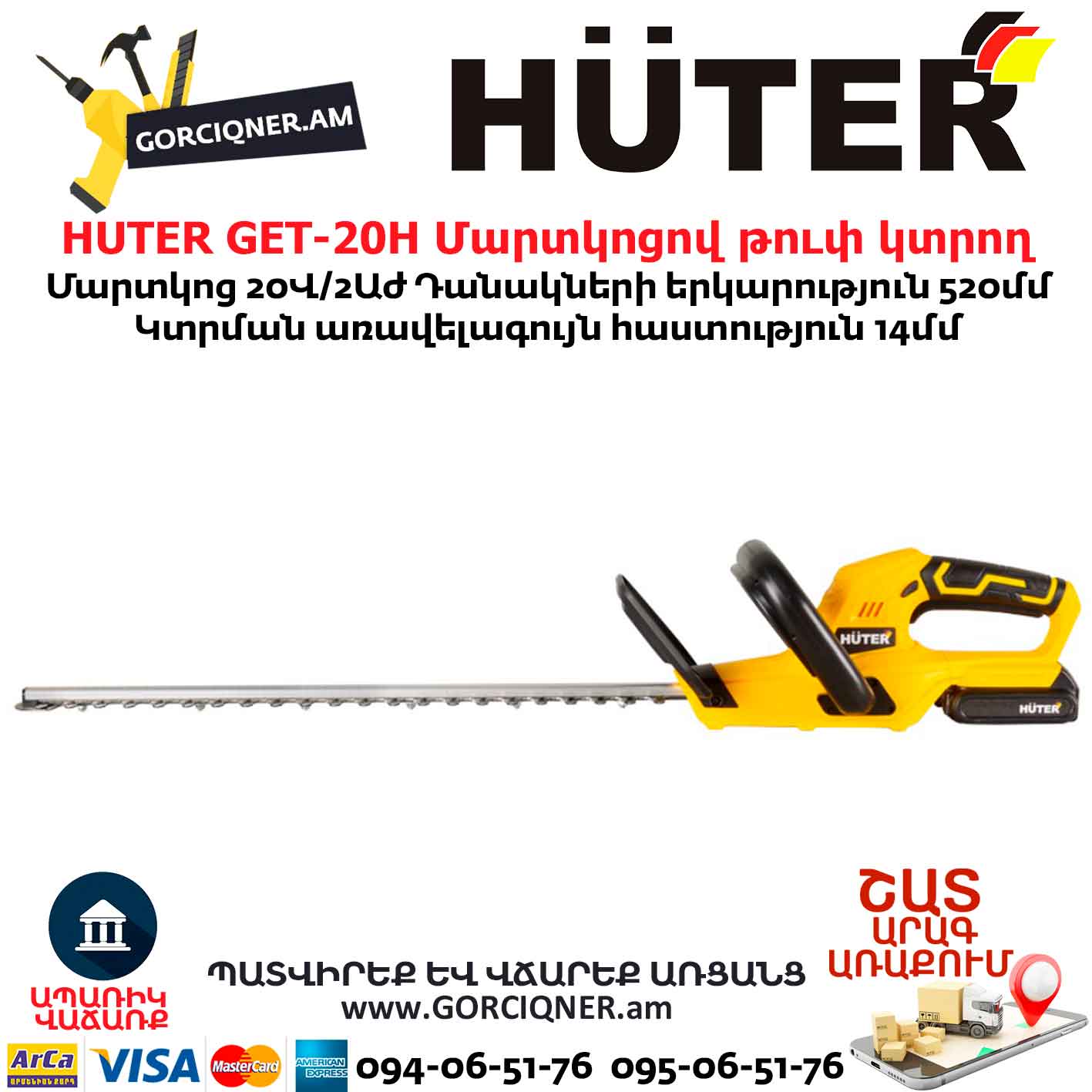HUTER GET-20H Аккумуляторный триммер-кусторез 52см/20В