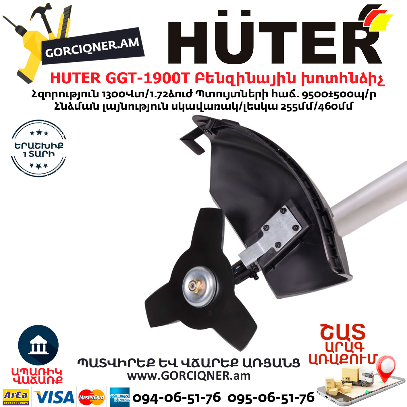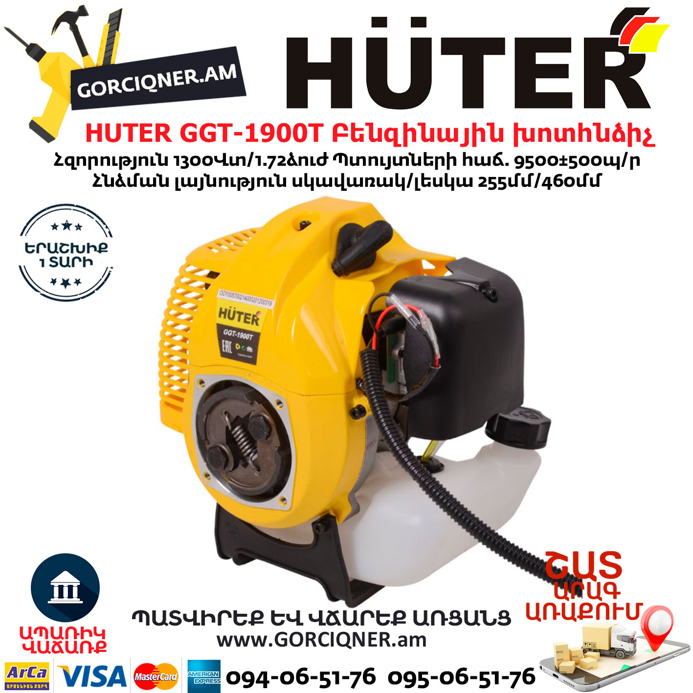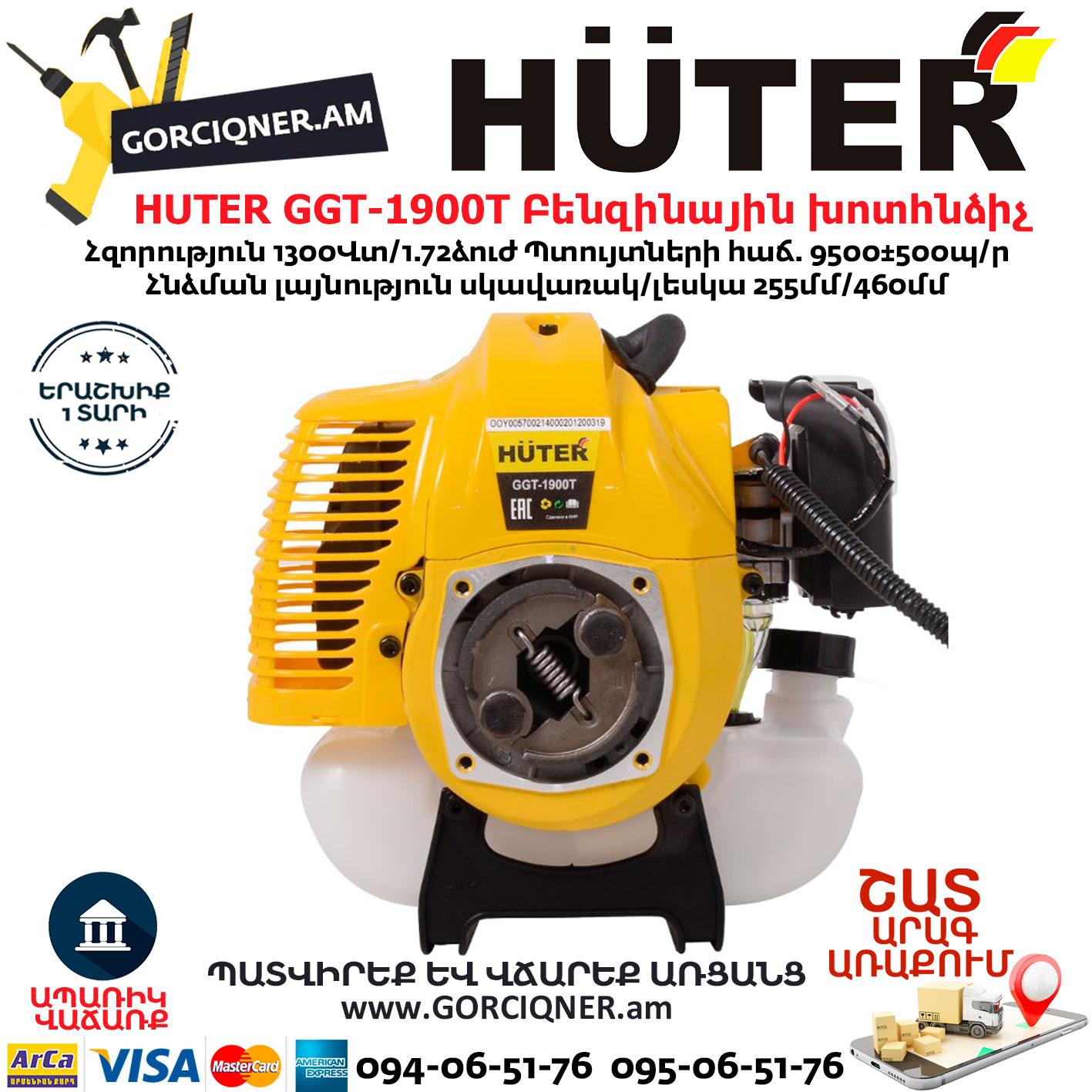 Бензиновый триммер HUTER GGT-1900T – оптимальный вариант для приусадебного участка. Это модель средней мощности (1900 Вт), которая отлично справляется с высокой травой и молодой порослью на даче. Благодаря двухтактному бензиновому двигателю триммер может работать полностью автономно, не привязываясь к сети. Полупрозрачный бак с топливом позволяет следить за его количеством. Топливная смесь состоит из бензина и специального масла для двухтактных двигателей. Пропорция указывается производителем масла.