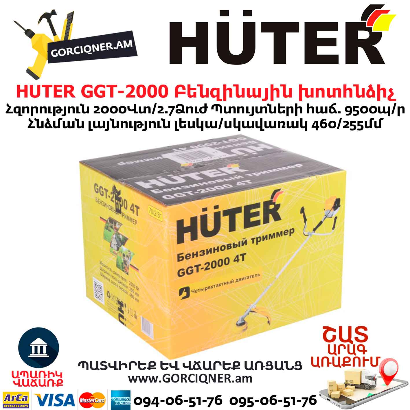 Легкий бензиновый триммер HUTER GGT-2000 4T оснащен четырехтактным двигателем мощностью 2,7 л.с, с воздушным охлаждением.