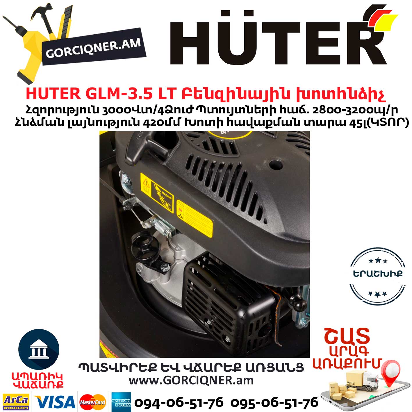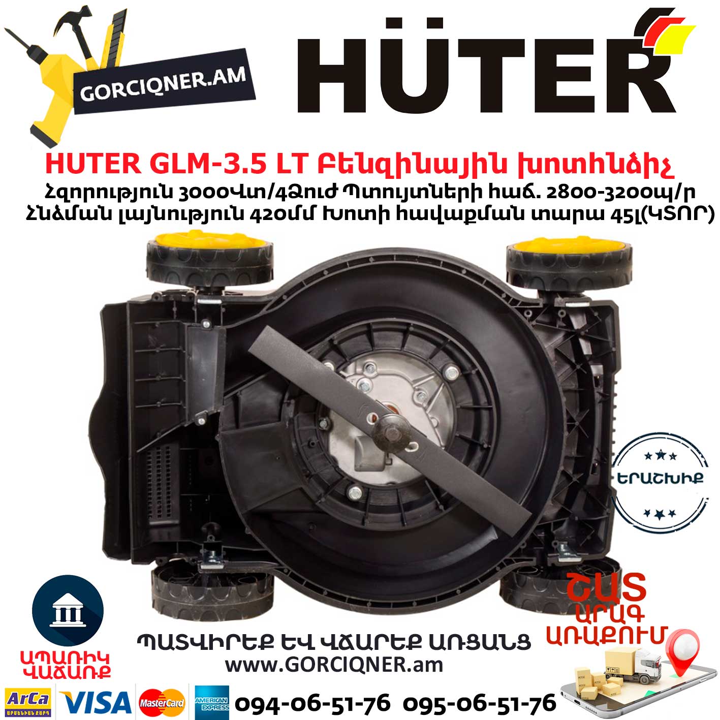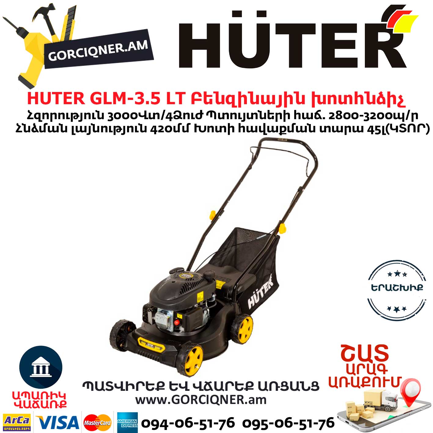 Бензиновая газонокосилка Huter GLM-3.5 LT аккуратно подстрижёт газон на небольшой и средней площади. Аппарат работает от четырехтактного бензинового двигателя мощностью 4 л.с. с воздушным охлаждением. Для полной заправки бака достаточно 1 литра бензина АИ-92.