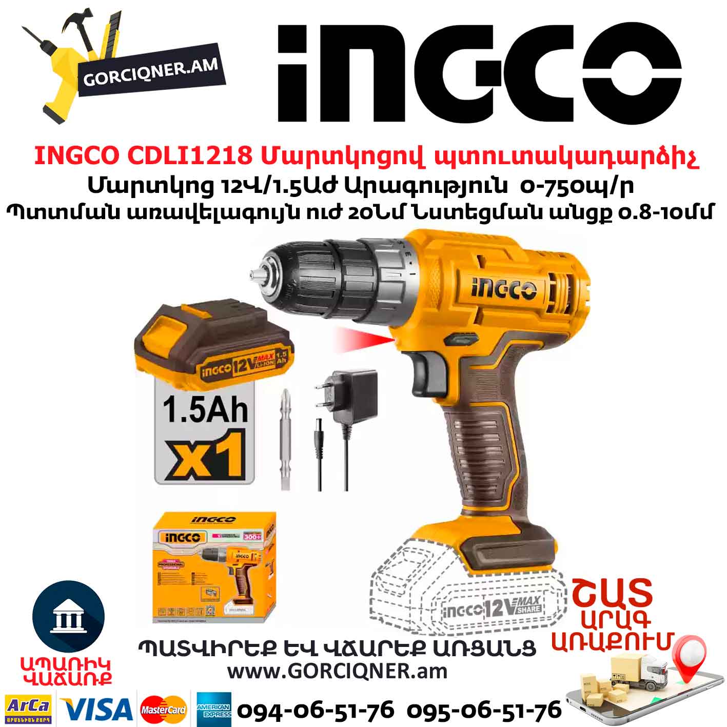INGCO CDLI1218 Аккумуляторный шуруповерт 12В