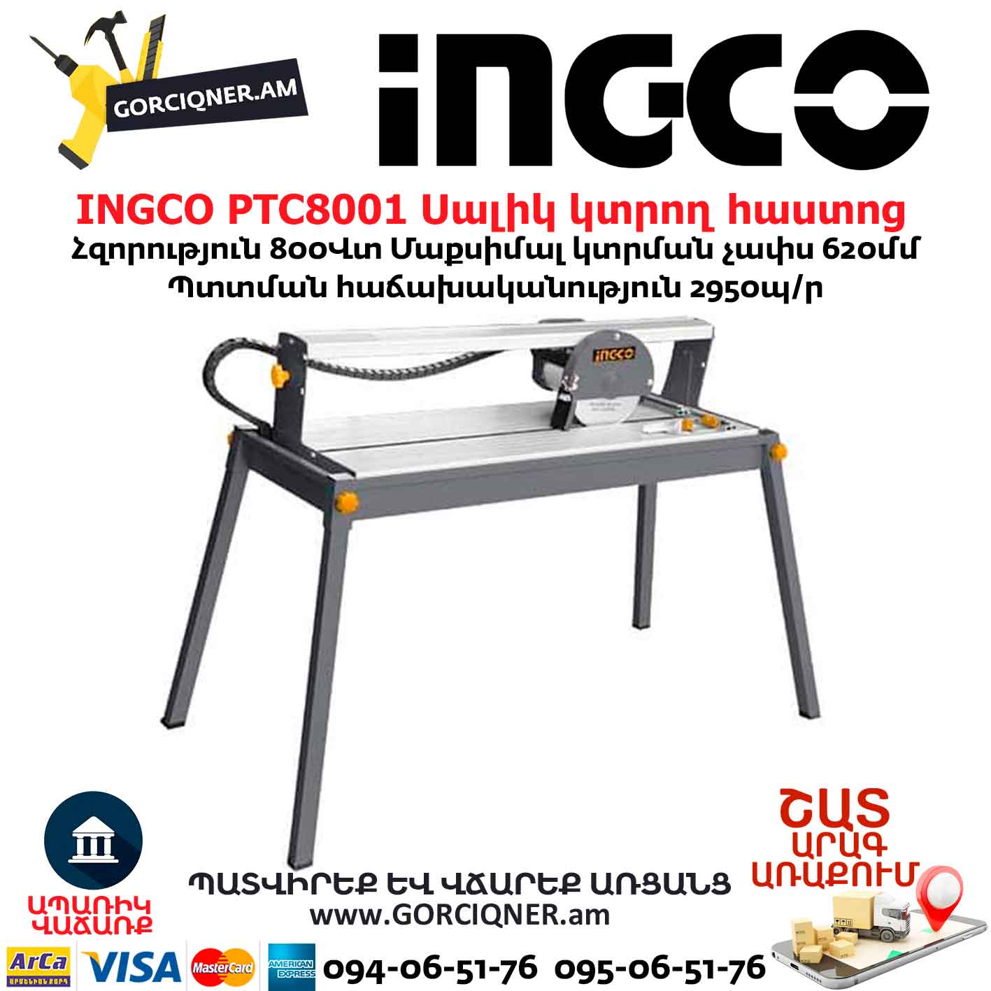 INGCO PTC8001 Станок для резки плитки 620мм/800Вт