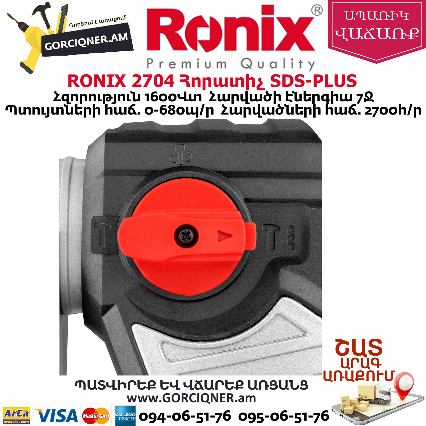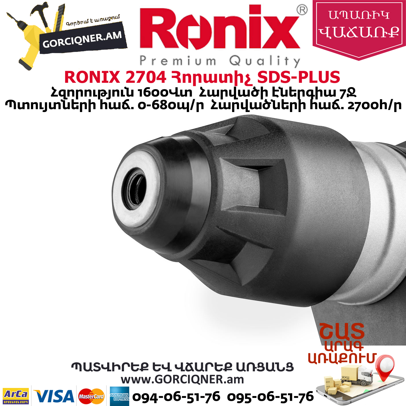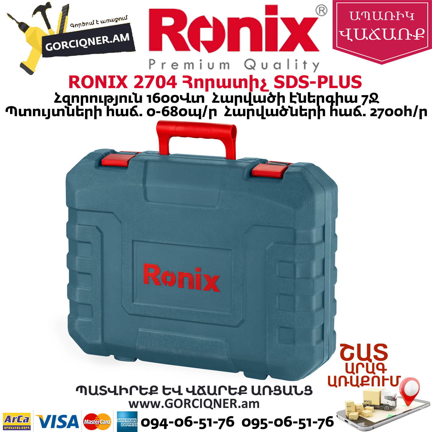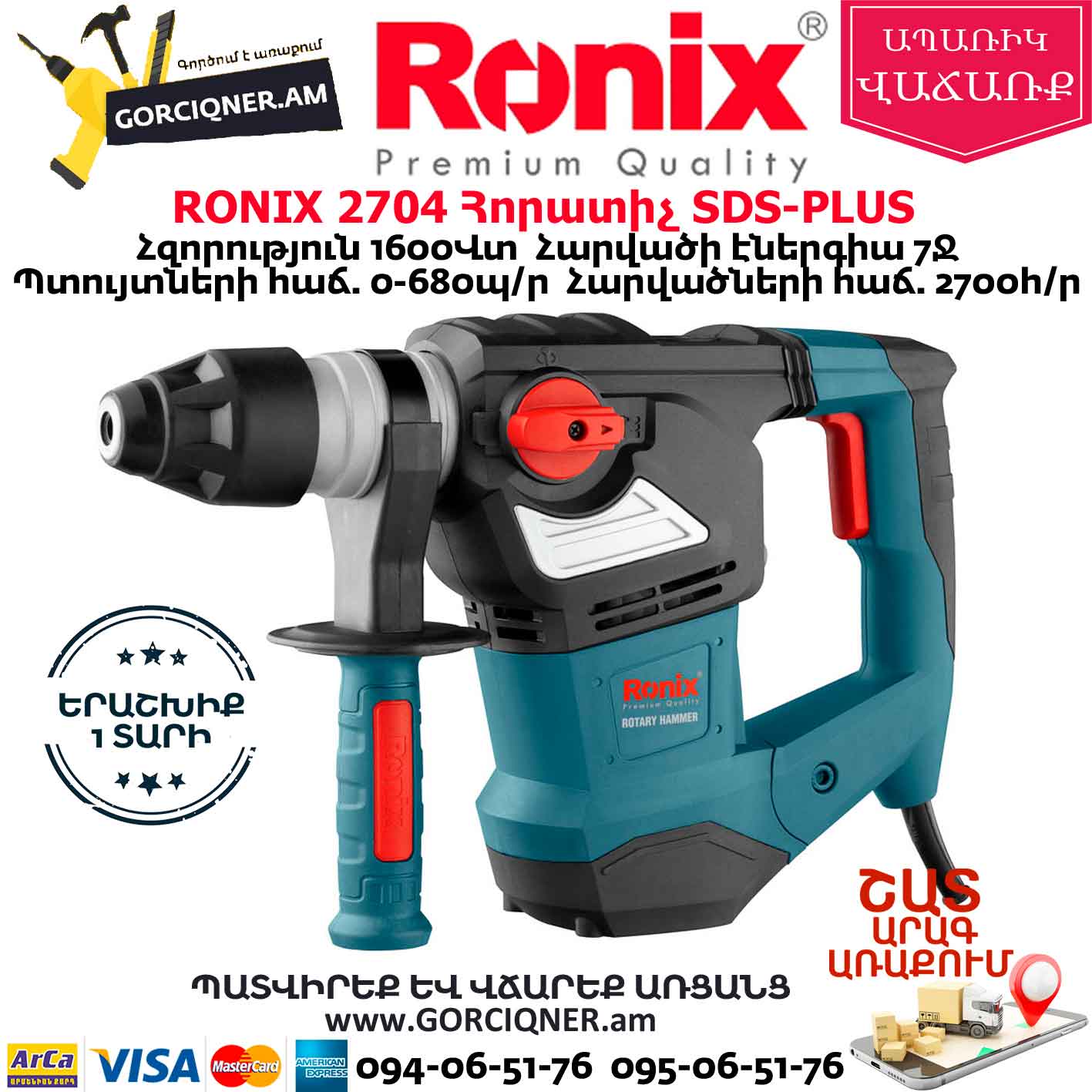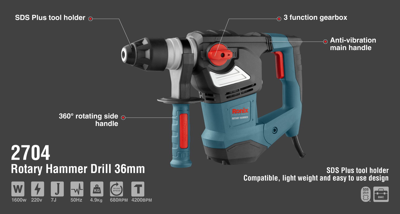 Включает в себя Смазка для бура, резиновый защитный колпачок, гаечный ключ, Пика 14 × 250 мм, Долото 14 × 250 мм,Бур Ø 8 × 150 мм,Бур Ø 10 × 150 мм,Бур Ø 12 × 150 мм, ограничитель глубины сверления, Ronix разработанная рукоятка