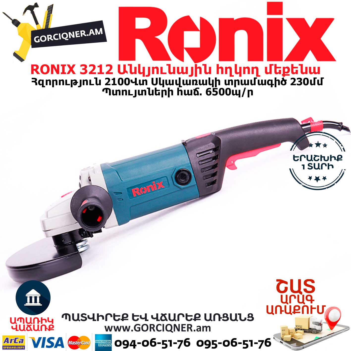 RONIX 3212 Угловая шлифовальная машина 230мм/2100Вт