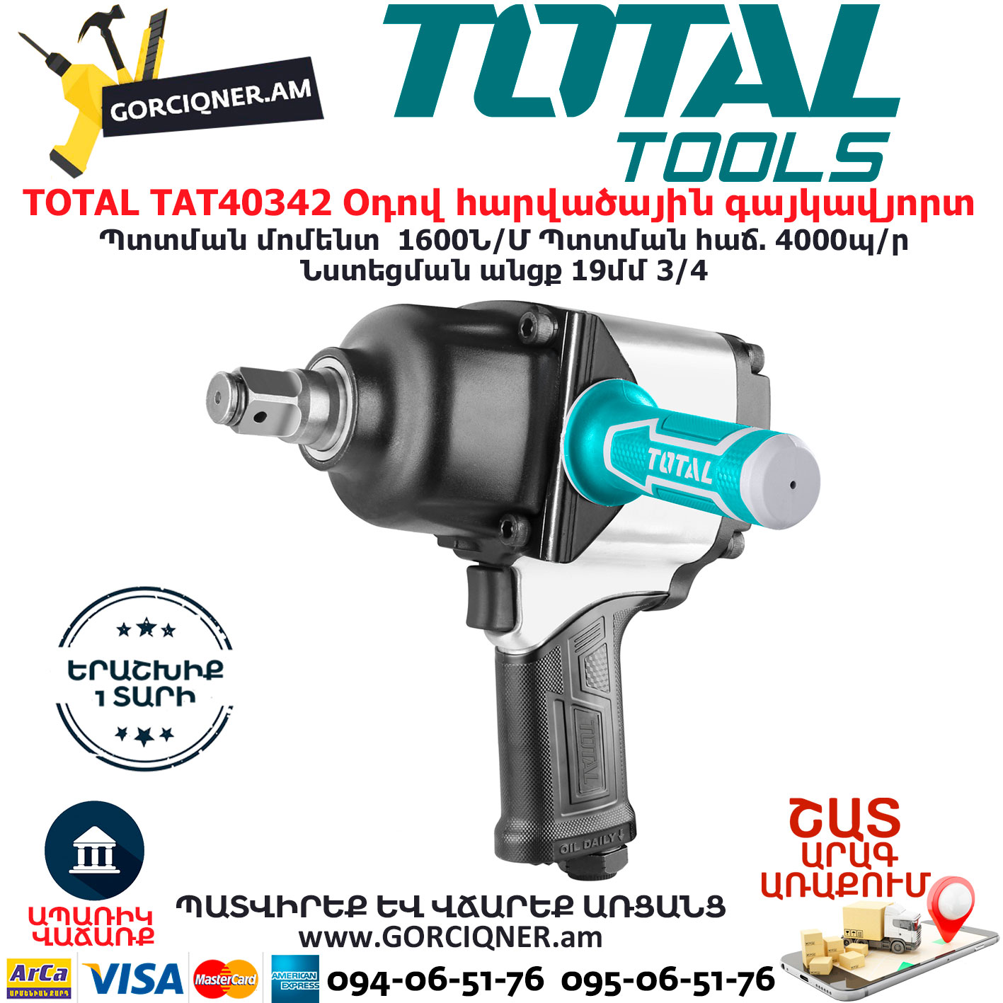 TOTAL TAT40342 Пневматический Ударный Гайковерт 1600 Нм