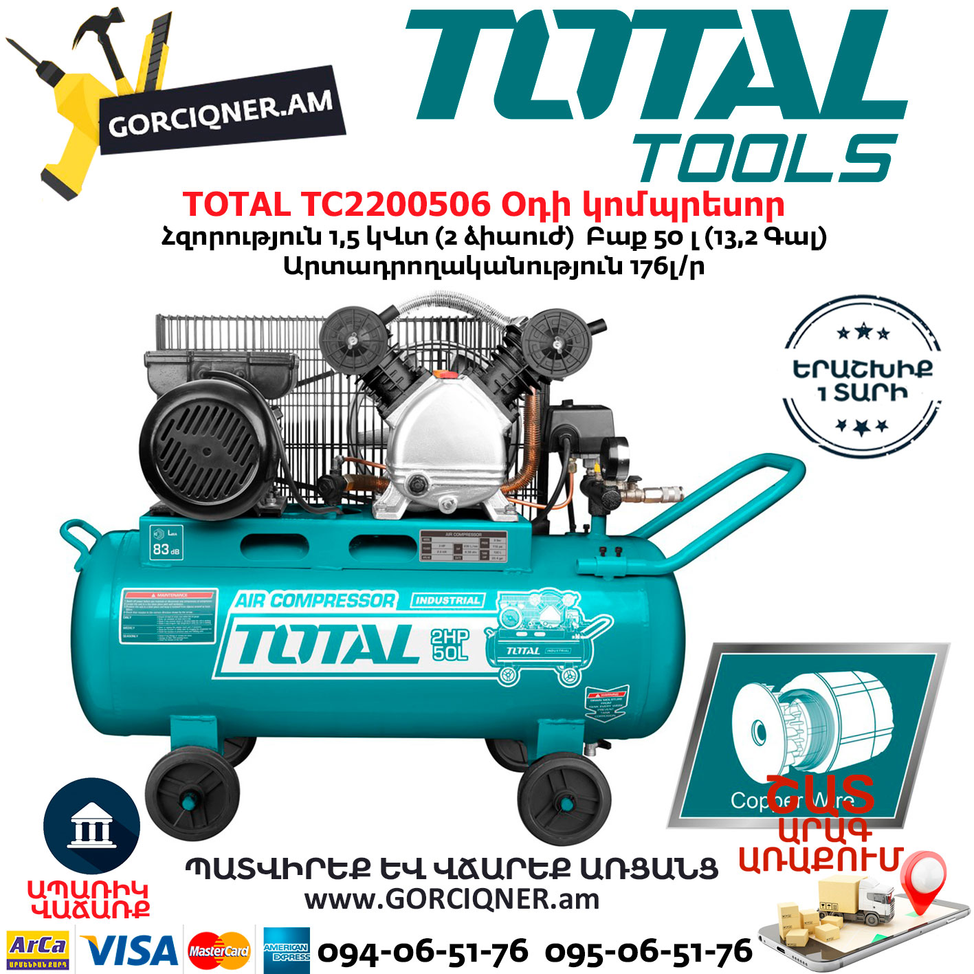 Коаксиальный воздушно-масляный компрессор TOTAL TC2200506 обладает высокой производительностью за счет прямого привода. Масляная ванна обеспечивает лучшую производительность при меньшем потреблении энергии. Прочный корпус подходит для любых условий использования. Наличие колес и ручки для транспортировки обеспечивает мобильность, подходящую для больших строительных площадок или промышленных корпусов. Встроенный манометр позволяет легко контролировать степень сжатия воздуха и снижает вероятность поломки подключенного инструмента.